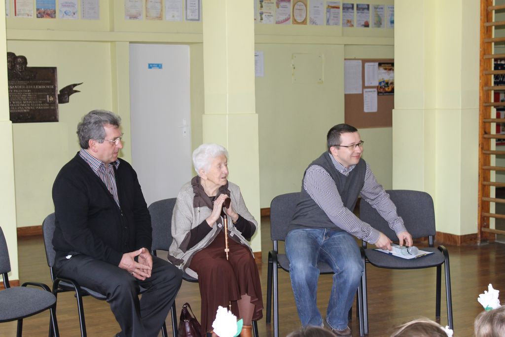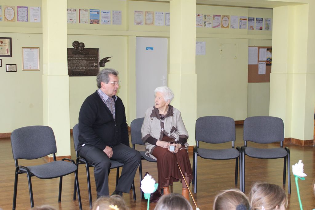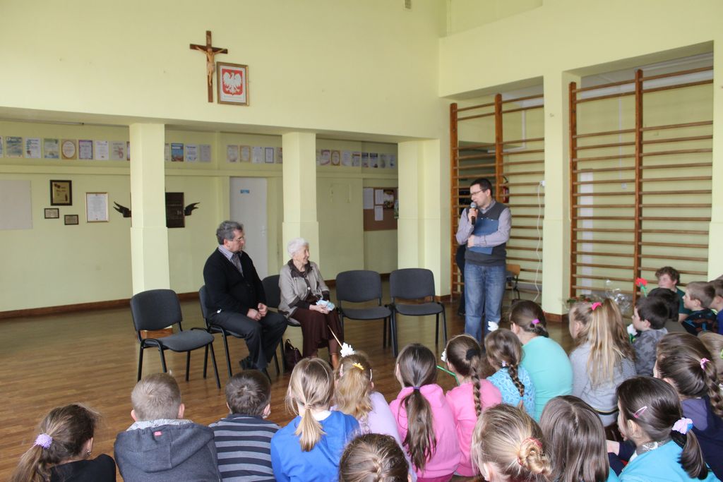 Bardzo ucieszyła nas wizyta Pani Stefanii Dulembowej, która była dla wszystkich uczniów bardzo miłą niespodzianką. Tym bardziej miłą, że nasz gość był w dobrym nastroju oraz zdrowiu. Gdy z rana w szkole rozeszła się wieść o Jej przyjeździe, wszyscy uczniowie, jak tylko potrafili, przygotowywali się do wizyty. Jedni wykonywali laurki i niespodzianki, inni przygotowywali krótkie występy.