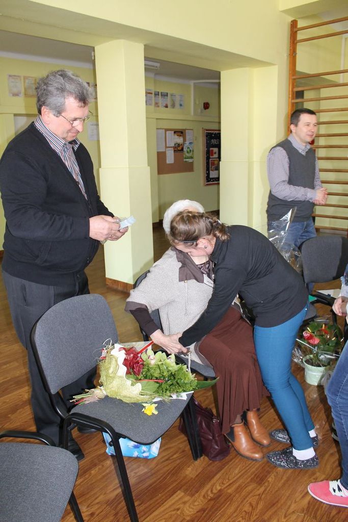 Pani Dulembowa, jak zawsze, obdarowała wszystkie swoje wnuczęta słodyczami. Na koniec odbyło się krótkie spotkanie gości z nauczycielami i pracownikami szkoły przy kawie.