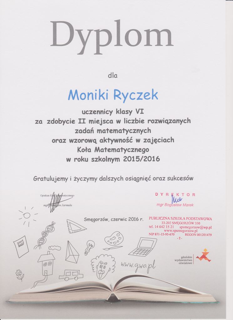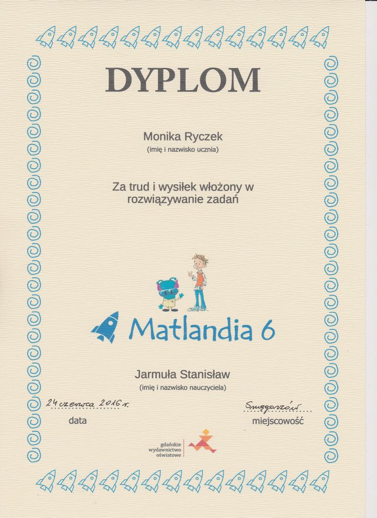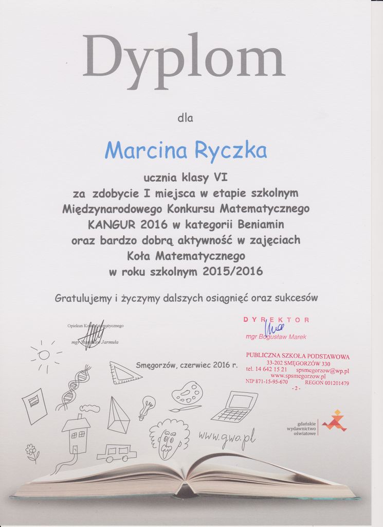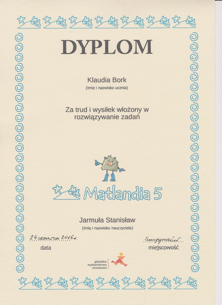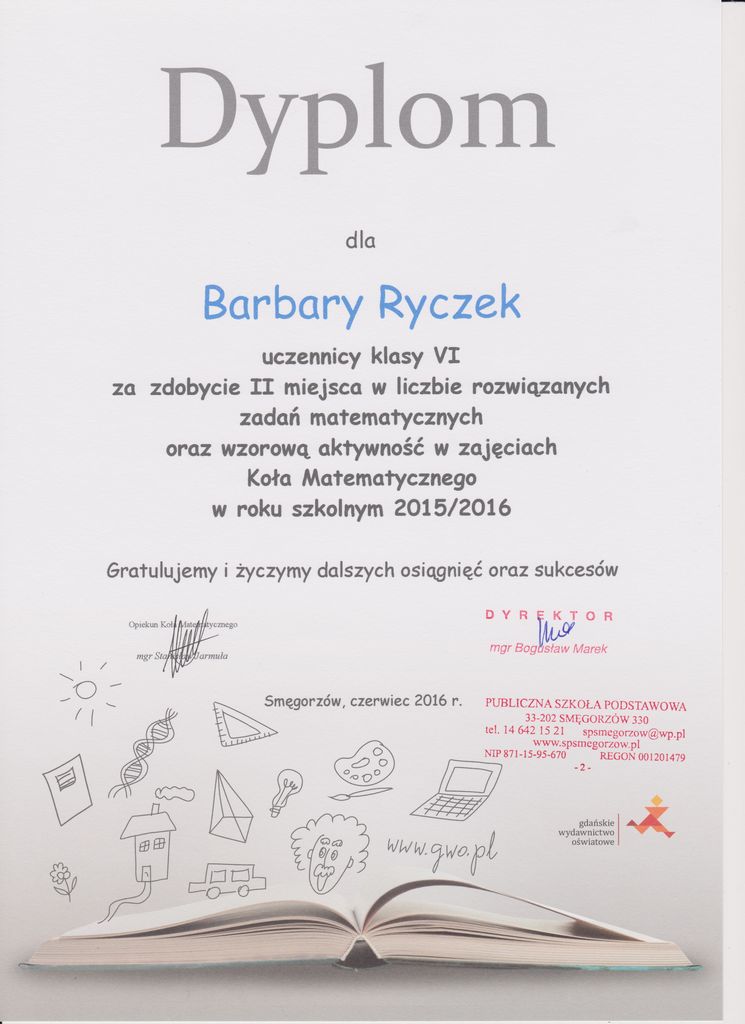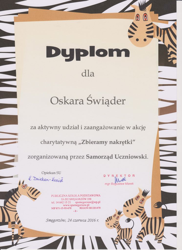 Ponadto zostały wręczone dyplomy za udział w akcji „Zbieramy nakrętki”, dyplomy związane z matematyką i sportem.