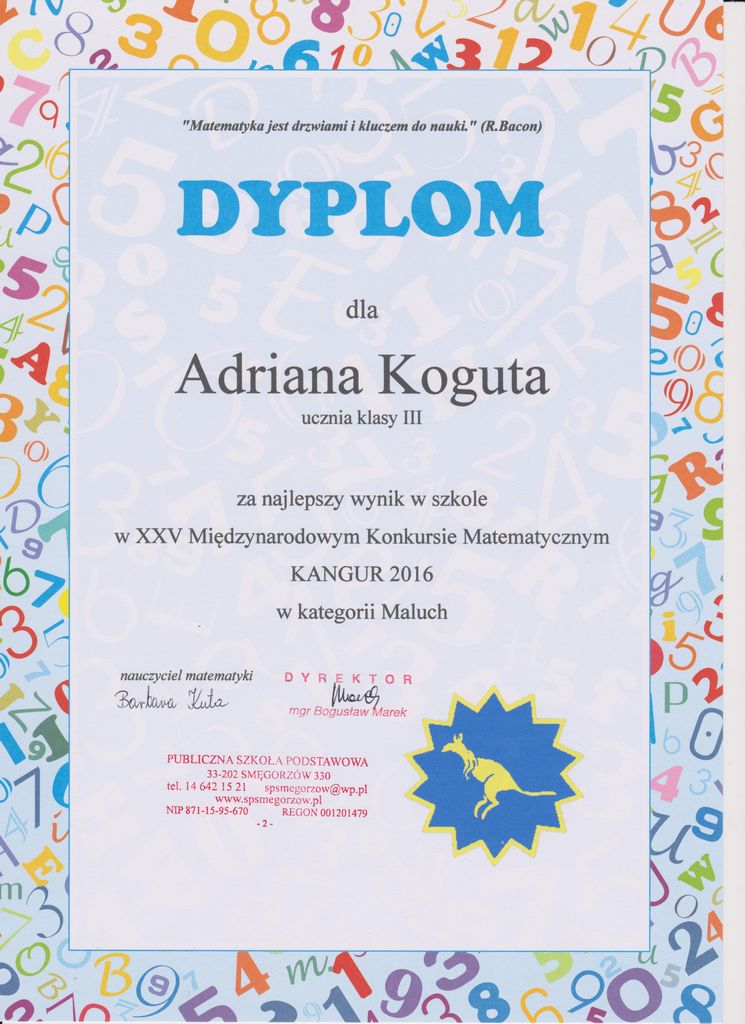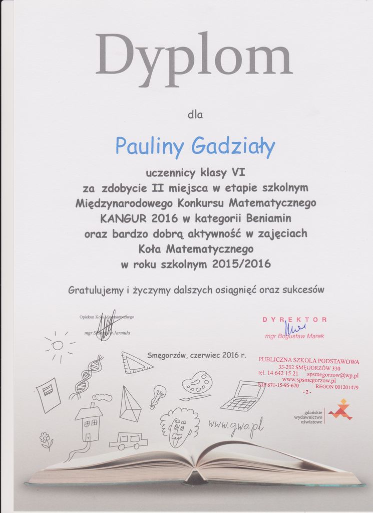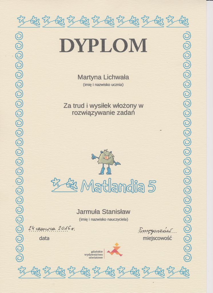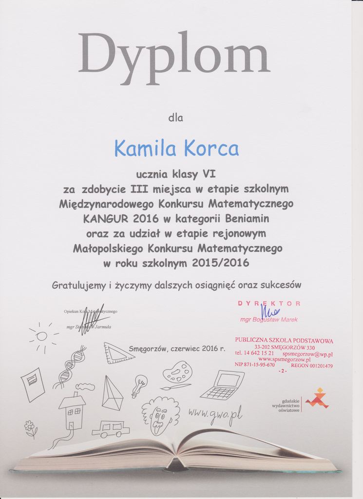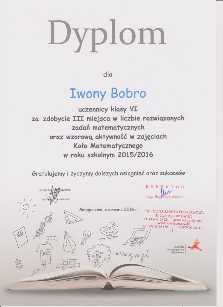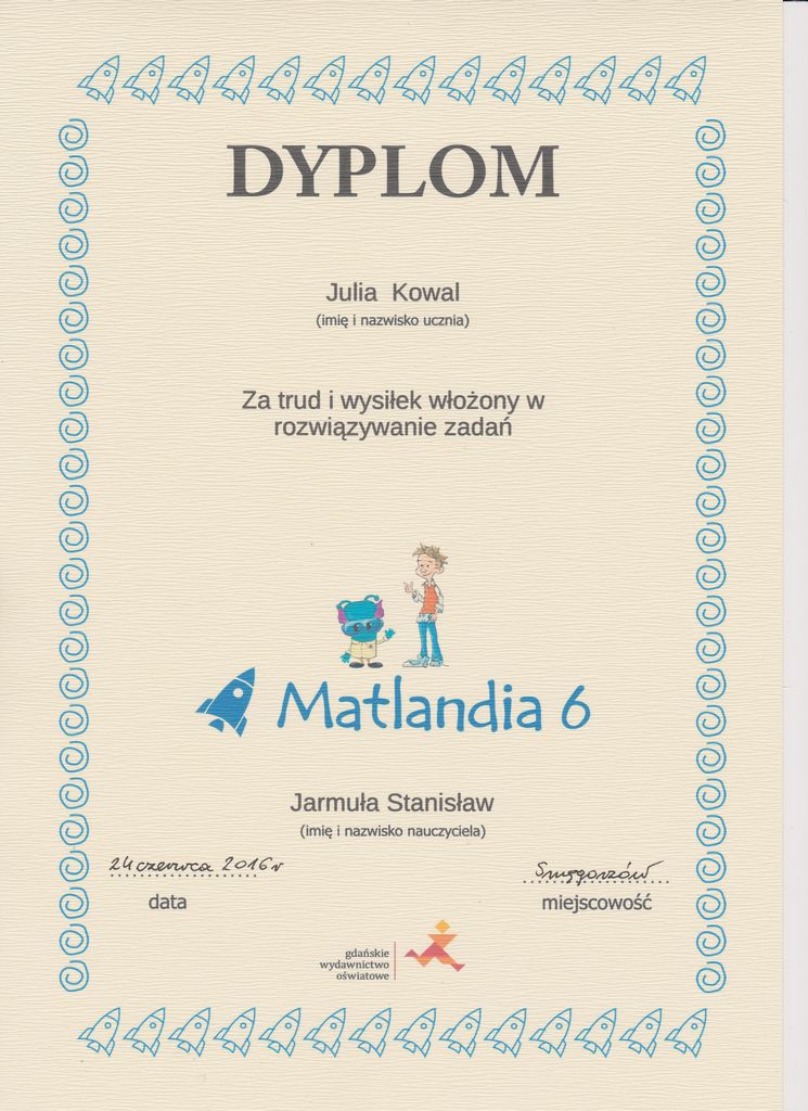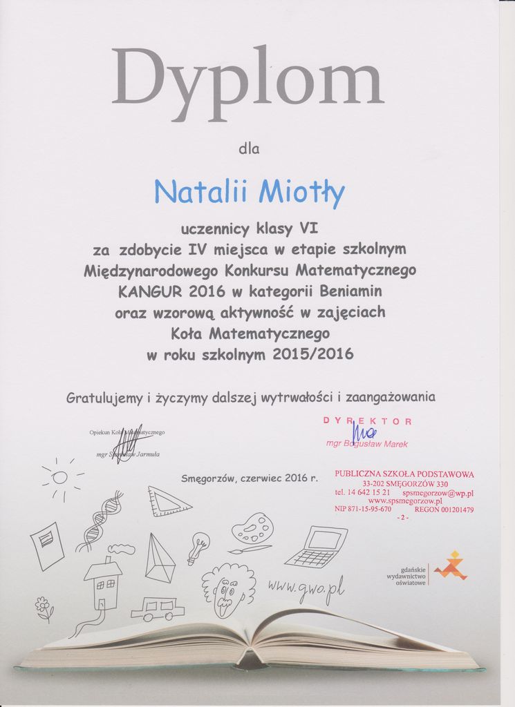 Ponadto zostały wręczone dyplomy za udział w akcji „Zbieramy nakrętki”, dyplomy związane z matematyką i sportem.