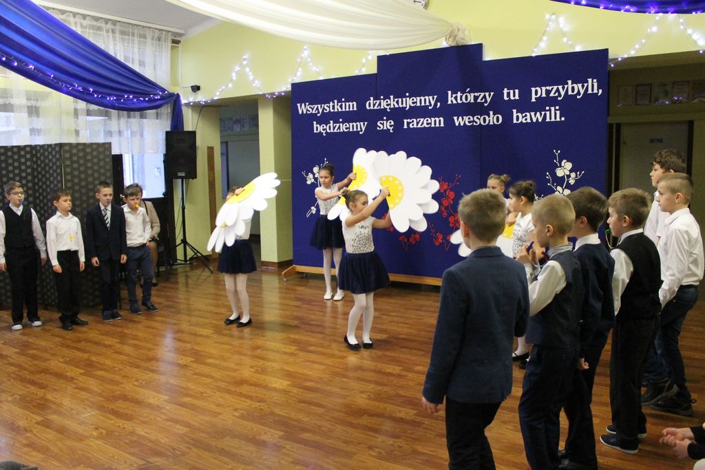 W tej podniosłej atmosferze rozpoczęła się część artystyczna przygotowana przez uczniów klas I-III pod kierunkiem wychowawczyń. W montażu słowno-muzycznym goście usłyszeli wiersze, piosenki i oglądali tańce. Na zakończenie wszystkie wnuczęta w dowód miłości i wdzięczności wręczyły Babciom i Dziadkom własnoręcznie wykonane upominki.