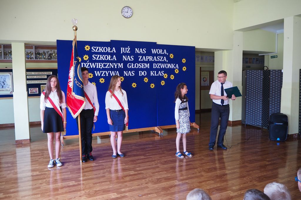 Po krótkich informacjach dotyczących funkcjonowania szkoły w nadchodzącym roku szkolnym, Dyrektor przedstawił nowych uczniów. Czternastu pierwszaków zostanie uroczyście włączonych do grona uczniów w październiku na akademii z okazji Dnia Edukacji Narodowej. Całej społeczności przedstawił również troje nowych uczniów starszych klas, którzy przeszli do nas z innych szkół.