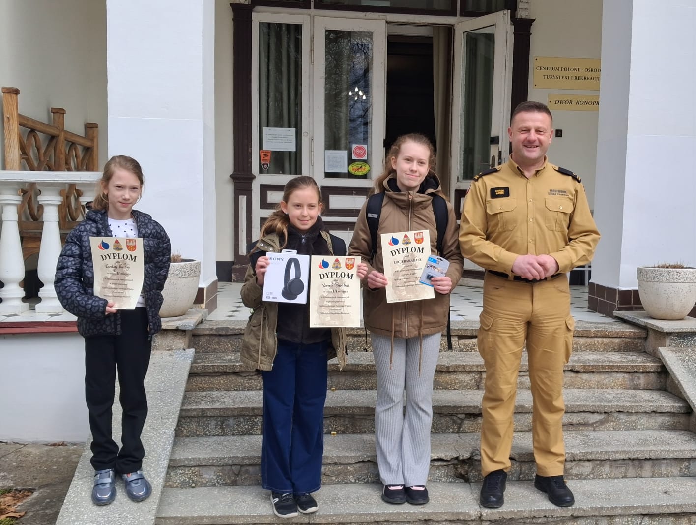 31 marca 2025 r. w Centrum Polonii – Ośrodku Kultury, Turystyki i Rekreacji w Brniu odbył się Finał Powiatowy OTWP „Młodzież zapobiega pożarom”, gdzie najlepsi uczniowie z całego powiatu stanęli do rywalizacji o awans do kolejnego etapu. Zakres turnieju był niezwykle wymagający! Uczestnicy musieli wykazać się wiedzą z historii i tradycji straży pożarnej, przepisów przeciwpożarowych, techniki i sprzętu pożarniczego oraz organizacji ochrony przeciwpożarowej. Ogromne podziękowania kierujemy do druha Daniela Batora, który pomógł Karolinie w przygotowaniach. Godziny spędzone w remizie, nauka i prezentacja sprzętu strażackiego przyniosły znakomite efekty!