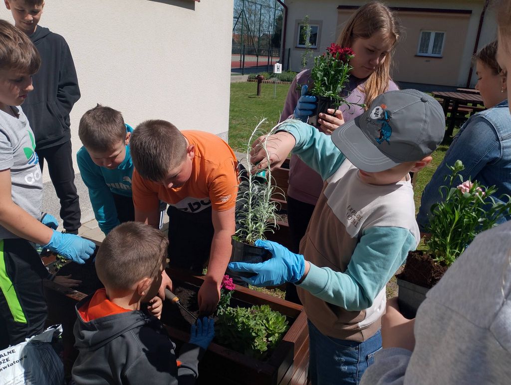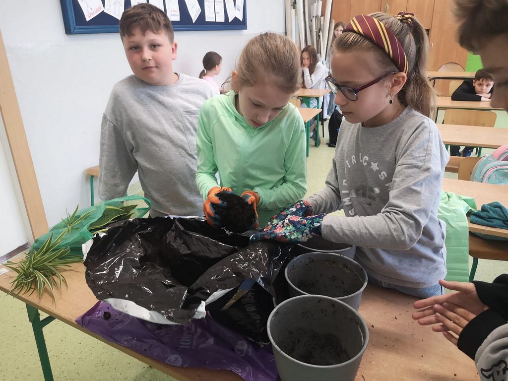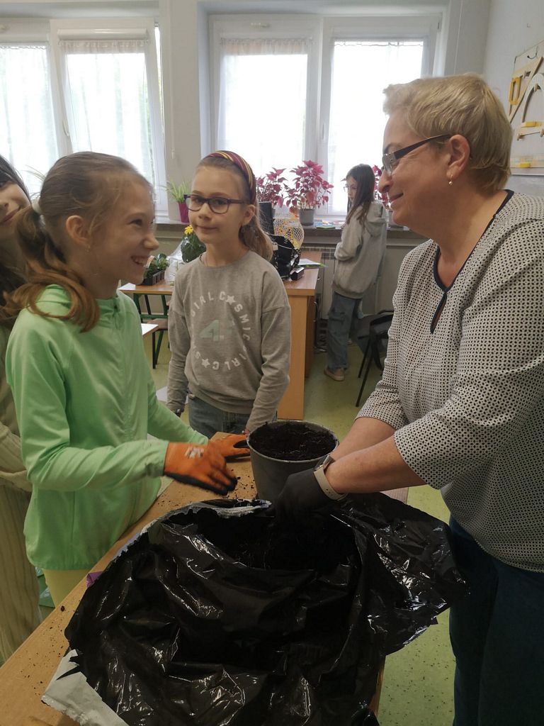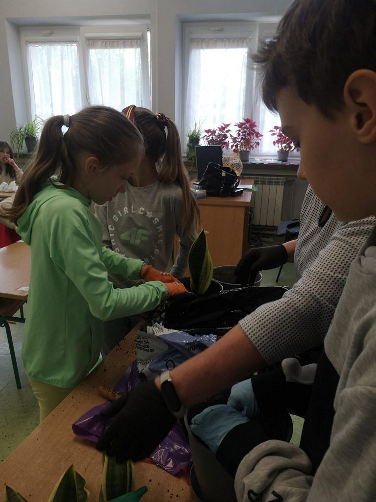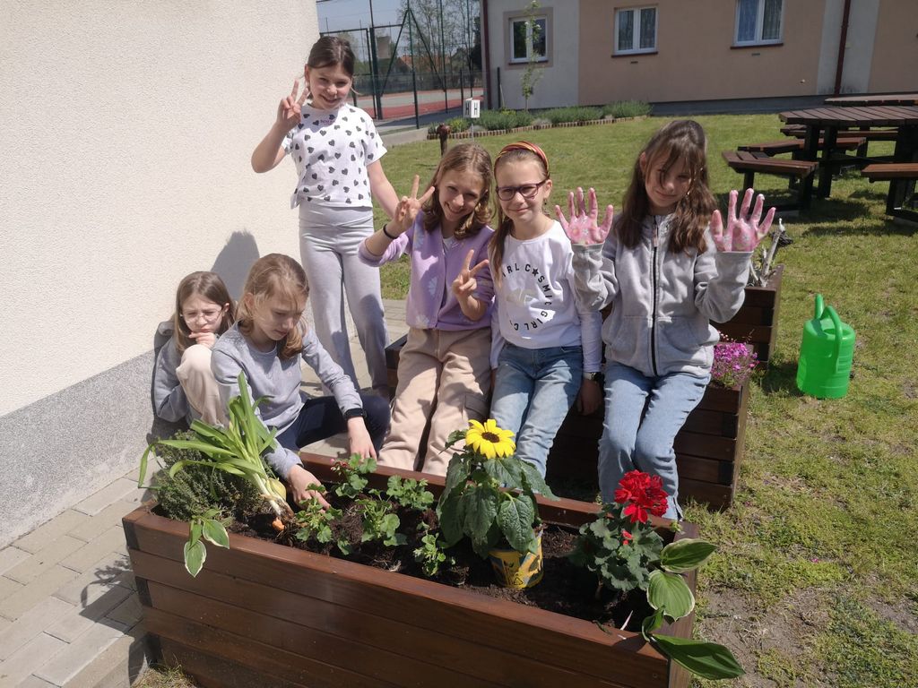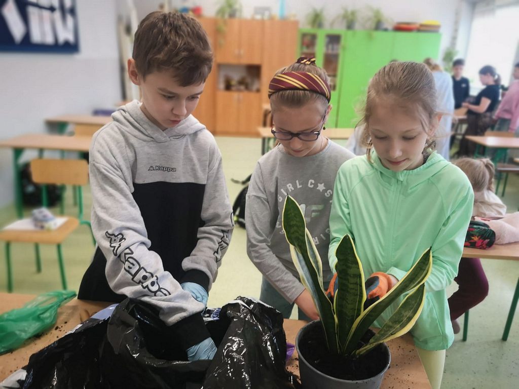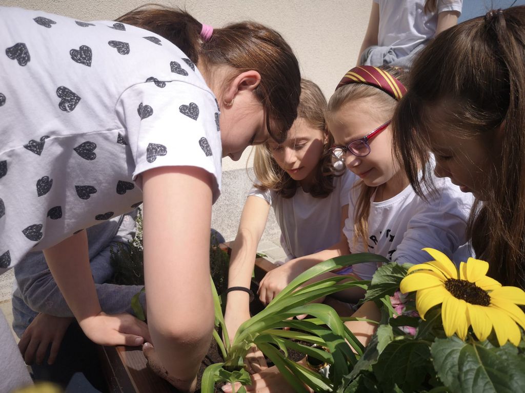 Uczniowie klas 1–5 aktywnie uczestniczyli w sadzeniu roślin w drewnianych skrzyniach na terenie szkoły, tworząc małe, zielone ogródki. Starsze klasy zadbały o zieleń w swoich salach lekcyjnych, sadząc rośliny w doniczkach i ucząc się przy tym odpowiedzialności za pielęgnację przyrody.