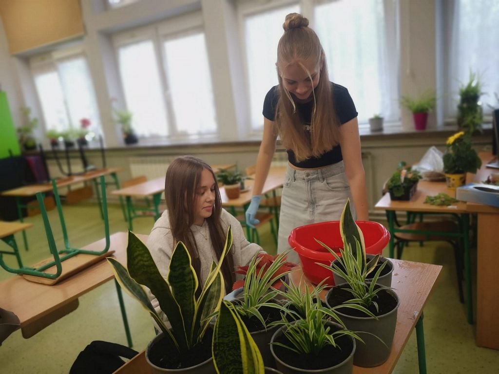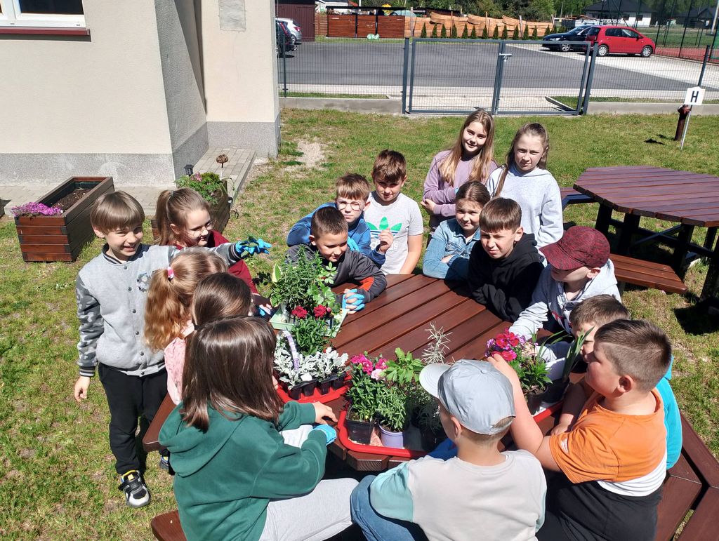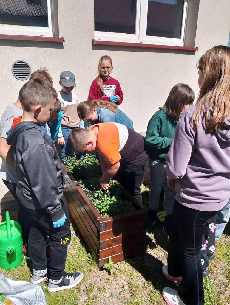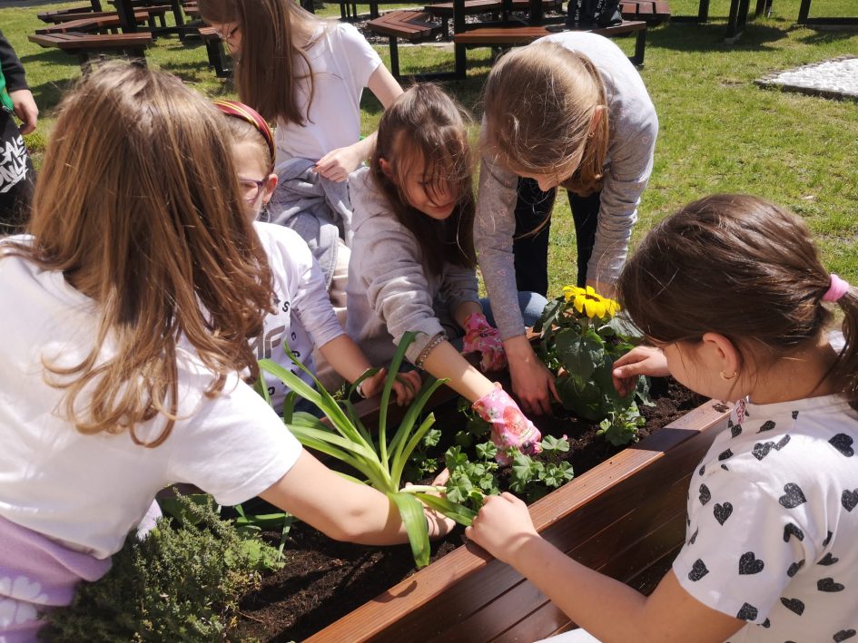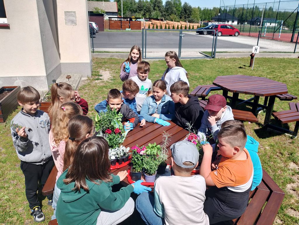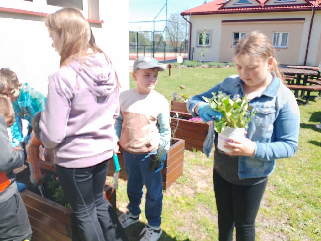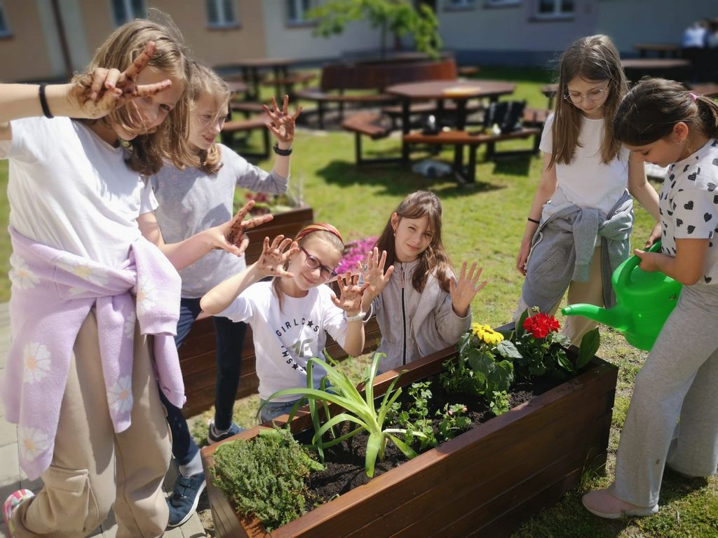 Uczniowie klas 1–5 aktywnie uczestniczyli w sadzeniu roślin w drewnianych skrzyniach na terenie szkoły, tworząc małe, zielone ogródki. Starsze klasy zadbały o zieleń w swoich salach lekcyjnych, sadząc rośliny w doniczkach i ucząc się przy tym odpowiedzialności za pielęgnację przyrody.