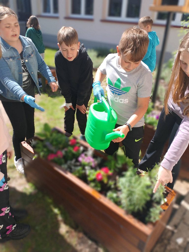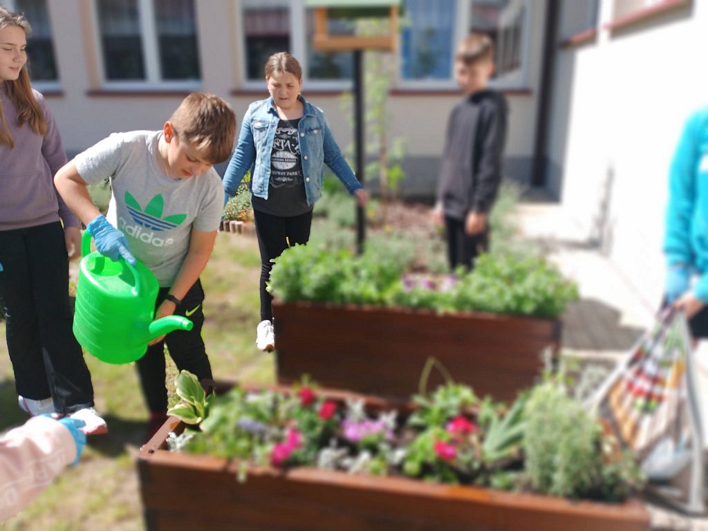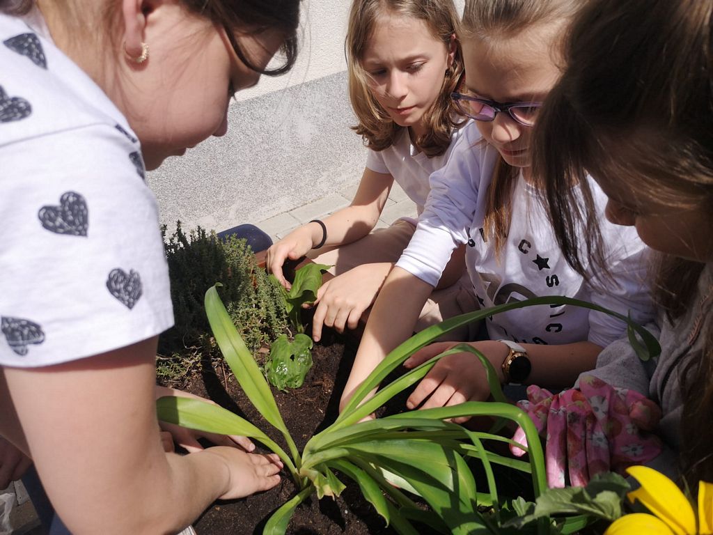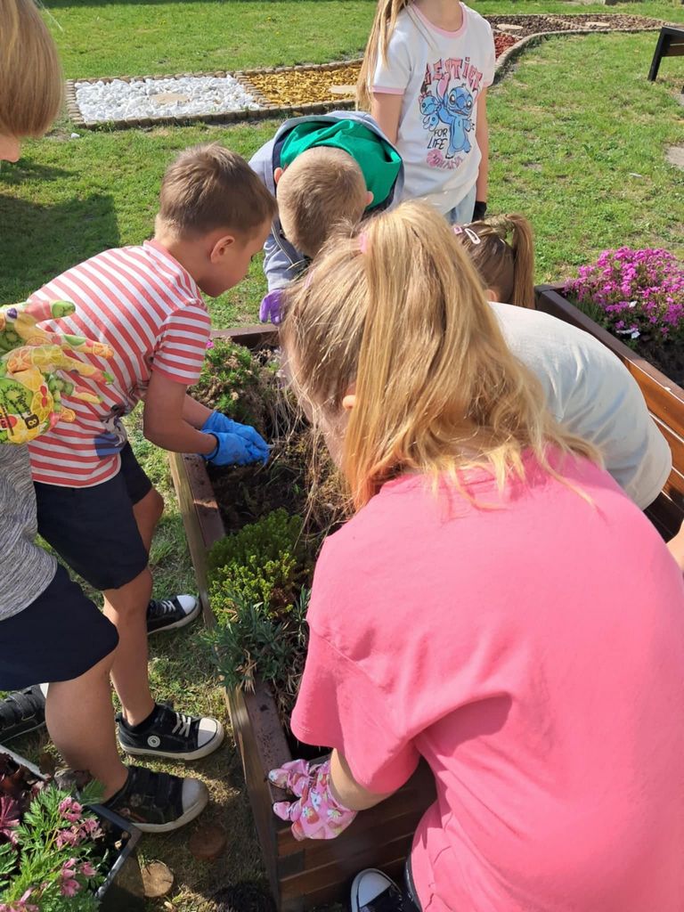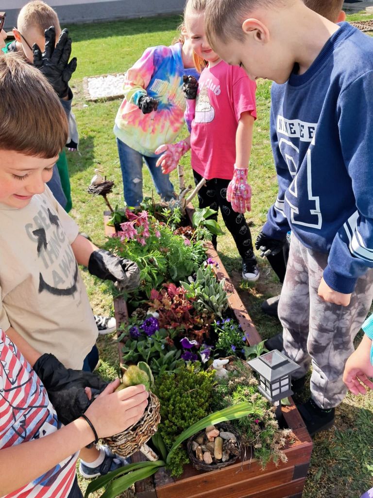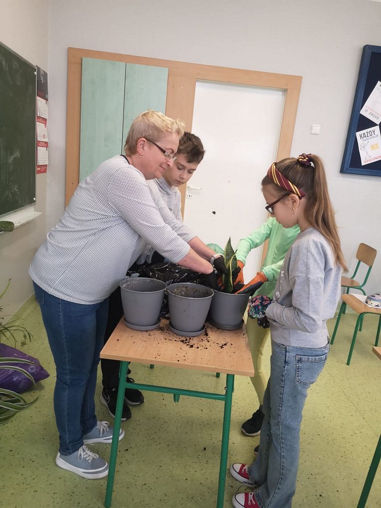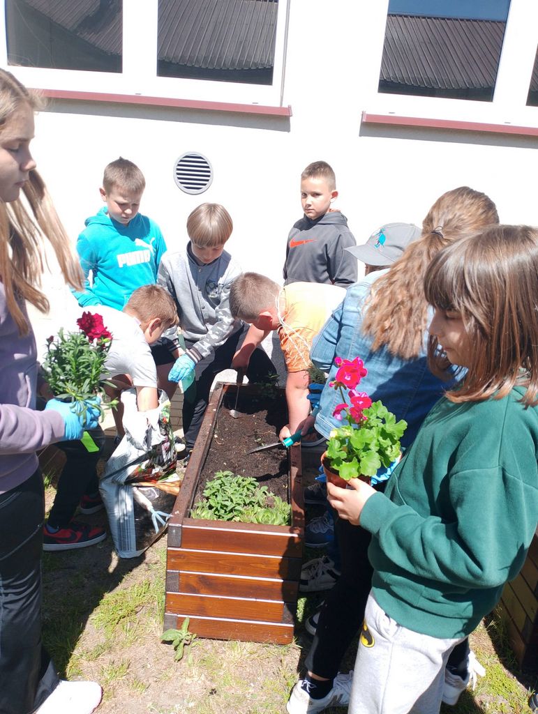 Uczniowie klas 1–5 aktywnie uczestniczyli w sadzeniu roślin w drewnianych skrzyniach na terenie szkoły, tworząc małe, zielone ogródki. Starsze klasy zadbały o zieleń w swoich salach lekcyjnych, sadząc rośliny w doniczkach i ucząc się przy tym odpowiedzialności za pielęgnację przyrody.