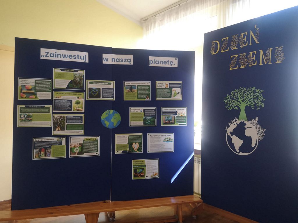 W tym roku Dzień Ziemi obchodziliśmy w naszej szkole w wyjątkowy sposób, realizując wiele działań pod hasłem „Zainwestuj w naszą planetę”. Już od samego rana na szkolnym holu można było podziwiać piękną dekorację przygotowaną specjalnie na tę okazję, przypominającą wszystkim o znaczeniu troski o naszą planetę.