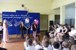 4 maja w Dąbrowie Tarnowskiej odbyły się powiatowo-gminne obchody Święta Konstytucji 3 Maja. Wśród wielu pocztów sztandarowych był również i nasz. Naszą szkołę reprezentowali: Karolina Krawczyk, Izabela Łucek, Martyna Tabor z klasy VI oraz Maja Rachwał, Anna Siembab, Daniel Rzepka, Maksymilian Świątkowski z klasy VIII – pod opieką