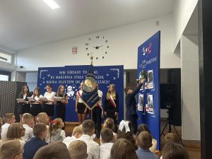Dzień 9 listopada był dla naszej społeczności uczniowskiej wprowadzeniem do przeżywania zbliżającego się Narodowego Święta Niepodległości. Z tej okazji odbyła się u nas uroczysta akademia przygotowana przez uczniów klasy IV i VII pod kierunkiem p. Grzegorza Kozaki, p. Karoliny Krzak oraz p. Anny Kaczówki. Część oficjalna rozpoczęła się uroczystym odśpiewaniem hymnu narodowego przez całą społeczność …