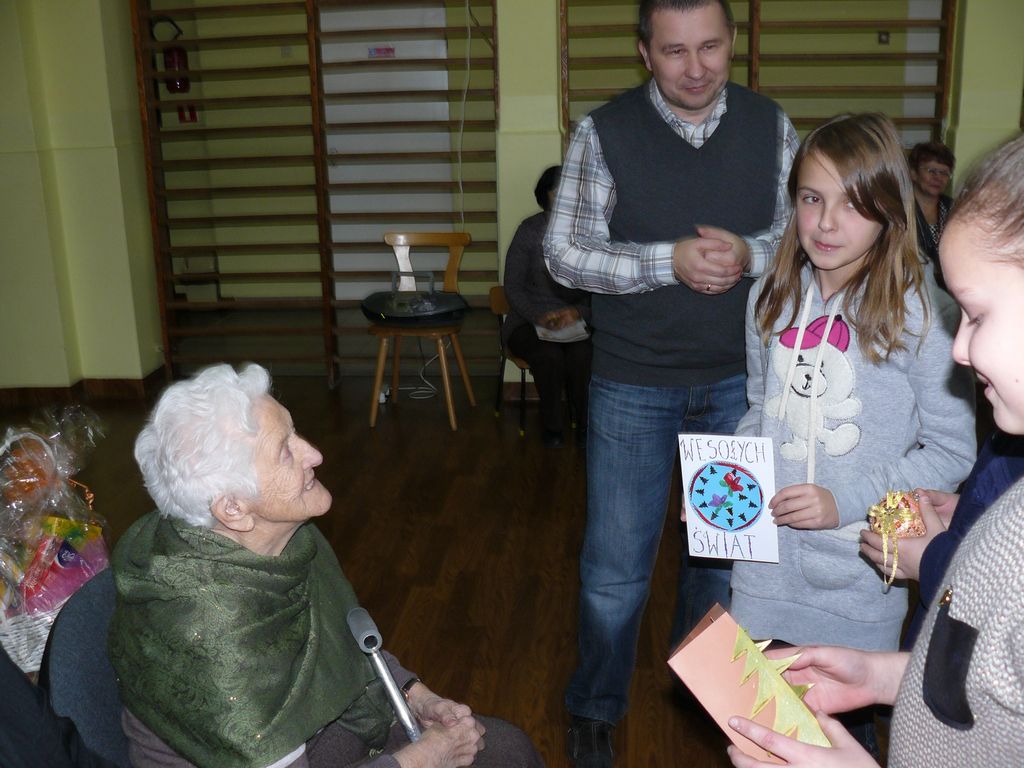 Wszyscy byliśmy wzruszeni, że mimo podeszłego wieku i kłopotów ze zdrowiem, Pani Stefania znalazła siły i chęć do spotkania się z naszą szkolną społecznością, tuż przed Świętami Bożego Narodzenia.