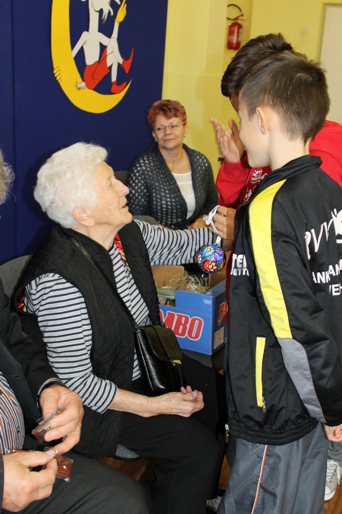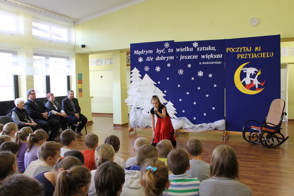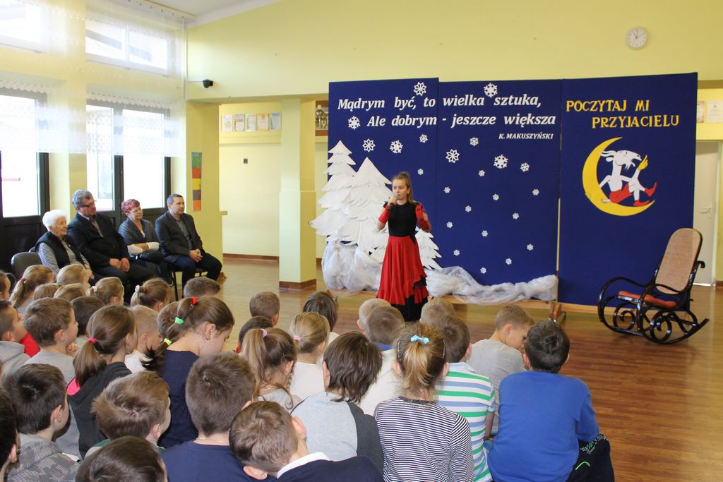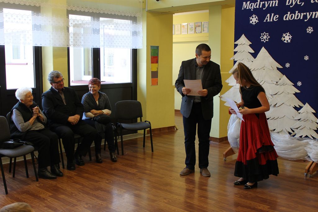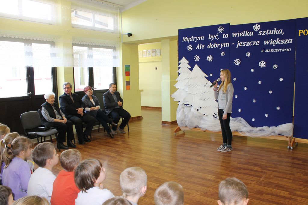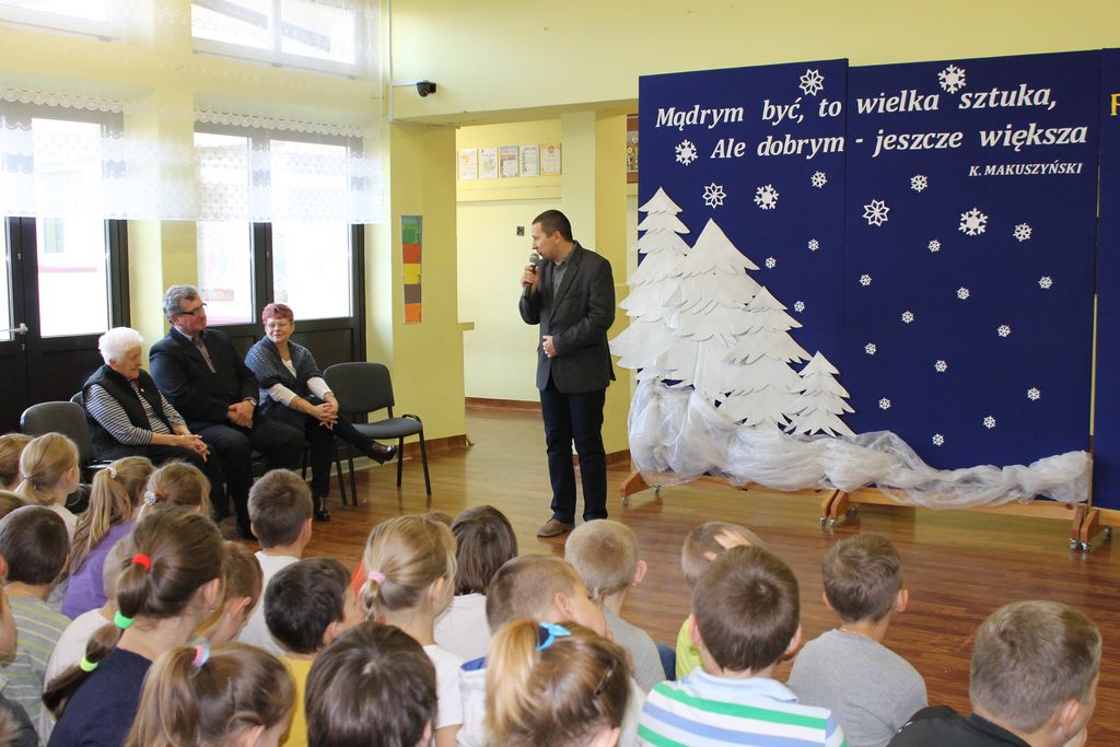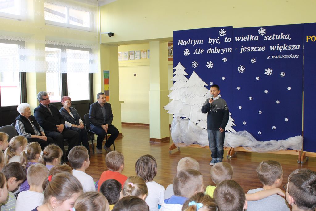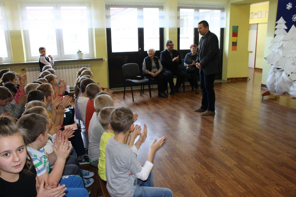 10 grudnia br. w godzinach południowych odwiedziła naszą szkołę długoletnia znajoma i przyjaciółka – pani Stefania Dulembowa. To była dla wszystkich uczniów bardzo miła niespodzianka. Przywitanie odbyło się na szkolnym holu. Miłego Gościa oraz towarzyszące Jej osoby powitał serdecznie dyrektor szkoły p. Bogusław Marek. Na spotkanie przybył również sołtys Smęgorzowa p. Ryszard Ciombor. Uczniowie zaprezentowali swoje umiejętności śpiewacze (Emilka i Julia Kowal), recytatorskie (Klaudia Bork, Joanna Kozaczka i Tomasz Kaczocha) oraz czytelnicze (Dawid Kowal). Byli to laureaci szkolnych i powiatowych konkursów, na których zajęli najwyższe lokaty. Pan dyrektor przedstawił również pani Stefanii inne osiągnięcia naszych uczniów, szczególnie sporo medali, dyplomów i pucharów zdobyli nasi sportowcy. Pani Stefania bardzo ucieszyła się z występów oraz z tego, że Jej dar złożony na salę gimnastyczną przynosi wymierne rezultaty.