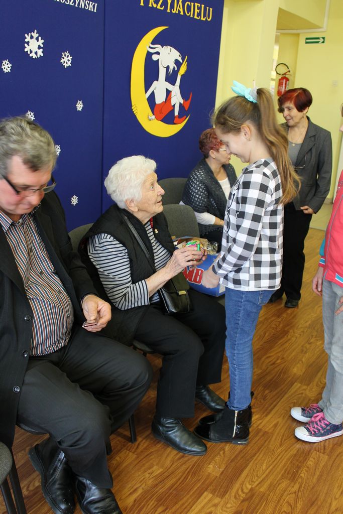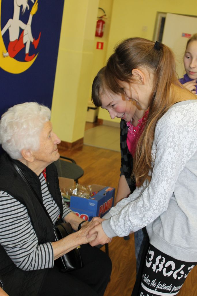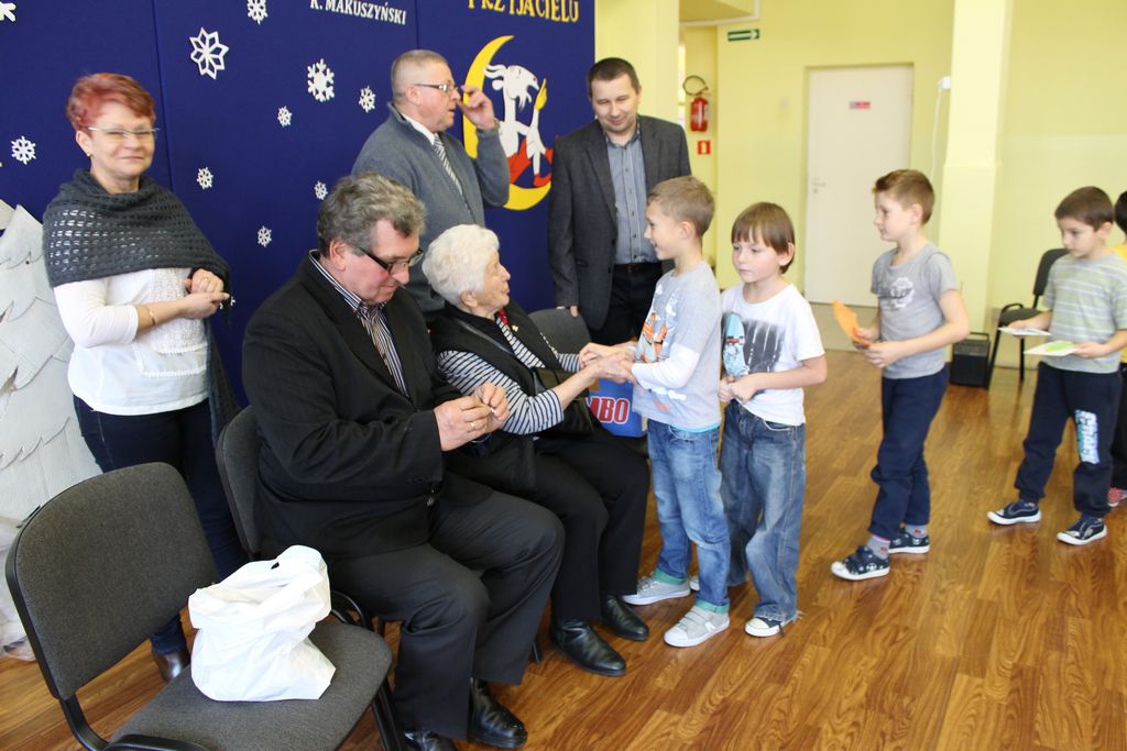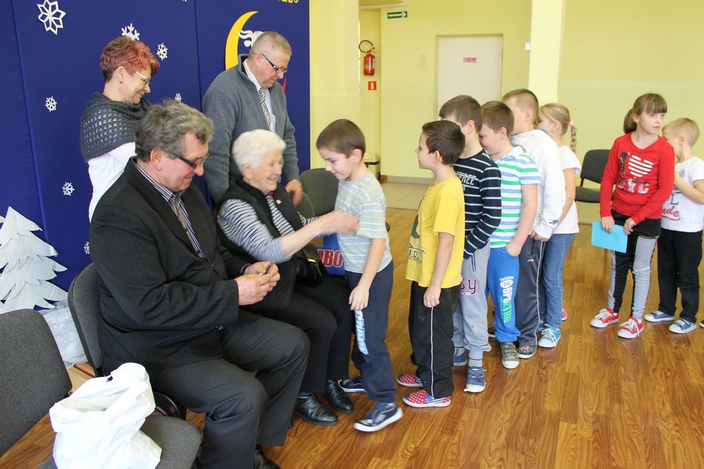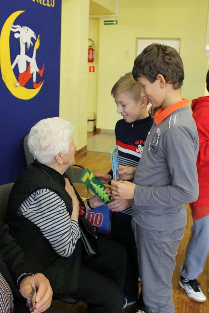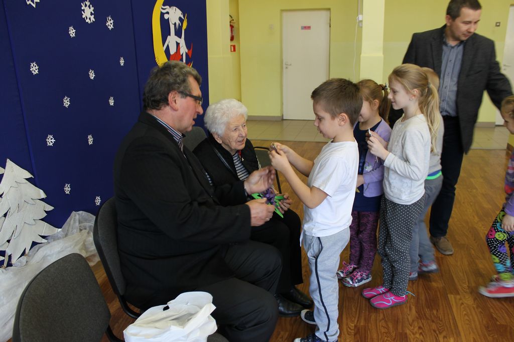 Wszyscy uczniowie indywidualnie składali pani Stefanii życzenia świąteczne oraz wręczali własnoręcznie wykonane laurki i upominki, a pani Stefania obdarowała ich słodkościami. Wzbogaciła również szkolną bibliotekę w wiele cennych woluminów. Ostatnim punktem wizyty było spotkanie z personelem szkoły.