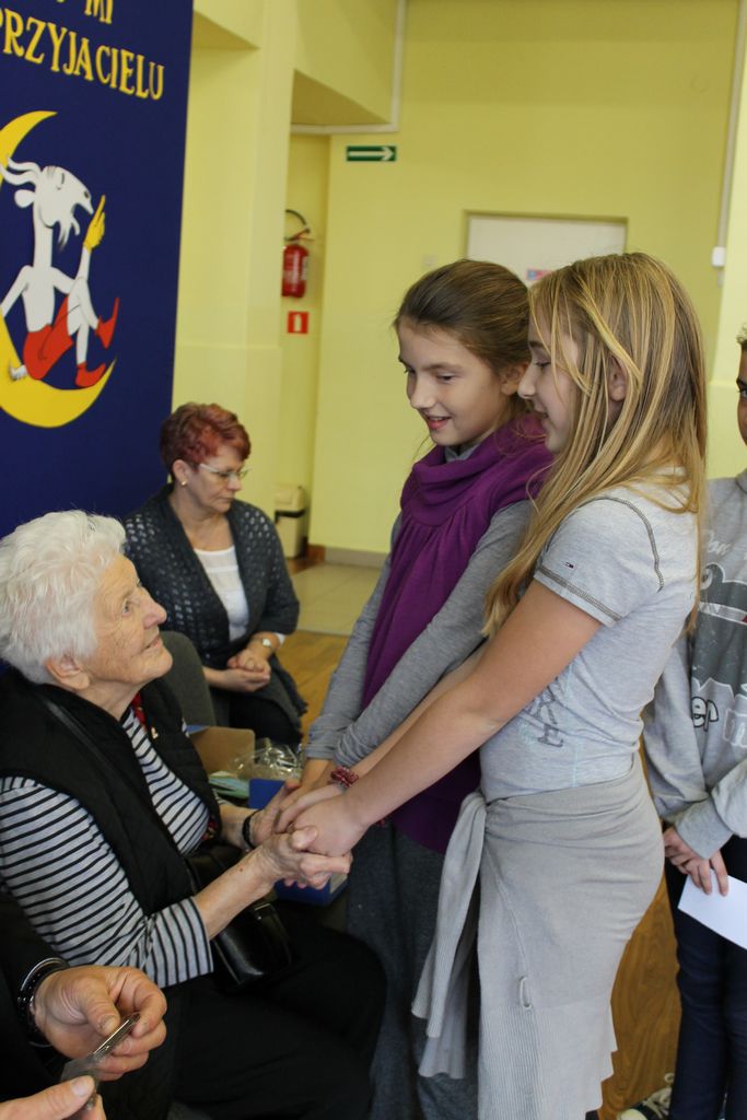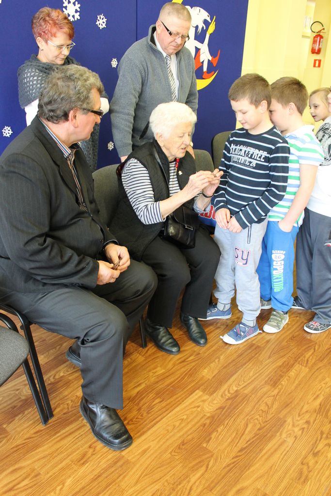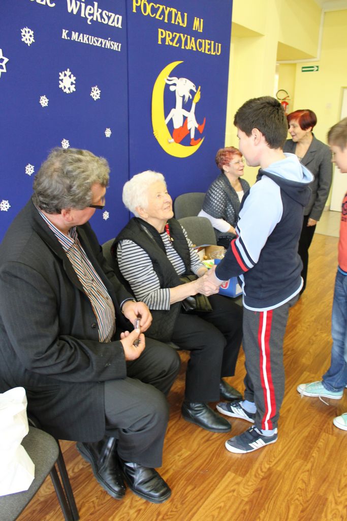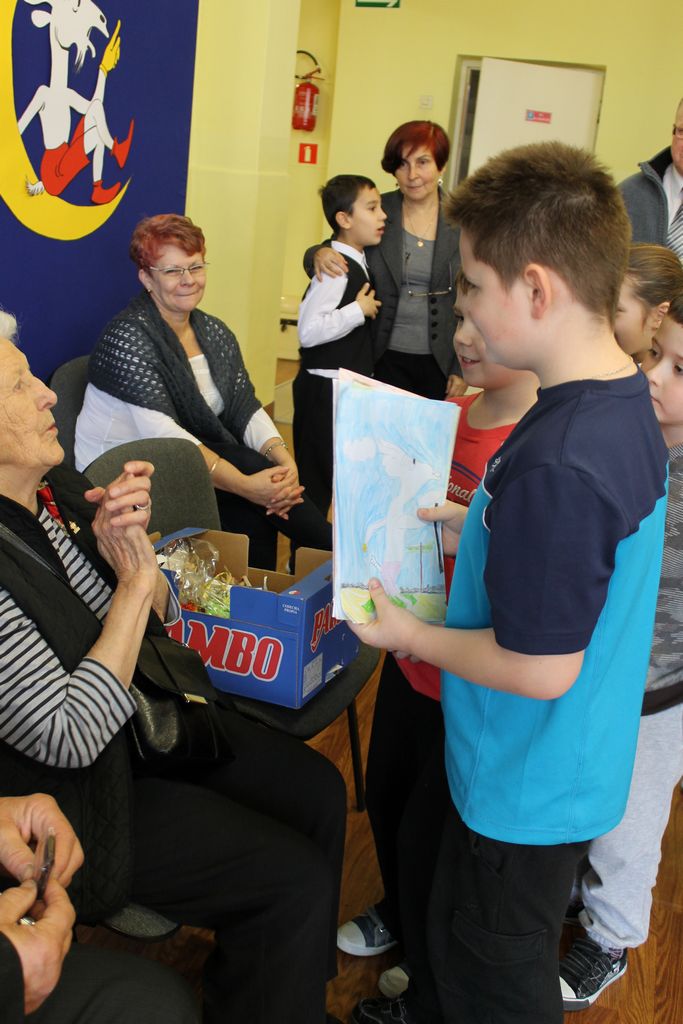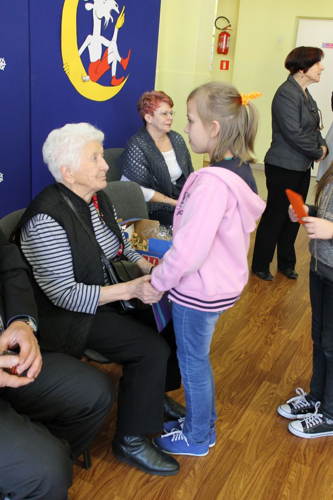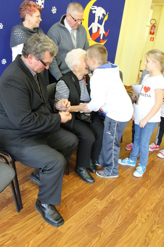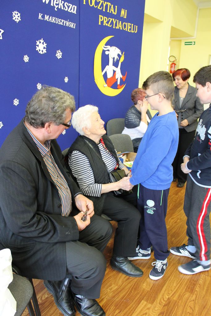 Wszyscy uczniowie indywidualnie składali pani Stefanii życzenia świąteczne oraz wręczali własnoręcznie wykonane laurki i upominki, a pani Stefania obdarowała ich słodkościami. Wzbogaciła również szkolną bibliotekę w wiele cennych woluminów. Ostatnim punktem wizyty było spotkanie z personelem szkoły.