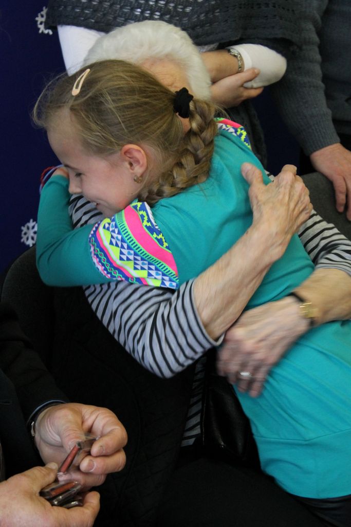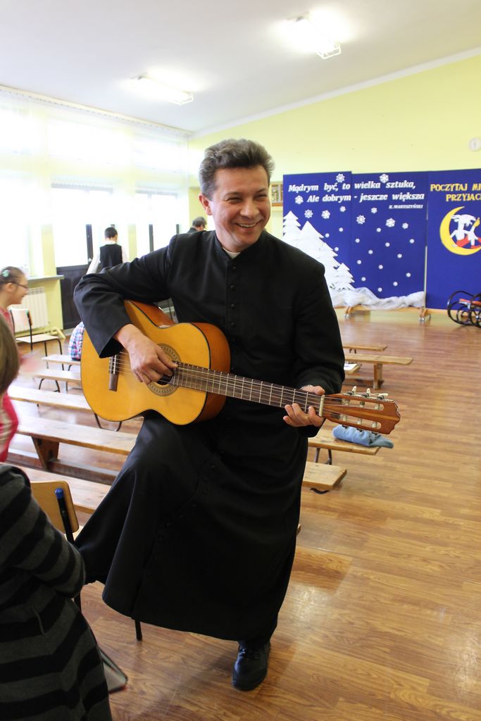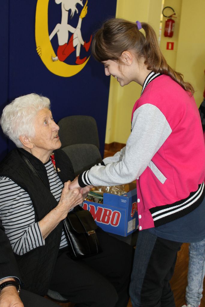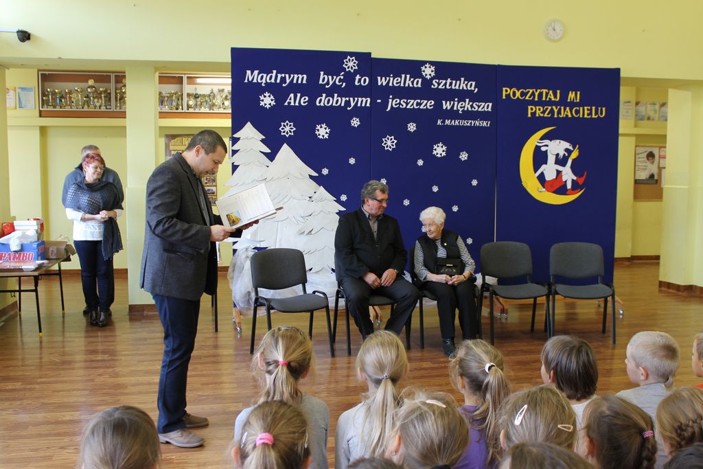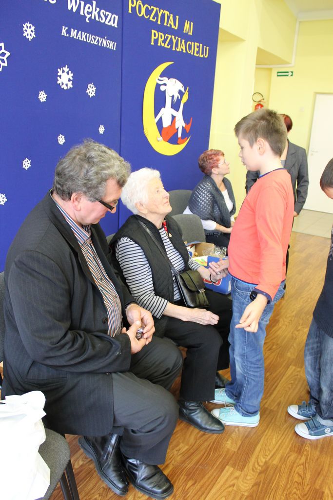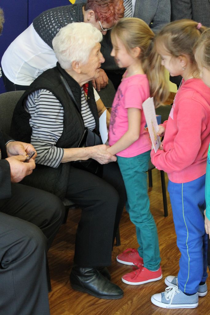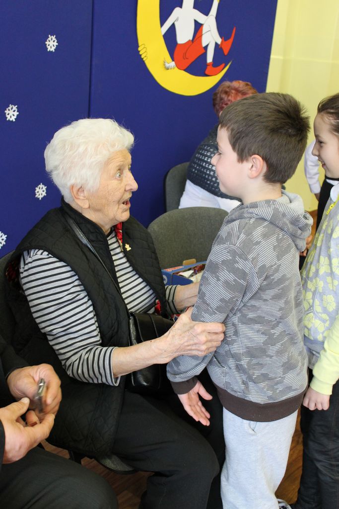 Wszyscy uczniowie indywidualnie składali pani Stefanii życzenia świąteczne oraz wręczali własnoręcznie wykonane laurki i upominki, a pani Stefania obdarowała ich słodkościami. Wzbogaciła również szkolną bibliotekę w wiele cennych woluminów. Ostatnim punktem wizyty było spotkanie z personelem szkoły.