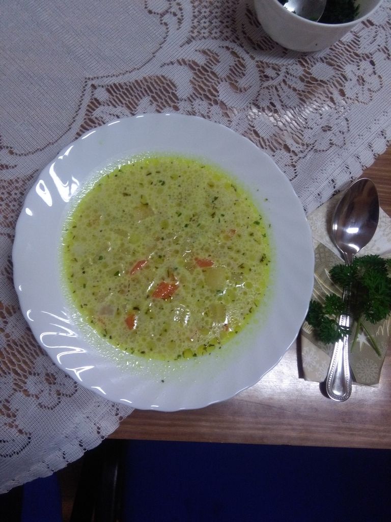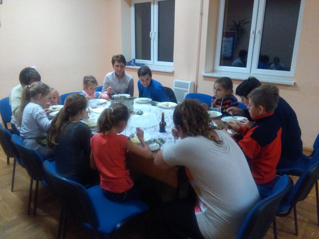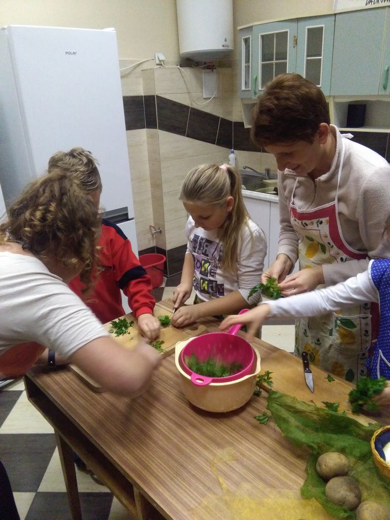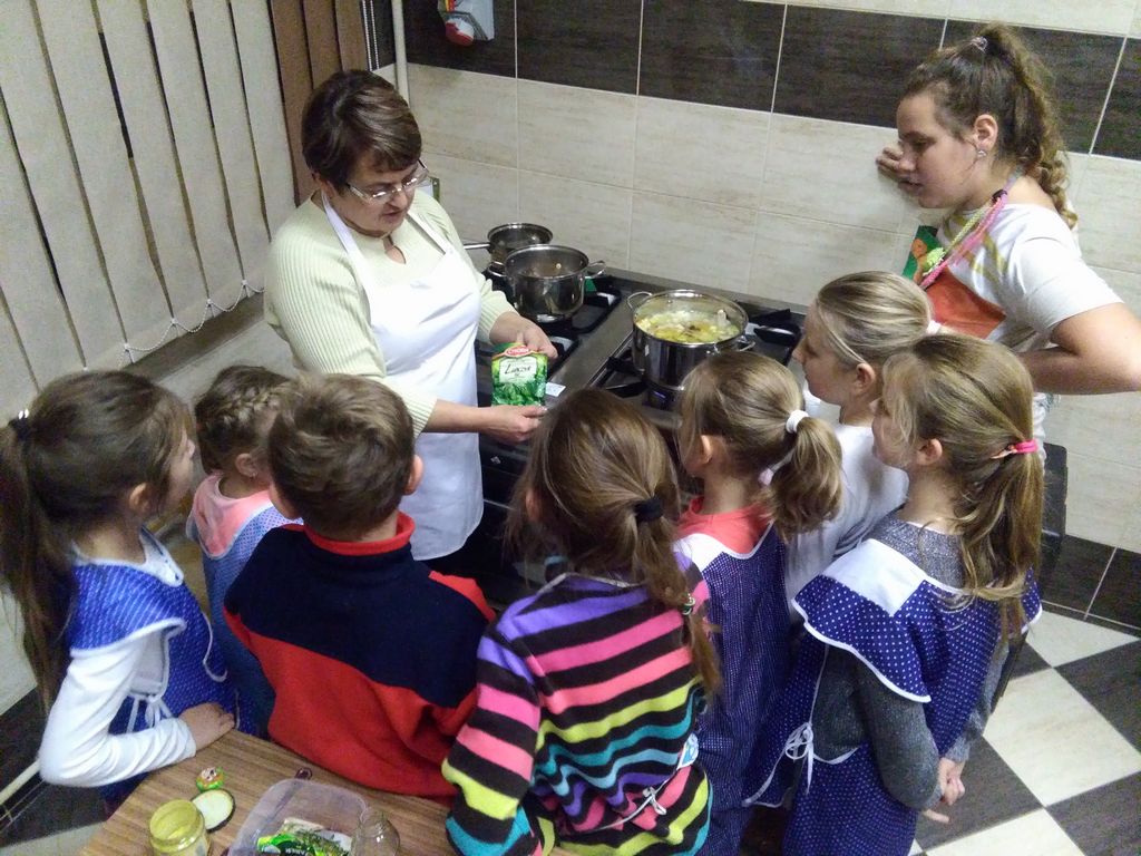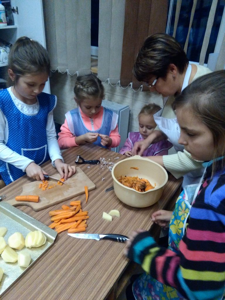 Uczestnicy spotkania z dużym zaangażowaniem pracowali: obierali warzywa, kroili je, łączyli znane i mniej znane smaki. Zadbali, aby zupa była ładnie podana i skonsumowana w pięknej sali. Zupa o nazwie „rzodkie zimnioki” zniknęła w jednej chwili, była tak pyszna.