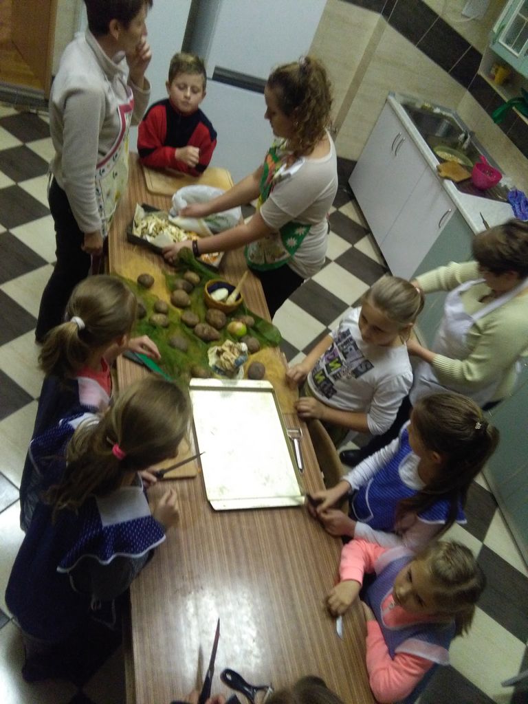 1O tym że gotowanie to wspaniała zabawa mogli przekonać się czytelnicy smęgorzowskiej biblioteki. 10 października odbyły się małe warsztaty kulinarne. Wszyscy, którzy przybyli, mieli przyjemność, pod czujnym okiem smęgorzowskiego MasterChefapani Teresy Rygielskiej wiceprzewodniczącej Stowarzyszenia Kobiet Wsi Smęgorzów, ugotować tradycyjną zupę ziemniaczaną wg Jej przepisu. Od czterech lat króluje ona na Święcie Ziemniaka w naszej miejscowości. Pani Teresa zdradziła młodym adeptom sztuki kulinarnej przepis na zupę o nazwie „rzodkie zimnioki”. Tylko, cicho, to tajemnica!!! Dzieci poznały również zasady bezpieczeństwa i higieny pracy w kuchni oraz sposób planowania i organizacji pracy.