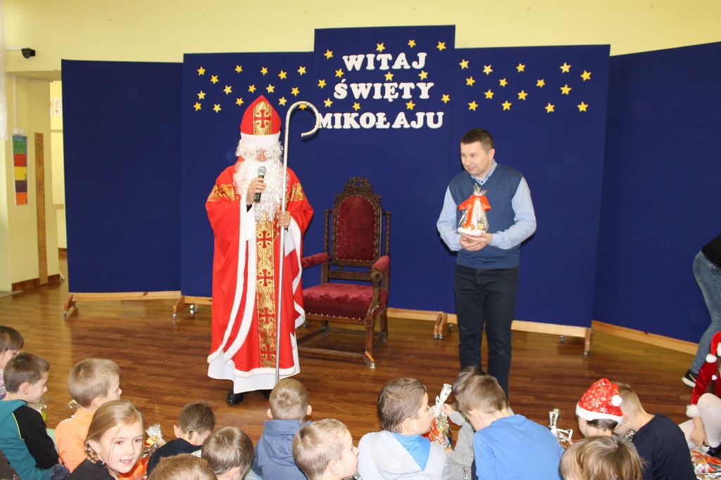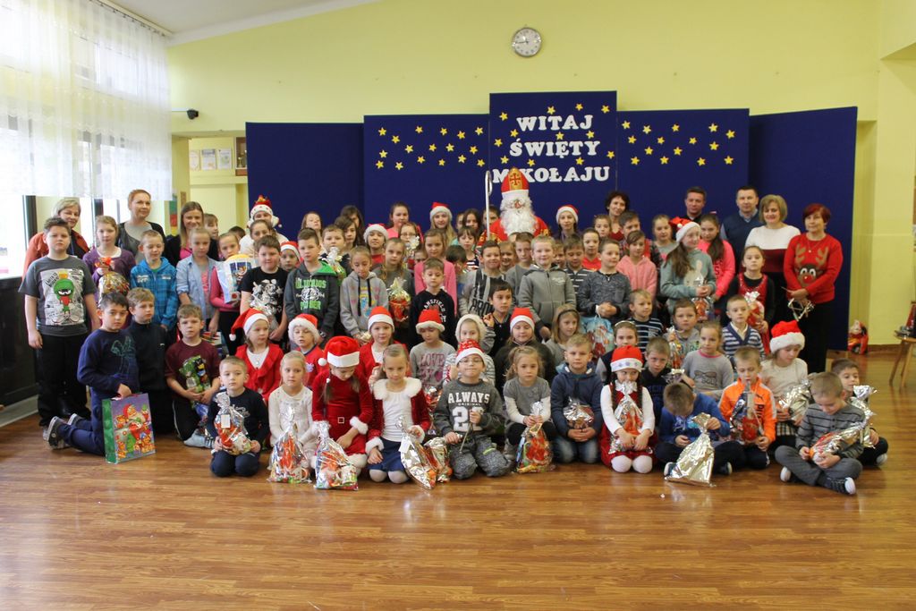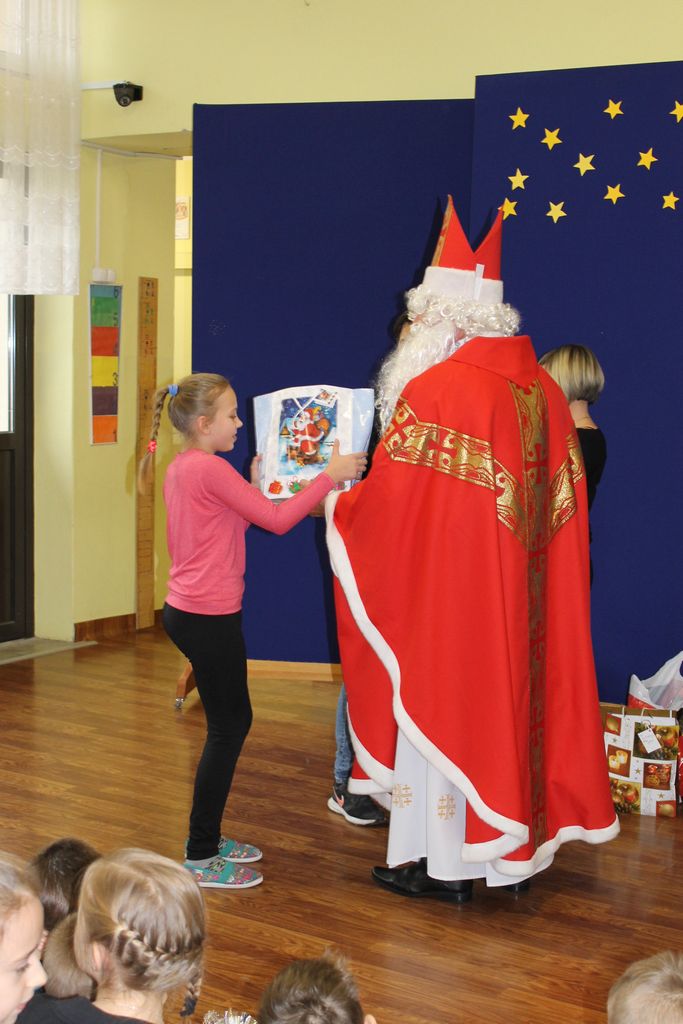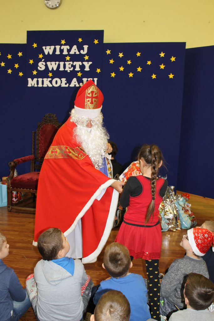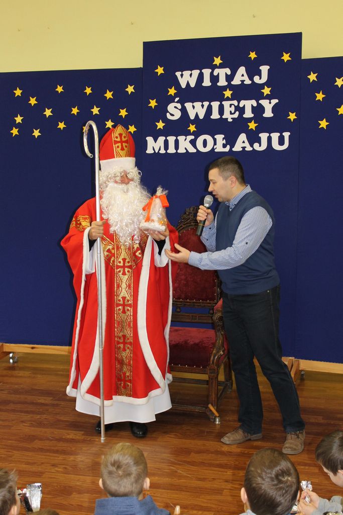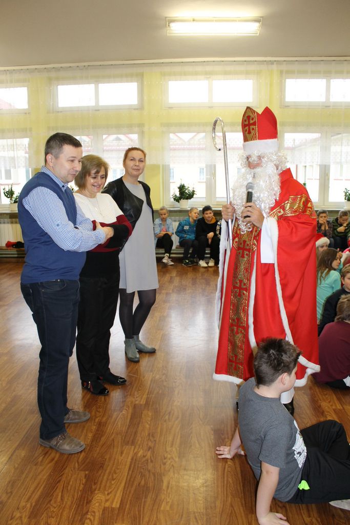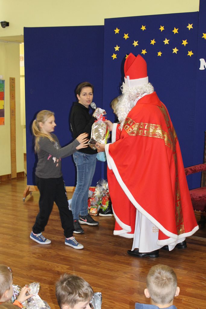 Wszystkie dzieci otrzymały prezenty, a Mikołaj nie zapomniał również o nauczycielach. Na koniec, żeby Mikołaj pamiętał o naszej szkole w następnym roku, dyrektor w imieniu wszystkich uczniów i pracowników wręczył mu drobny upominek. Wizytę zakończyło wspólne zdjęcie.