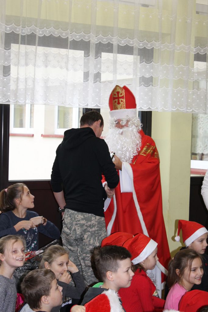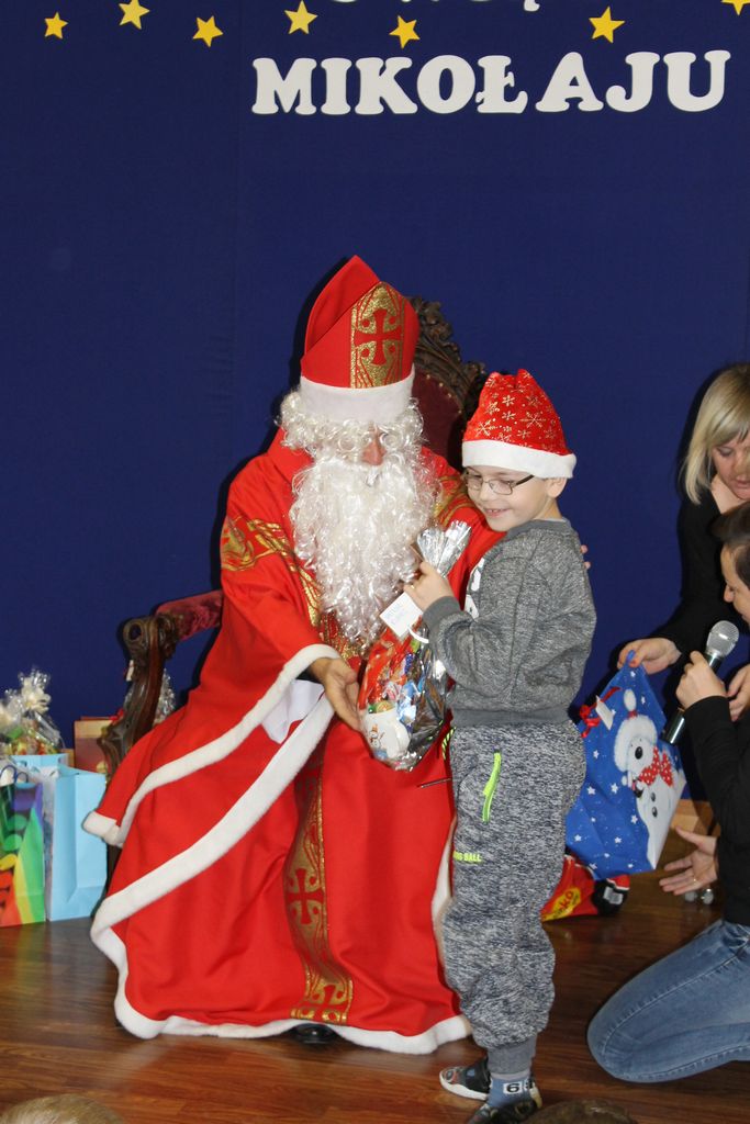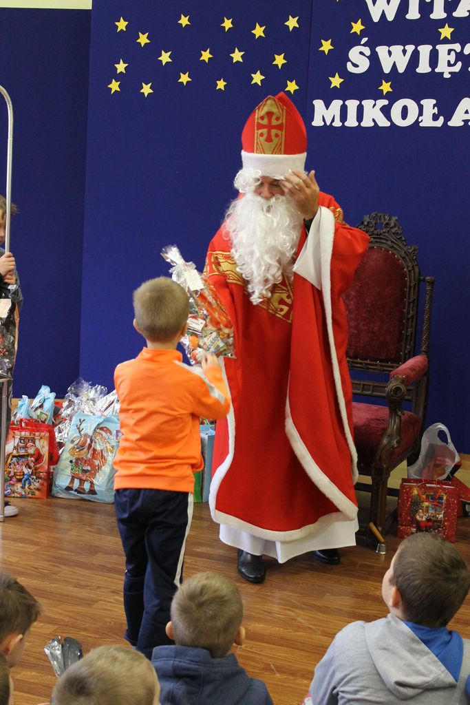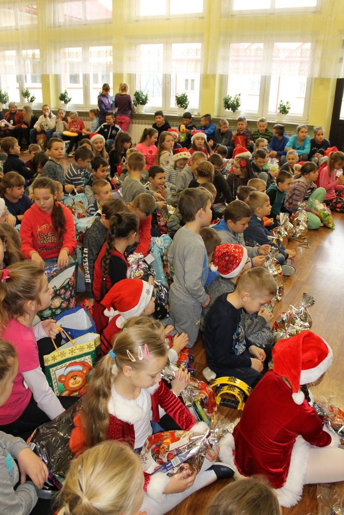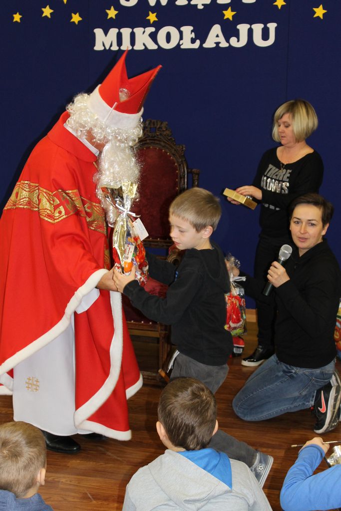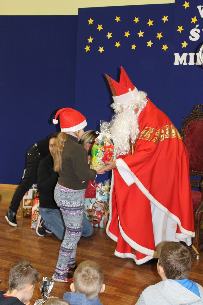 Wszystkie dzieci otrzymały prezenty, a Mikołaj nie zapomniał również o nauczycielach. Na koniec, żeby Mikołaj pamiętał o naszej szkole w następnym roku, dyrektor w imieniu wszystkich uczniów i pracowników wręczył mu drobny upominek. Wizytę zakończyło wspólne zdjęcie.