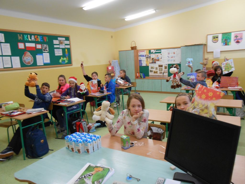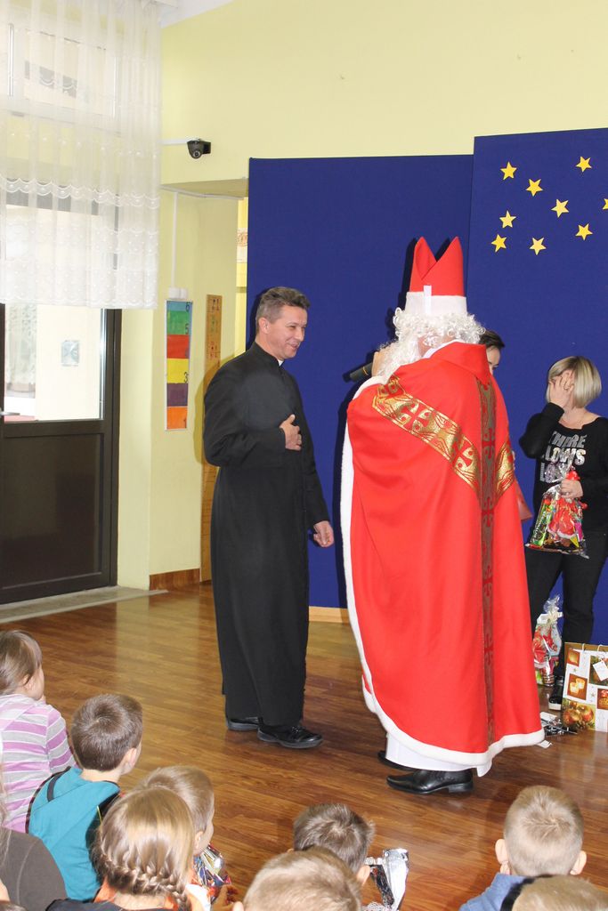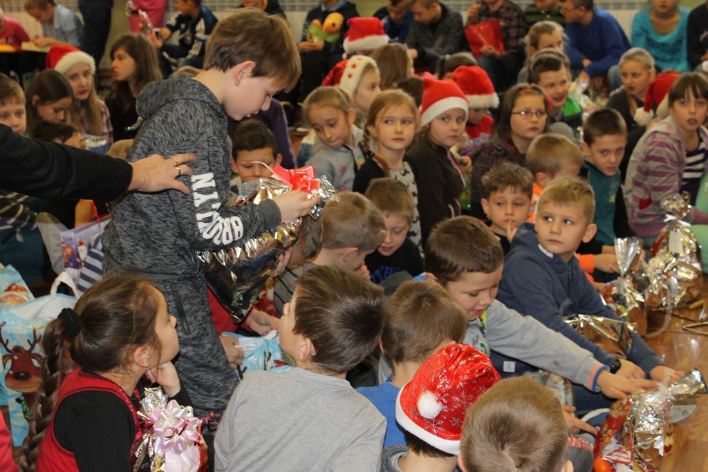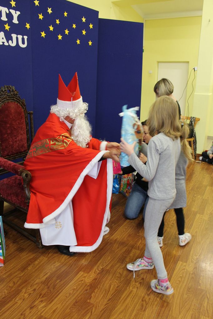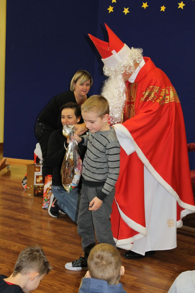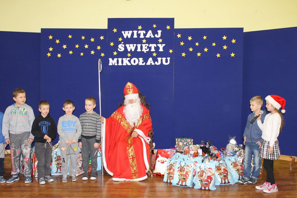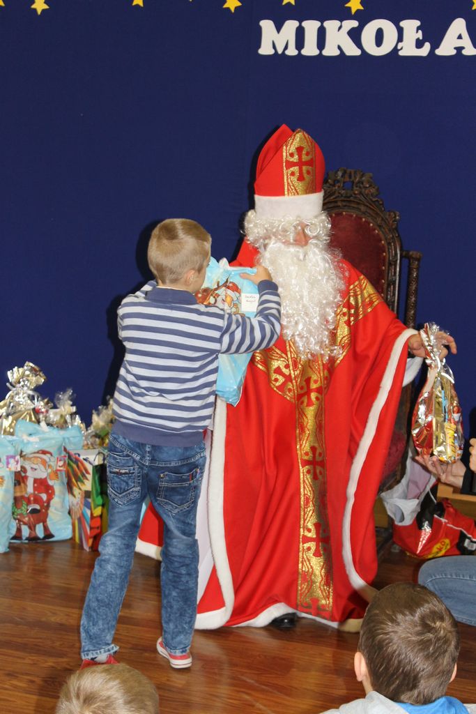 Wszystkie dzieci otrzymały prezenty, a Mikołaj nie zapomniał również o nauczycielach. Na koniec, żeby Mikołaj pamiętał o naszej szkole w następnym roku, dyrektor w imieniu wszystkich uczniów i pracowników wręczył mu drobny upominek. Wizytę zakończyło wspólne zdjęcie.