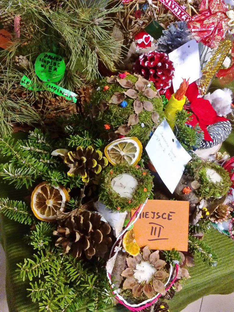 Dziękujemy Dąbrowskiemu Domowi Kultury za zorganizowanie tego konkursu, za przyznanie nagrody i wyróżnienia oraz za piękne pamiątkowe dyplomy. Wszystkie stroiki konkursowe będą ozdabiały nasze stoły podczas szkolnego spotkania opłatkowego a potem stoły autorów prac na domowej wigilijnej kolacji. Warto było uczestniczyć w tym konkursie.