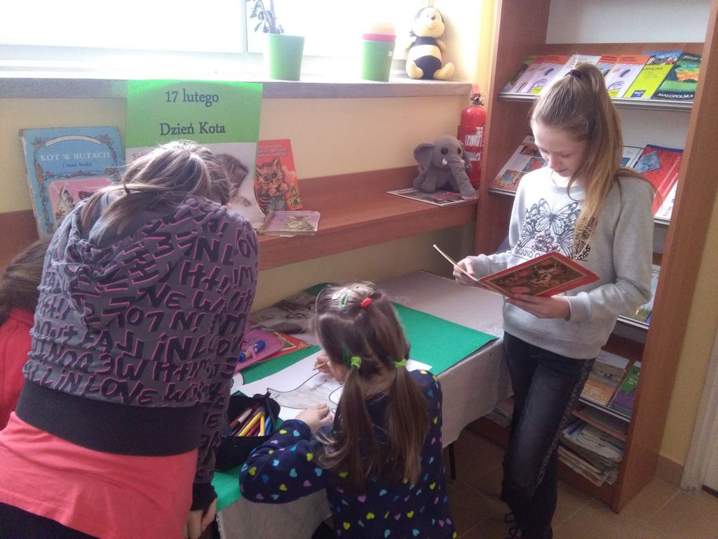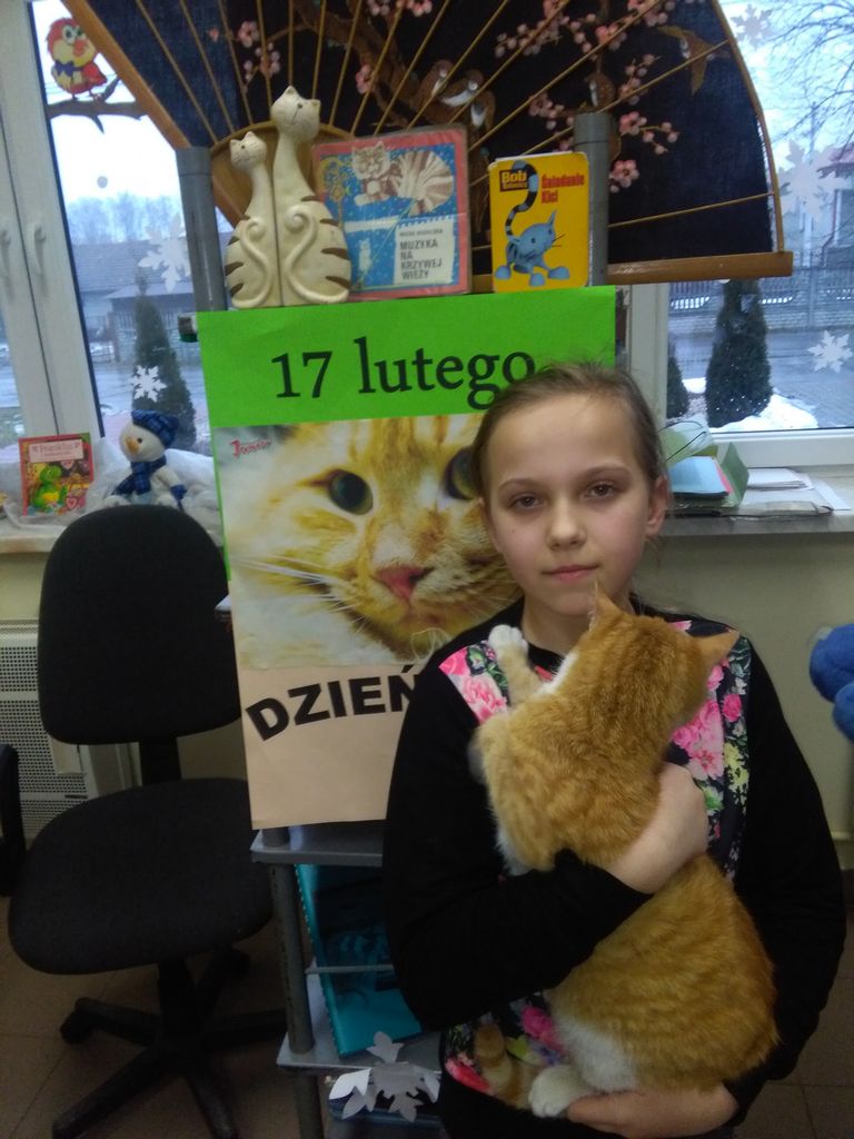 17 lutego przypada Międzynarodowy Dzień Kota. Jako pierwsi zaczęli go oficjalnie obchodzić Włosi, a tym samym postanowili zwrócić uwagę na te zwierzaczki. W Polsce dzień ten jest obchodzony od 2006 roku. Wśród czytelników nie brakuje miłośników zwierząt, dlatego też w bibliotece w Smęgorzowie zorganizowano imprezę czytelniczą „Bo koty są dobre wszystko…”. Celem zajęć było zwrócenie uwagi na znaczenie kotów w życiu człowieka, niesienie pomocy wolno żyjącym i bezdomnym zwierzętom, a także uwrażliwienie dzieci na trudny koci los. Obchody Dnia Kota rozpoczęliśmy od zorganizowania wystawy o kotach oraz prezentacji książek znajdujących się w zbiorach biblioteki o kociej tematyce. Podczas zajęć rozmawialiśmy o kotkach i ich zwyczajach. Powstało też kilka dzieł plastycznych. W trakcie spotkania odbył się konkurs na odgadywanie popularnych kotów bajkowych, dzieci bez trudu poradziły sobie z tym zadaniem Jednak największą frajdą okazała się wizyta w bibliotece „uroczego gościa” – kotki o imieniu Ruda. Dzieci były zachwycone.