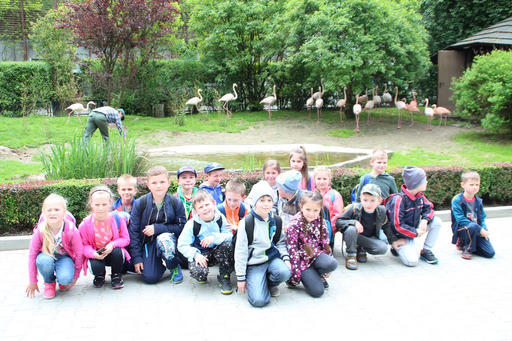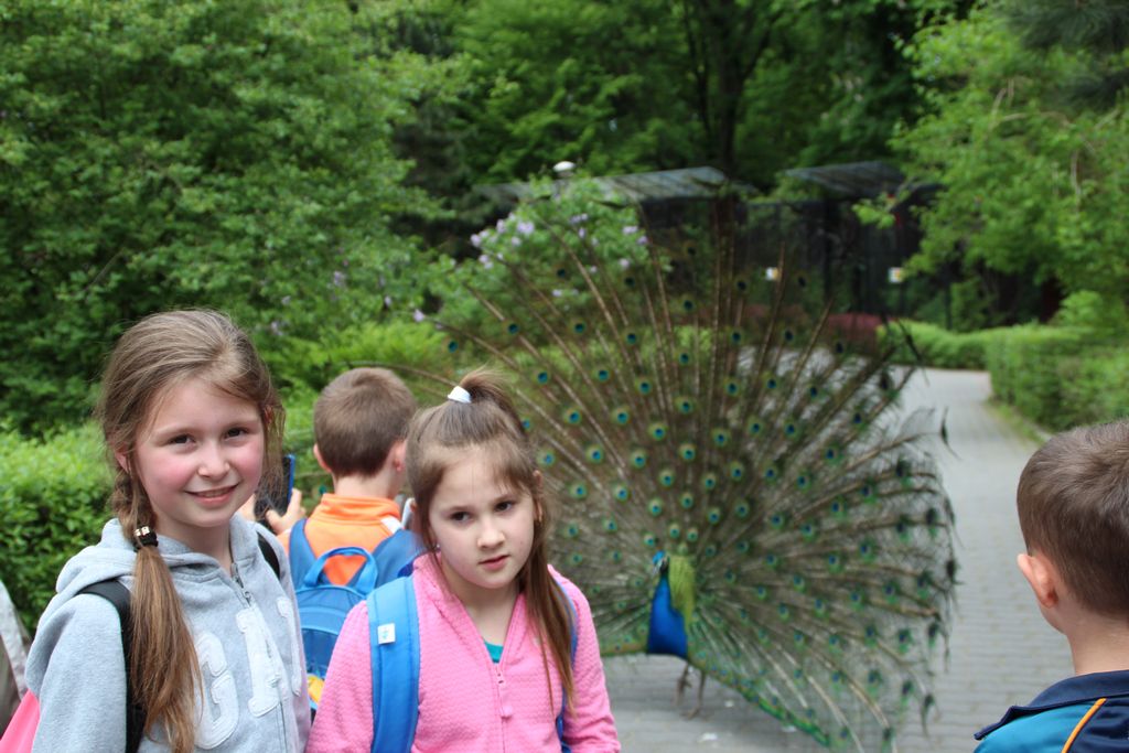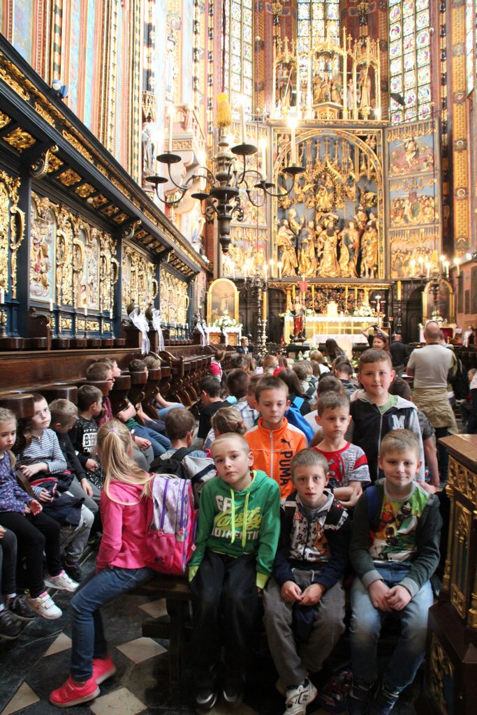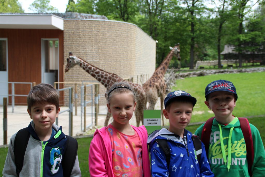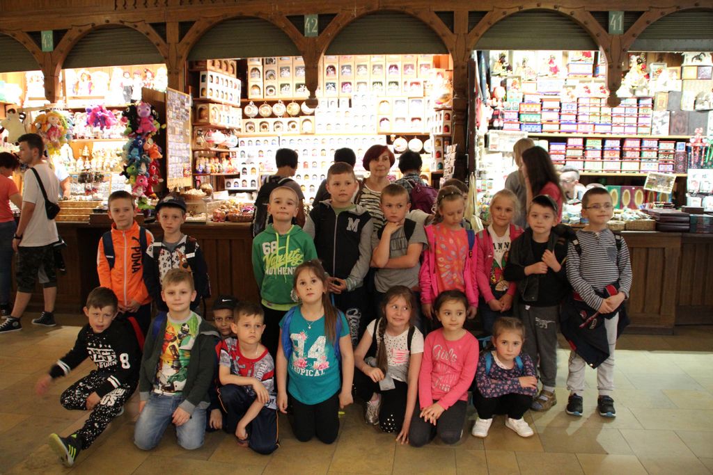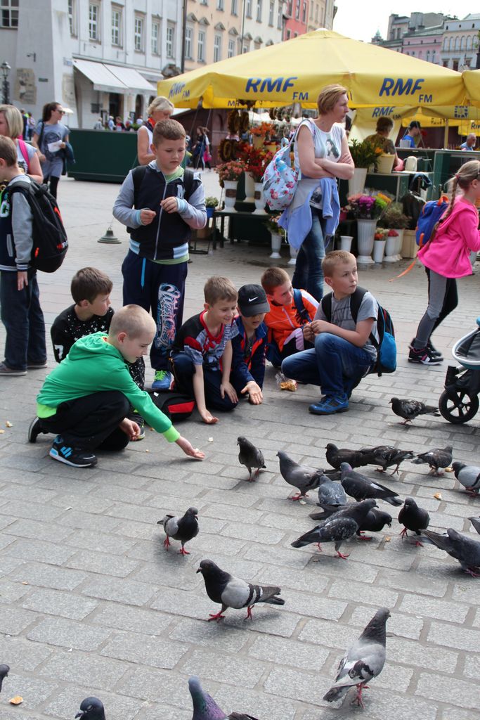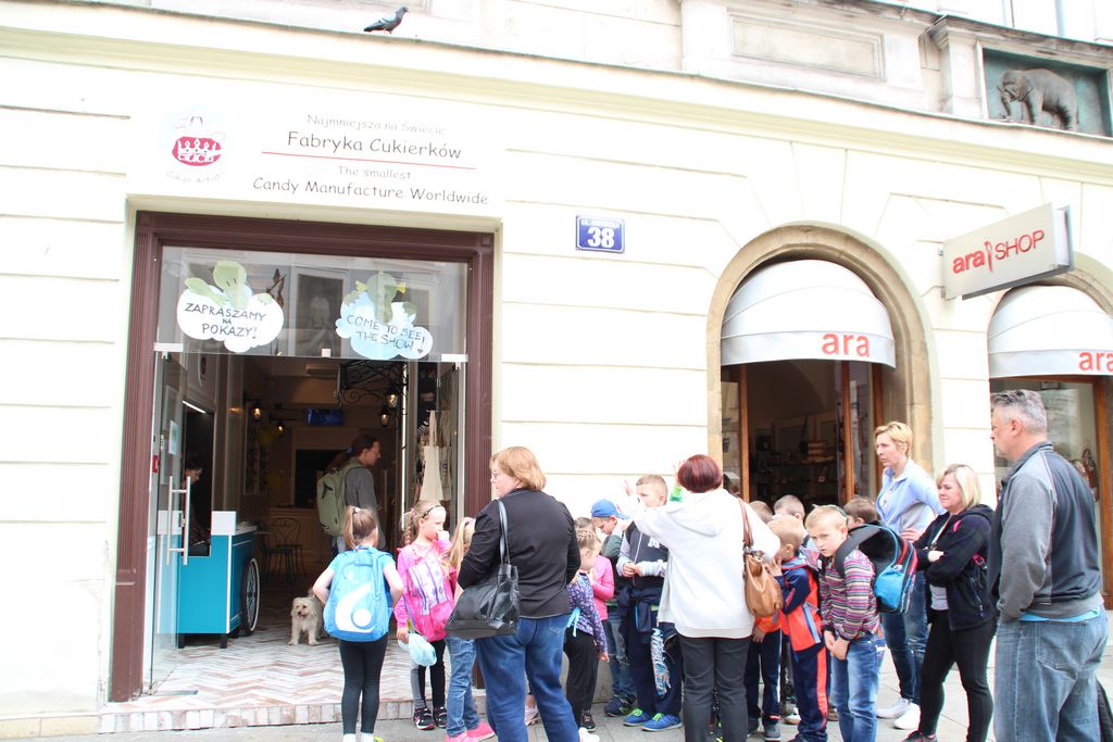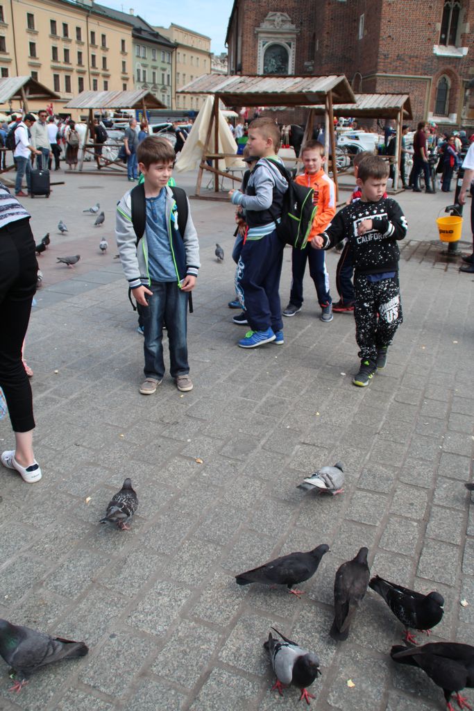 Po około 2 godzinach drogi naszym oczom ukazała się wielka brama z ogromnym napisem ZOO w Krakowie. Kiedy przekroczyliśmy tą bramę ukazało się nam prawdziwe królestwo zwierząt i duże bogactwo pięknie kwitnących wiosennych krzewów oraz nietypowych roślin. Zostaliśmy przywitani przez pawia swobodnie poruszającego się na jednej z alejek. Ptak ten wspaniale prezentował się ze swoim rozłożystym ogonem i z wielką dumą przybliżał się do dzieci aż w końcu zatrzymał się w odległości jednego metra. Trudno było się z nim rozstać. Wszystkie zwierzęta podobały się dzieciom, ale najbardziej pozostały im w pamięci zebry, lwy, wielbłądy, żyrafy, słonie, oraz małe i niezwykle urokliwe małpki. Drugim miejscem naszego pobytu była najmniejsza w Krakowie Fabryka Cukierków „Ciuciu”. Dzieci oglądały tam cały proces robienia cukierków z karmelu co wzbudziło u nich bardzo duże zainteresowanie. Były to karmelki w całości wykonane ręcznie na oczach dzieci. Nie ma w nich konserwantów ani żadnych sztucznych barwników. Po zakończeniu pokazu była okazja poczęstowania się ciepłymi cukierkami. Poza tym wszyscy otrzymali woreczek kolorowych cukierków oraz wielobarwny lizak. Korzystając z pięknej pogody zwiedzaliśmy też Sukiennice, Kościół Mariacki, pomnik Adama Mickiewicza oraz wysłuchaliśmy hejnału z Wieży Mariackiej i nakarmiliśmy gołębie.