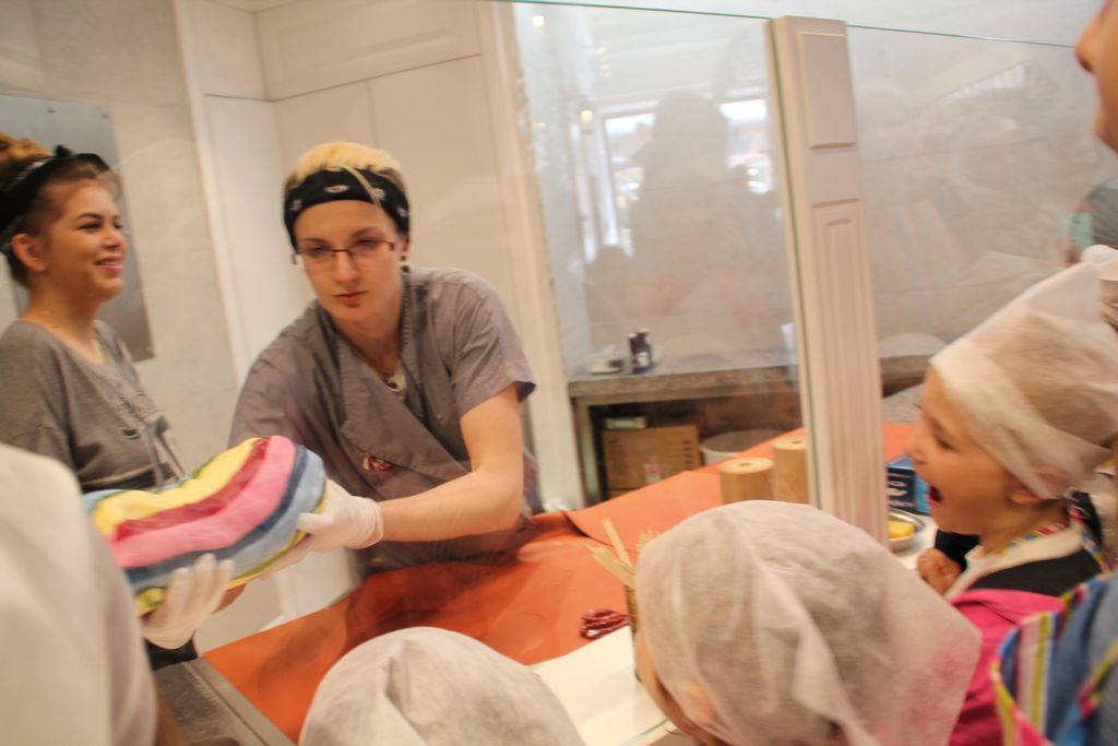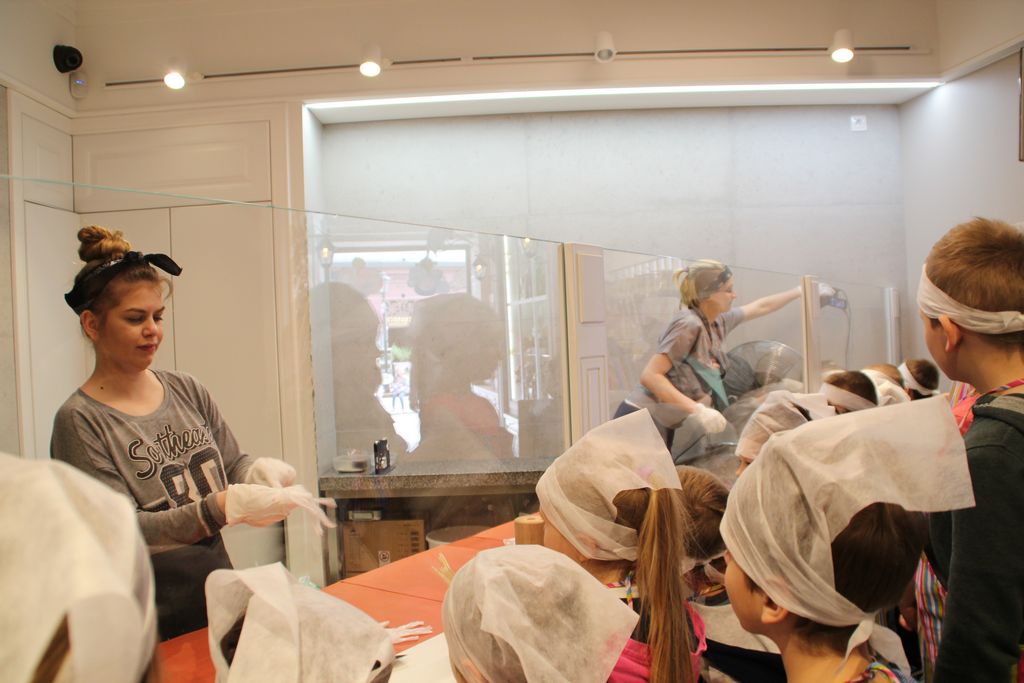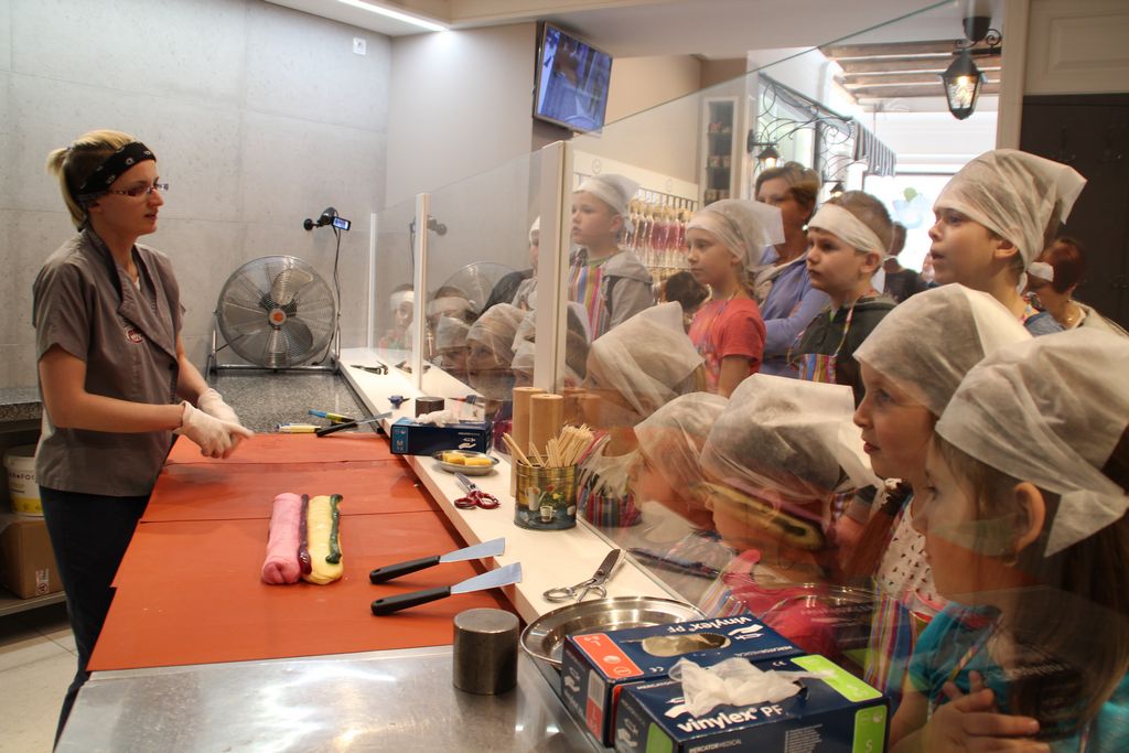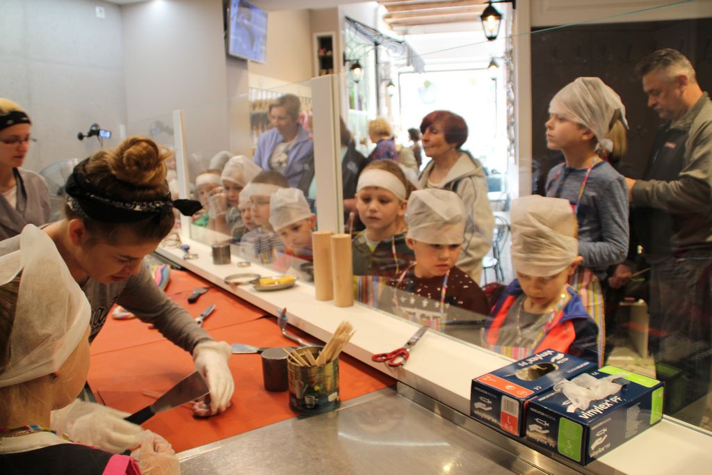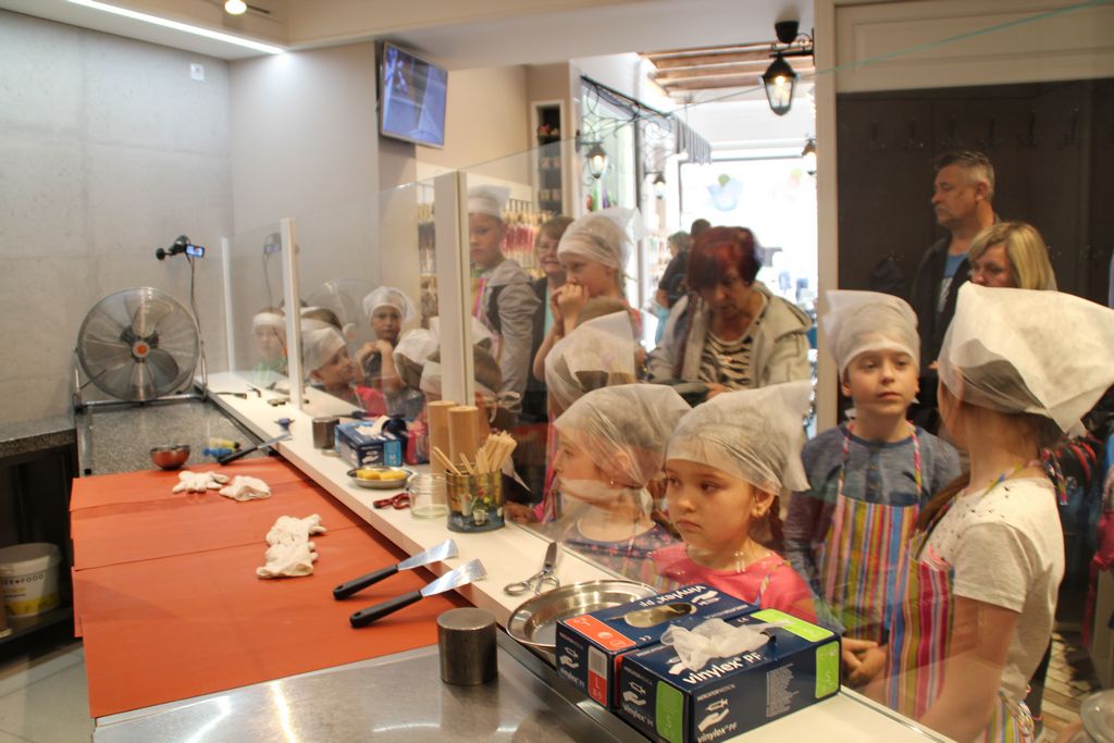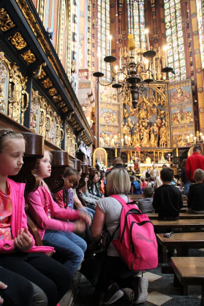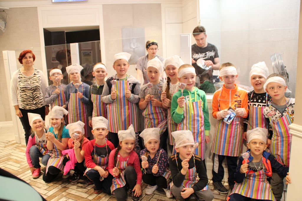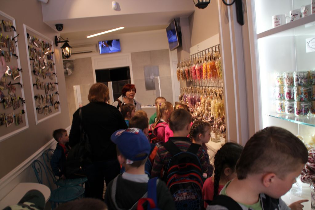 Po około 2 godzinach drogi naszym oczom ukazała się wielka brama z ogromnym napisem ZOO w Krakowie. Kiedy przekroczyliśmy tą bramę ukazało się nam prawdziwe królestwo zwierząt i duże bogactwo pięknie kwitnących wiosennych krzewów oraz nietypowych roślin. Zostaliśmy przywitani przez pawia swobodnie poruszającego się na jednej z alejek. Ptak ten wspaniale prezentował się ze swoim rozłożystym ogonem i z wielką dumą przybliżał się do dzieci aż w końcu zatrzymał się w odległości jednego metra. Trudno było się z nim rozstać. Wszystkie zwierzęta podobały się dzieciom, ale najbardziej pozostały im w pamięci zebry, lwy, wielbłądy, żyrafy, słonie, oraz małe i niezwykle urokliwe małpki. Drugim miejscem naszego pobytu była najmniejsza w Krakowie Fabryka Cukierków „Ciuciu”. Dzieci oglądały tam cały proces robienia cukierków z karmelu co wzbudziło u nich bardzo duże zainteresowanie. Były to karmelki w całości wykonane ręcznie na oczach dzieci. Nie ma w nich konserwantów ani żadnych sztucznych barwników. Po zakończeniu pokazu była okazja poczęstowania się ciepłymi cukierkami. Poza tym wszyscy otrzymali woreczek kolorowych cukierków oraz wielobarwny lizak. Korzystając z pięknej pogody zwiedzaliśmy też Sukiennice, Kościół Mariacki, pomnik Adama Mickiewicza oraz wysłuchaliśmy hejnału z Wieży Mariackiej i nakarmiliśmy gołębie.