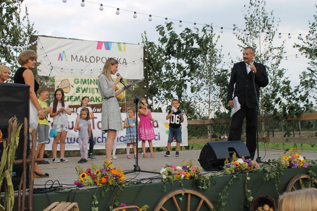 Nasza szkoła bardzo aktywnie włączyła się w organizację festynu. Nauczycielki, pani Elżbieta Kaczocha oraz pani Irena Golonka przygotowały mnóstwo zabaw i konkursów, w których brały udział nie tylko dzieci, ale i zaproszeni goście. Pani sołtys Bernadetta Mrówka okazała się bezkonkurencyjna w „produkcji” frytek, a Zastępca Burmistrza, pan Stanisław Ryczek w ubijaniu piany z jednego jajka. Wszyscy spontanicznie i wesoło bawili się podczas tworzenia ziemniaczanych ludzików, tropienia ukrytych na terenie stadionu kartek oraz zawijania „mumii”.