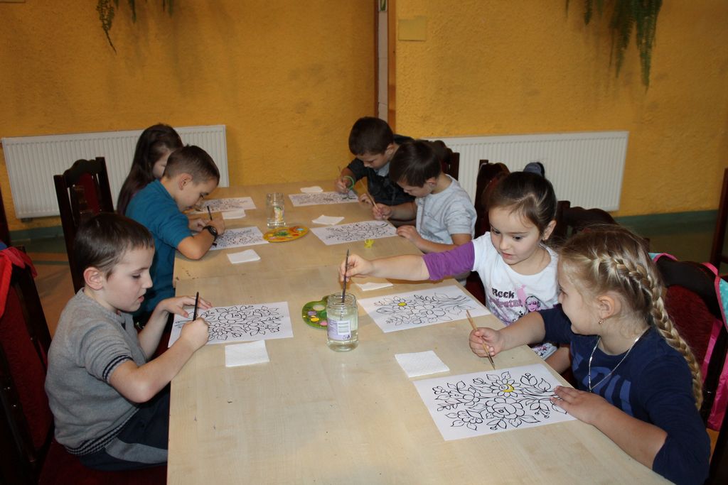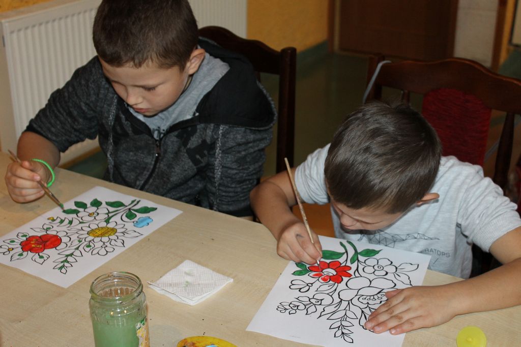 7 listopada był drugim dniem, kiedy to uczniowie naszej szkoły byli uczestnikami warsztatów plastycznych organizowanych przez Gminny Ośrodek Kultury w Oleśnie z siedzibą w Zalipiu. Tym razem pojechały dzieci z klas I i II. Jakkolwiek pogoda była chłodna i pochmurna, to w Domu Malarek zostaliśmy bardzo ciepło i serdecznie przyjęci. Duże wrażenie zrobiły na nas pięknie wymalowane girlandy na ścianach, sufitach i meblach. Dały się też zauważyć ekspozycje kwiatowe z bibuły w postaci wiszących u sufitów pająków. Było pięknie i kolorowo. Tak też barwnie i starannie wykonali prace plastyczne nasi uczniowie, którzy cały czas pracowali w dużym skupieniu i z wielkim zaangażowaniem. Mieli możliwość zabrać wykonane przez siebie malunki do domu, by efekty ich starań ocenili rodzice.