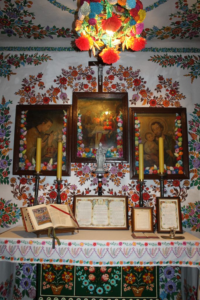 Po zakończeniu warsztatów zachwycaliśmy się pięknym otoczeniem Domu Malarek i zrobiliśmy tam pamiątkowe zdjęcia, po czym oglądnęliśmy Izbę Regionalną, gdzie była możliwość zapoznania się z wyglądem dawnej kuchni pięknie zdobionej kwiatami i glinianymi naczyniami. Można tu też było kupić pamiątki z motywami zalipiańskich kwiatów.