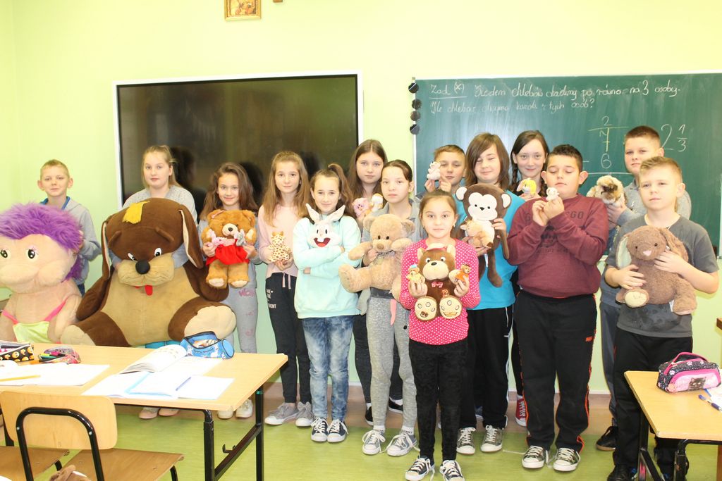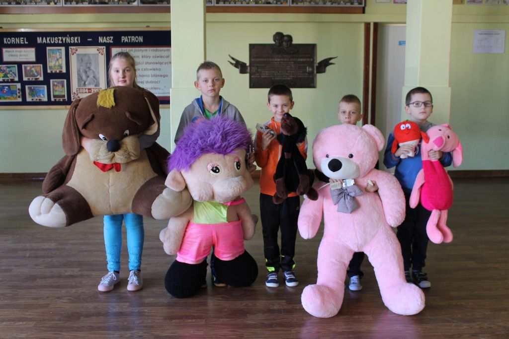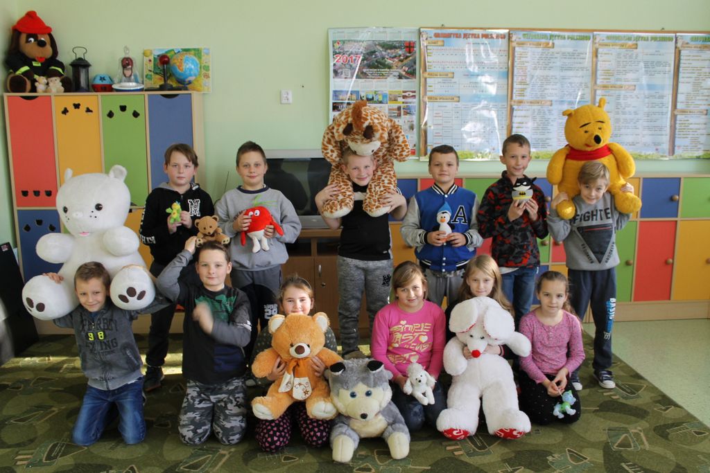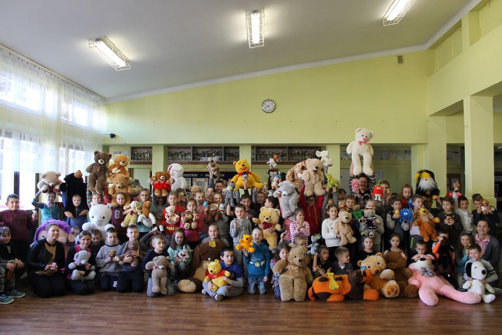 24 listopada 2017 r. w naszej szkole obchodzono Światowy Dzień Pluszowego Misia. Tego dnia uczniowie przynieśli do szkoły swoje ulubione maskotki. Dzieci szczególnie z klas młodszych z wielkim zapałem przystąpiły do obchodów tego miłego i sympatycznego dnia. Pluszaki panoszyły się i na przerwach, i na lekcjach. Pełno ich było także w bibliotece szkolnej. Puszyste, miękkie, miłe w dotyku maskotki są ulubieńcami dzieci na całym świecie. Pocieszają, dodają otuchy i są nieodzowną przytulanką przy zasypianiu. Dzień zakończył się wspólnym, radosnym tańcem na szkolnym holu i wyborem największego i najmniejszego misia. Choć święto trwało krótko, dało niepowtarzalną okazję do połączenia zabawy i nauki.