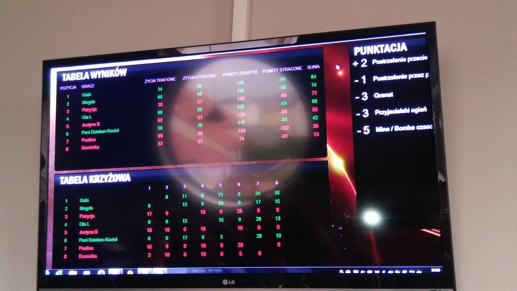 Najlepszym klasowym snajperem okazał się Kamil Kogut, a najwięcej celnych strzałów zostało oddanych w kierunku naszych pań – Katarzyny Dziekan-Kozioł i Justyny Bociek. Do tej pory nikt nie wie dlaczego… 🙂 🙂 🙂