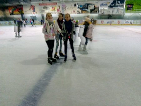 Spośród 21-osobowej grupy większość młodzieży bardzo dobrze ślizgała się na lodzie, ale i były i takie osoby, które dopiero stawiały na nim pierwsze kroki i jak to zwykle bywa w takich sytuacjach nie obeszło się bez upadków. Uczniowie wzajemnie się wspierali i pomagali sobie na lodzie. Czas na lodowisku w miłej atmosferze bardzo szybko nam upłynął. W drodze powrotnej do szkoły już planowaliśmy następny wyjazd.