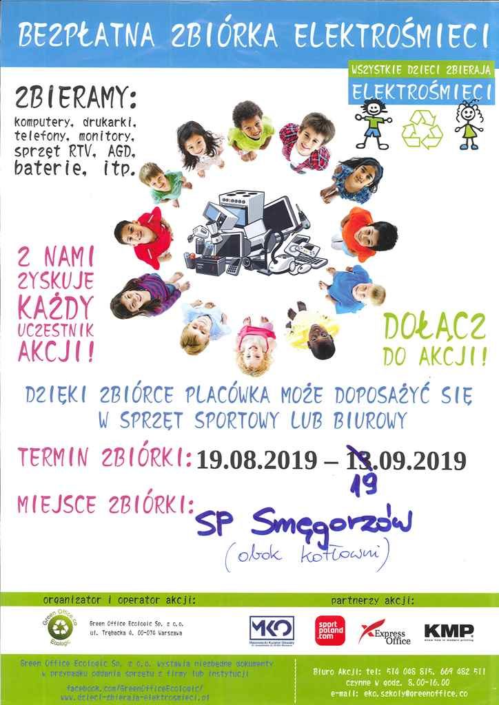 Do czwartku 19 września będzie trwała zbiórka elektrośmieci. Można je składać na placu za kotłownią (przy kominie). Odbiór elektrośmieci nastąpi 19 IX około południa.