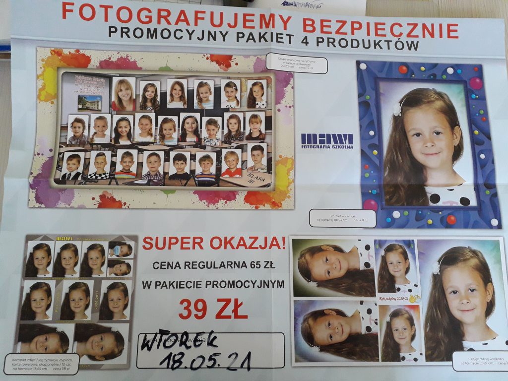 We wtorek 18 maja w naszej szkole będą robione zdjęcia klasowe. W ofercie będą również inne zdjęcia. Oferta jest dopasowana do zasad sanitarnych obowiązujących przy robieniu zdjęć.