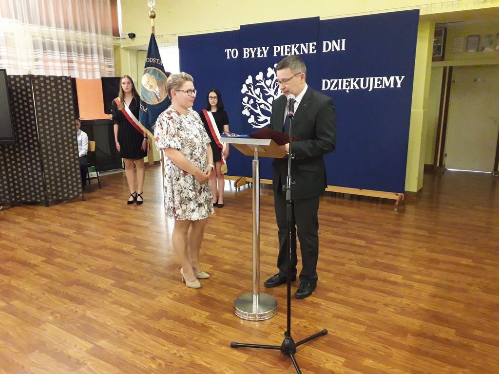 Specjalne słowa Dyrektor skierował do p. Agnieszki Rustowicz, którą w podziękowaniu za lata spędzone w naszej szkole uhonorował Nagrodą Dyrektora Szkoły.