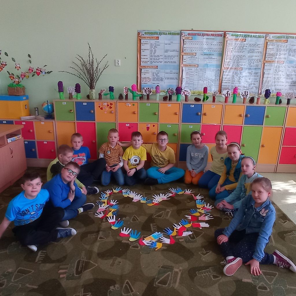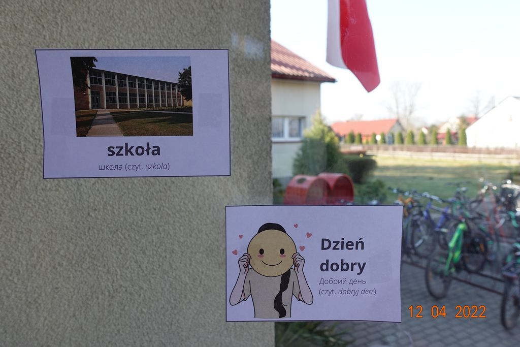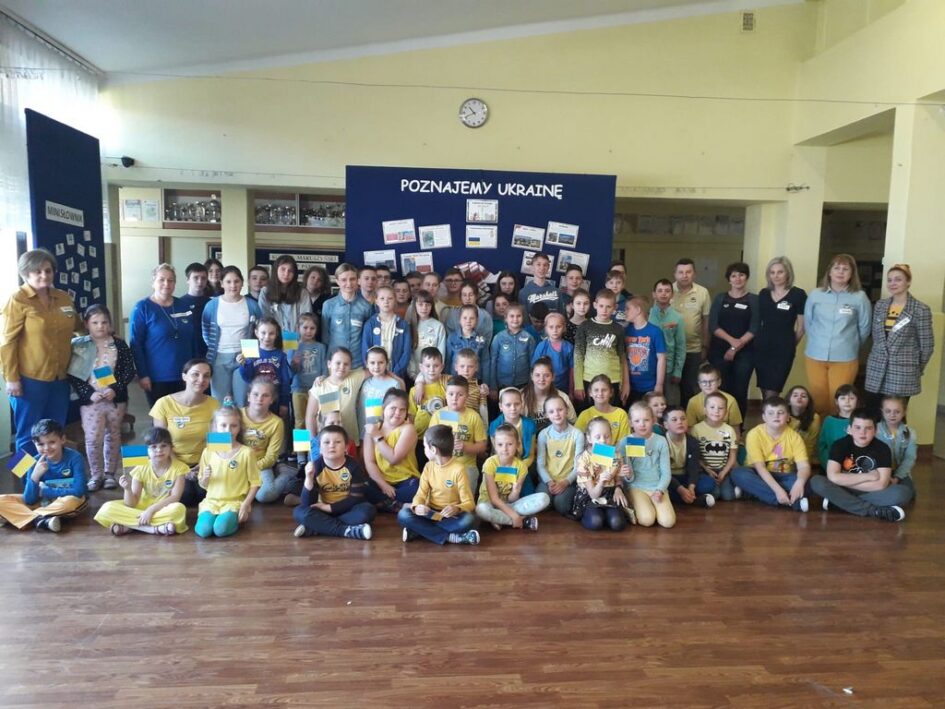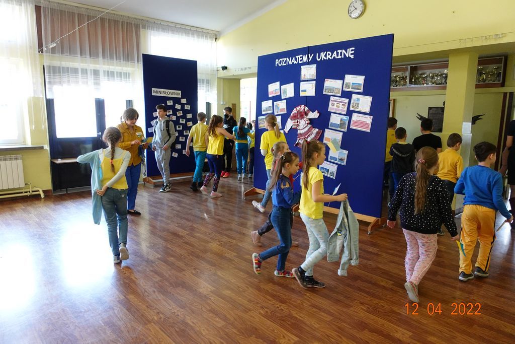 Dzieci z klas I-III również zapoznały się z tradycją i kulturą Ukrainy. Efektem tego było wiele prac plastycznych, które później ozdobiły naszą szkołę. Na przerwie uczniowie mogli obejrzeć wystawę – „Poznajemy Ukrainę”, na której m.in. zaprezentowano tradycyjny strój ukraiński z koszulą zwaną „wyszywanką”. Powszechne zainteresowanie wśród uczniów wzbudził oczywiście język ukraiński i wspaniały mini słownik, który zawisł na szkolnej gazetce. Uczniowie otrzymali plakietki ze swoimi imionami w języku ukraińskim. Na przerwach można było usłyszeć wiele zapamiętanych zwrotów w nowo poznanym języku.
