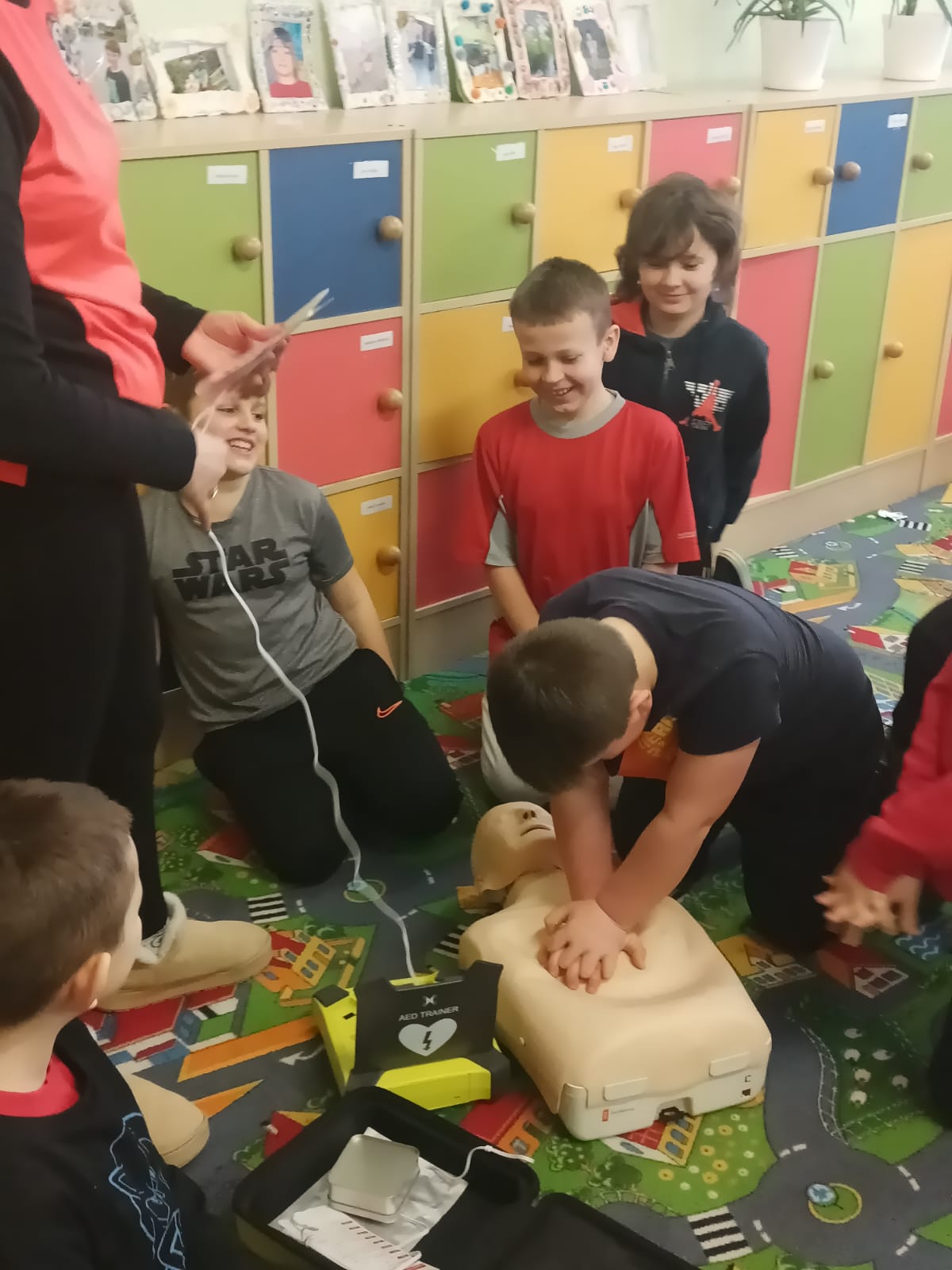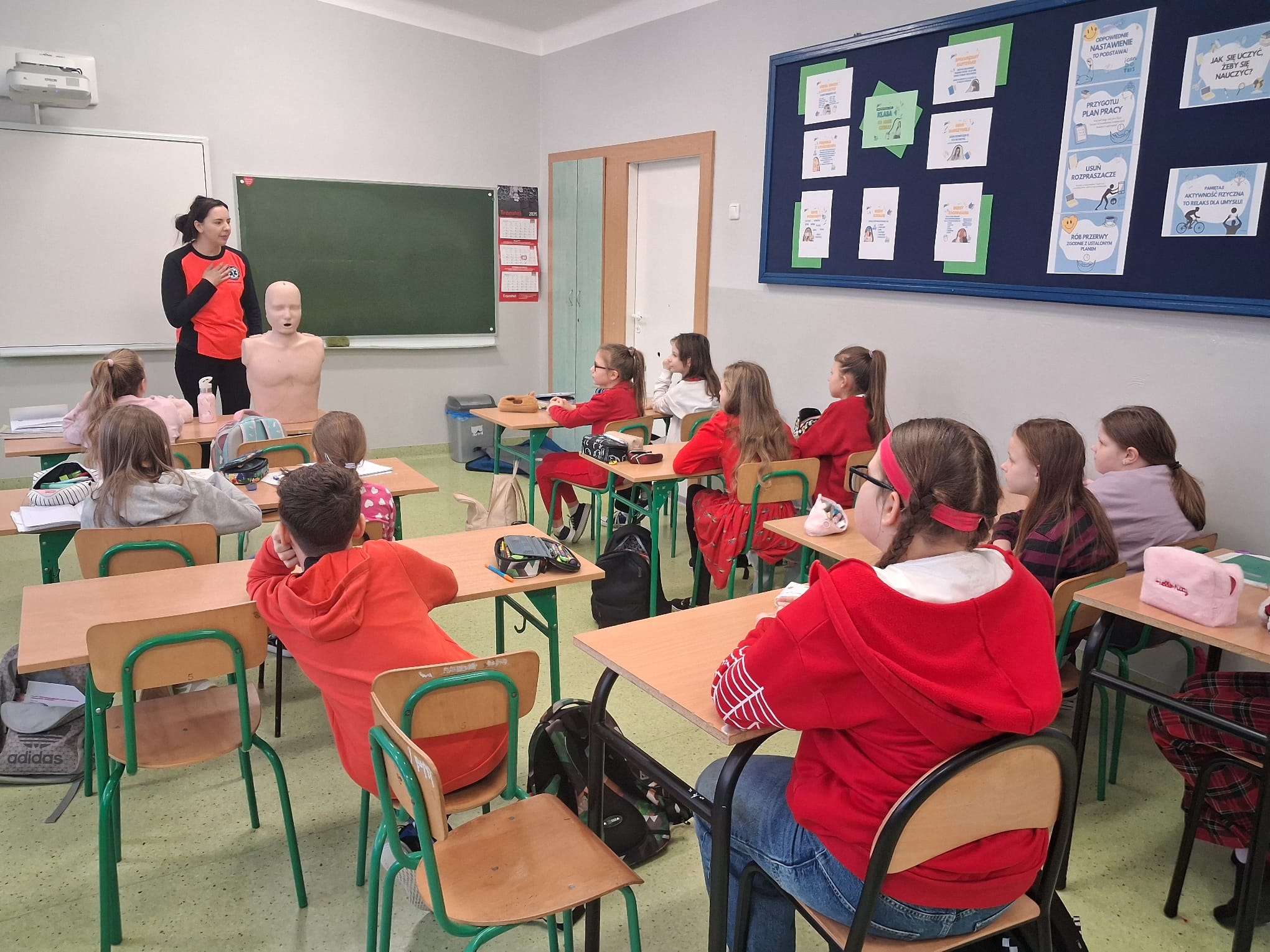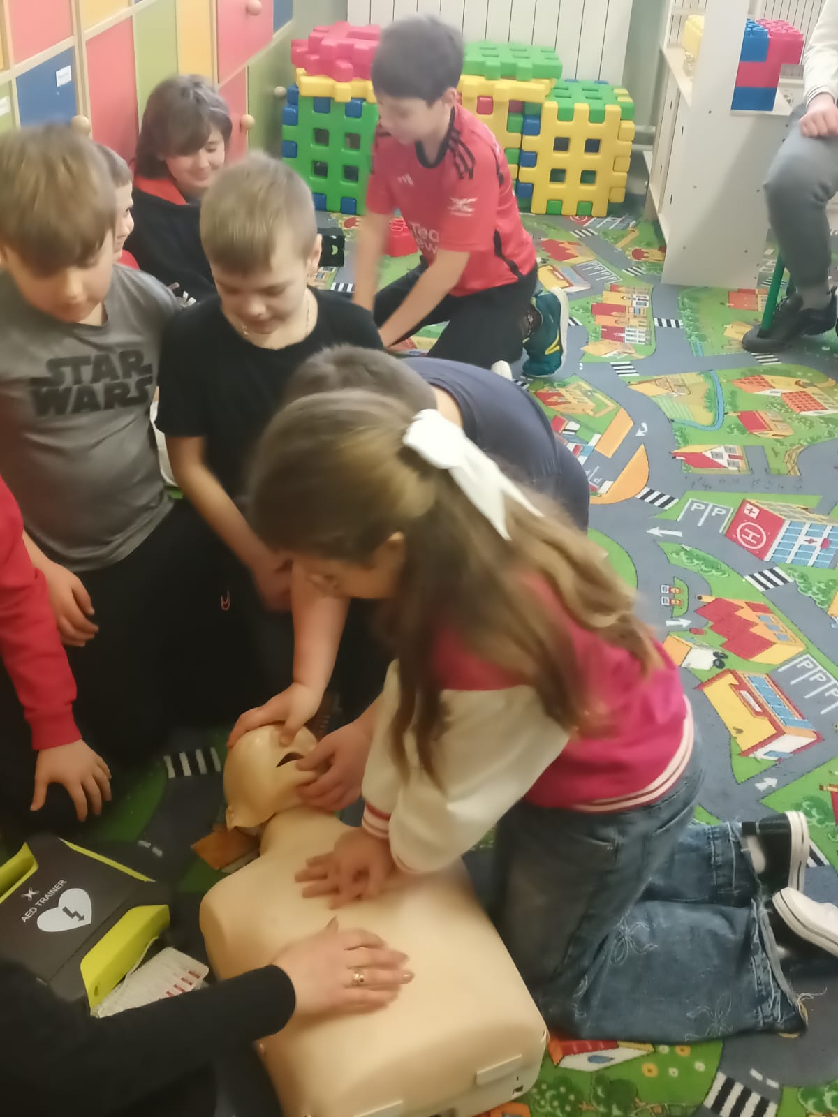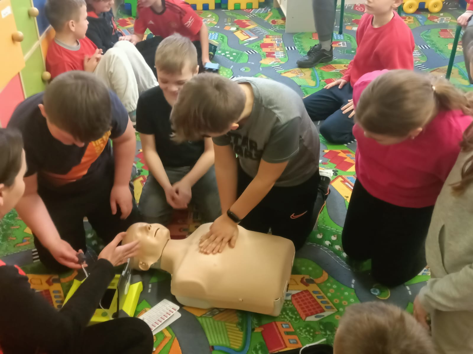Podczas warsztatów uczniowie zdobywali praktyczne umiejętności związane z udzielaniem pierwszej pomocy. Uczyli się resuscytacji krążeniowo-oddechowej (RKO), układania poszkodowanego w pozycji bocznej bezpiecznej oraz prawidłowego reagowania w nagłych sytuacjach. Szczególną uwagę poświęcono obsłudze Automatycznego Defibrylatora Zewnętrznego (AED) – urządzenia, które może uratować życie w przypadku nagłego zatrzymania krążenia.