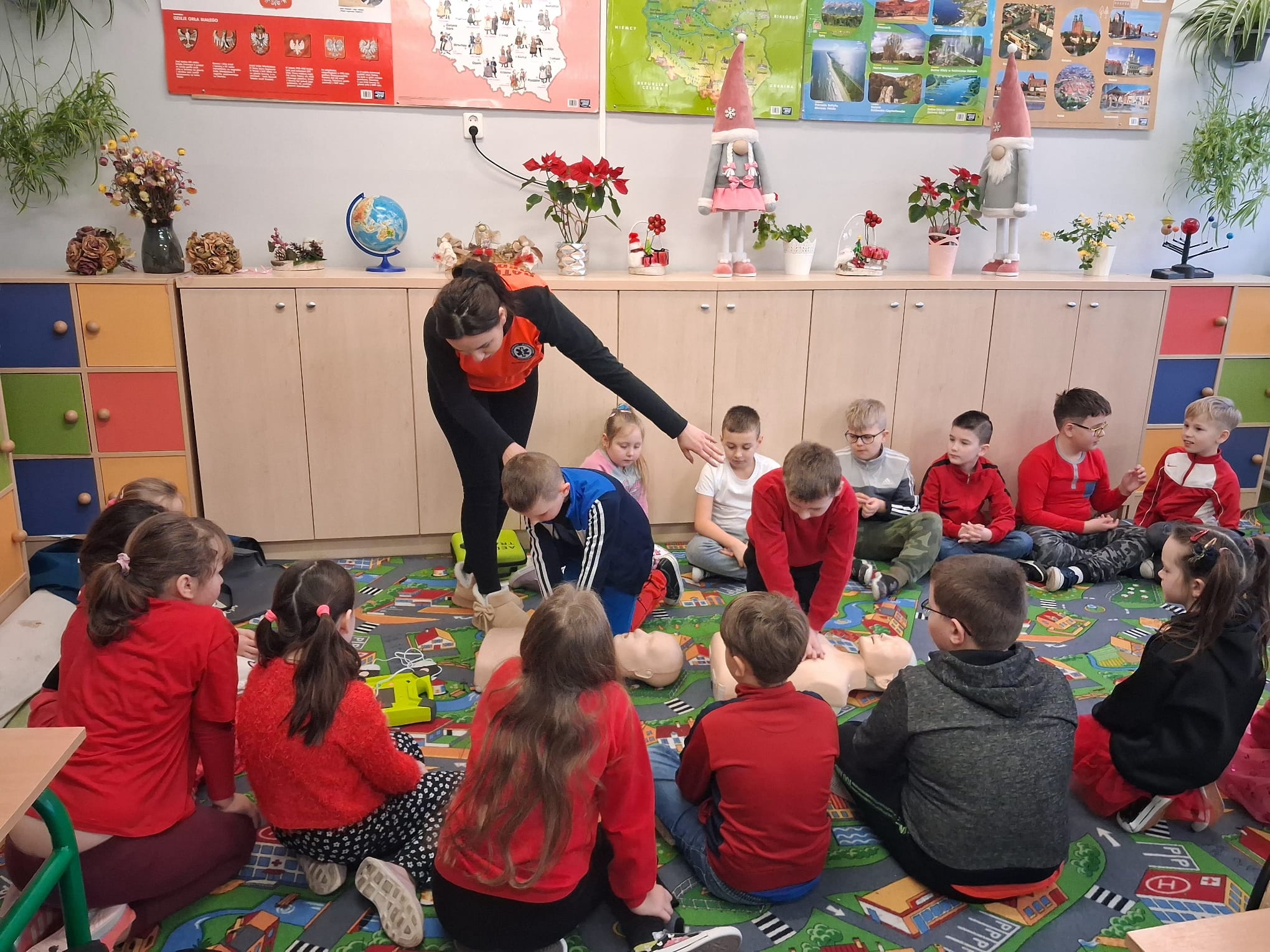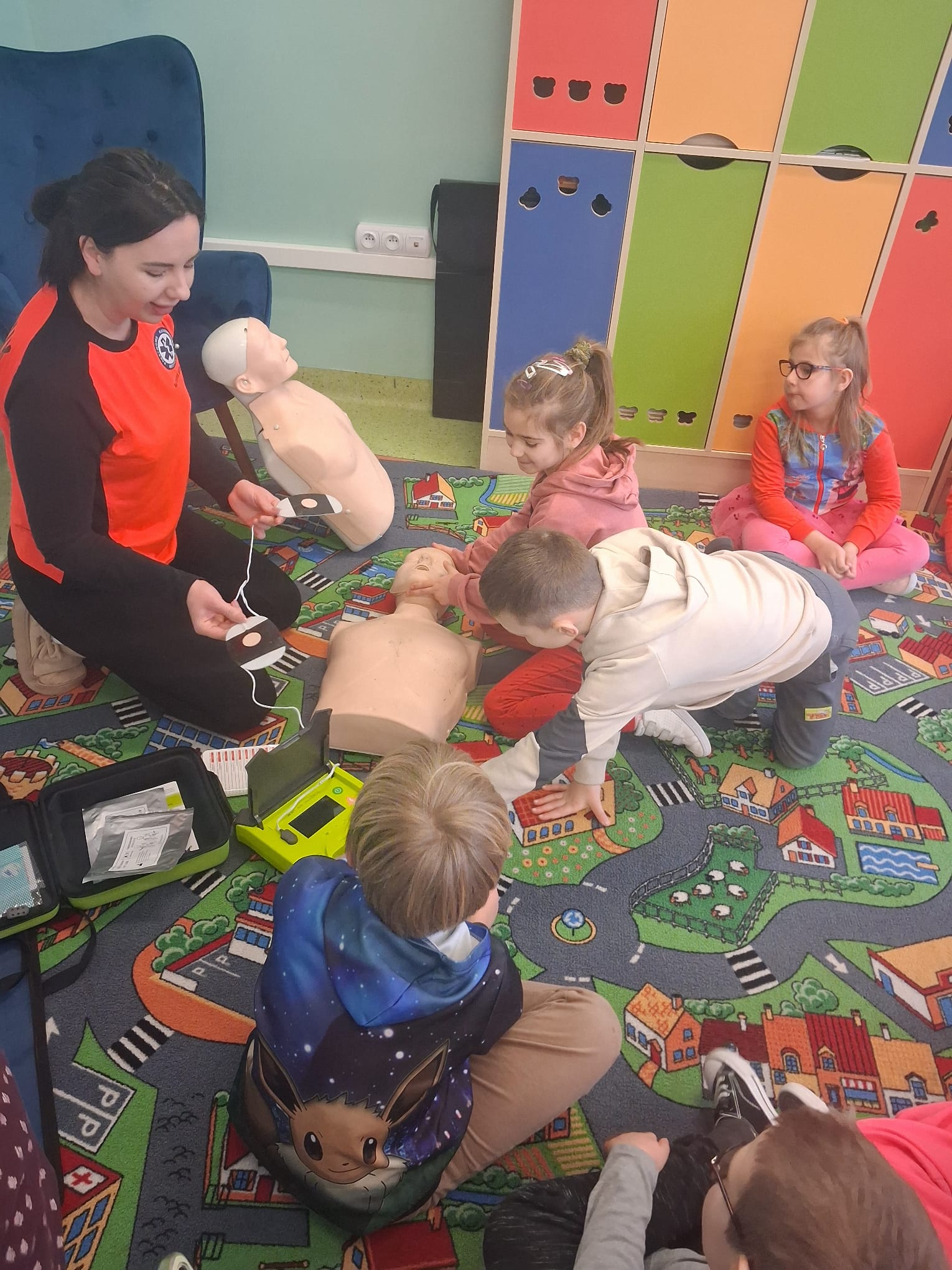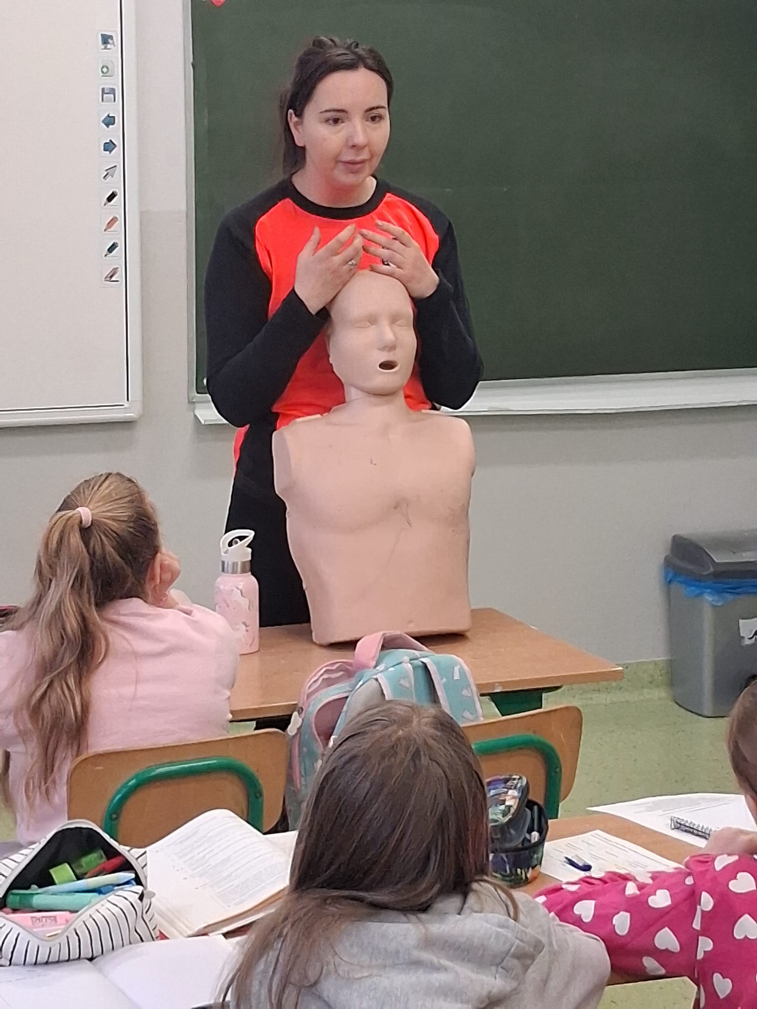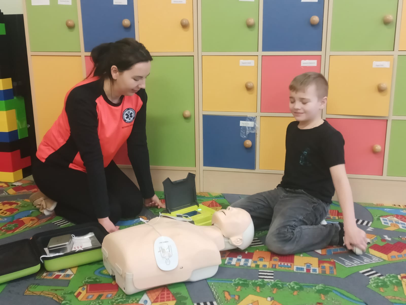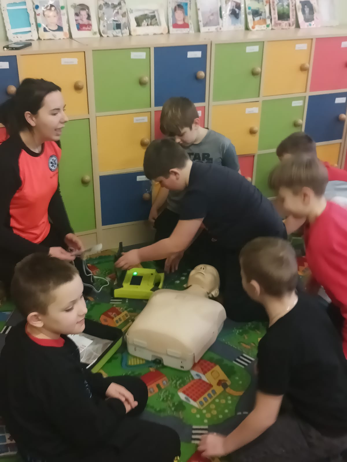 Podczas warsztatów uczniowie zdobywali praktyczne umiejętności związane z udzielaniem pierwszej pomocy. Uczyli się resuscytacji krążeniowo-oddechowej (RKO), układania poszkodowanego w pozycji bocznej bezpiecznej oraz prawidłowego reagowania w nagłych sytuacjach. Szczególną uwagę poświęcono obsłudze Automatycznego Defibrylatora Zewnętrznego (AED) – urządzenia, które może uratować życie w przypadku nagłego zatrzymania krążenia.