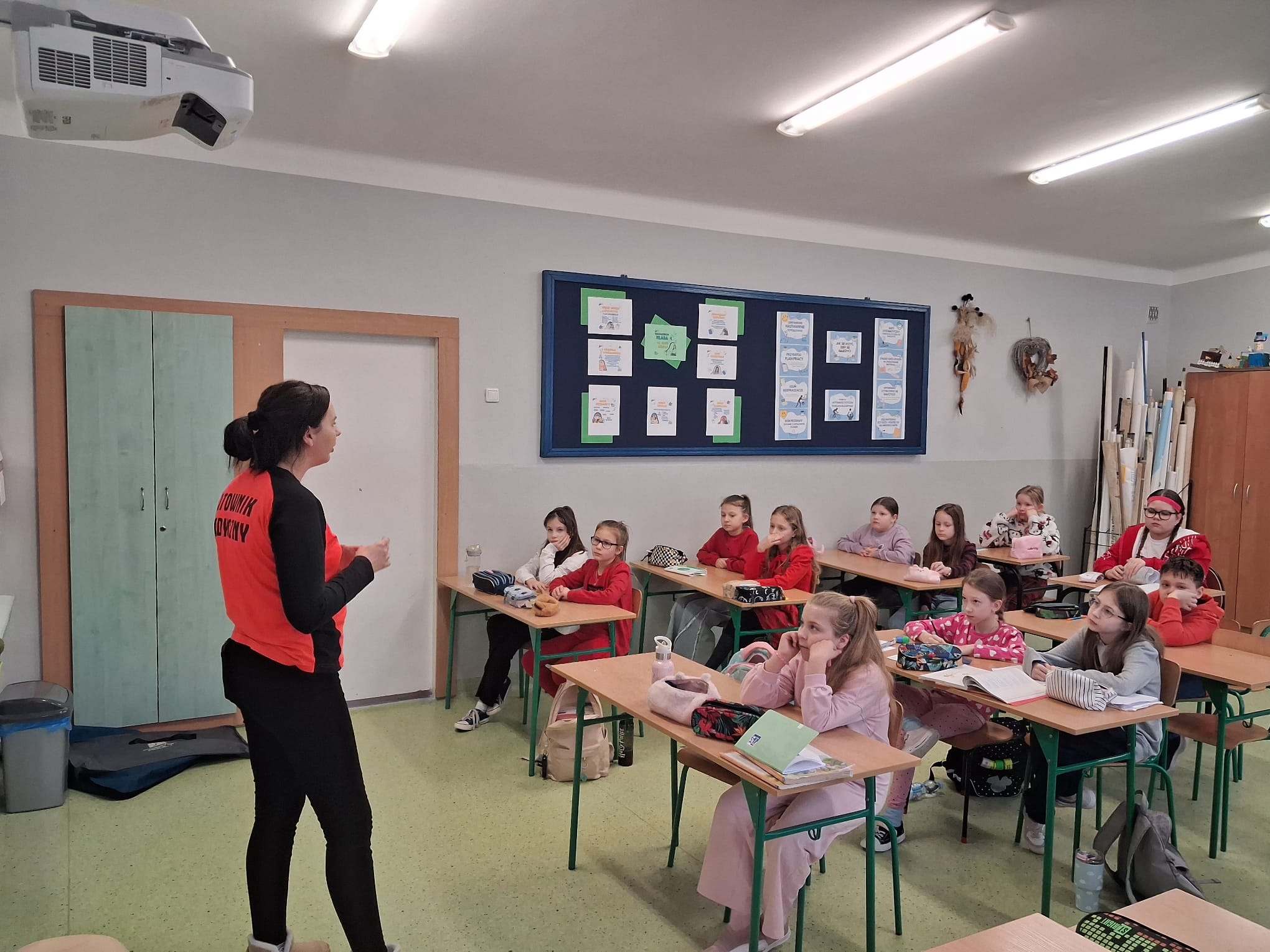 Nie bez powodu skupiono się na AED – identyczne urządzenie znajduje się na budynku straży pożarnej w Smęgorzowie, dzięki czemu uczniowie zdobyli wiedzę, która może przydać się w ich najbliższym otoczeniu. Każdy miał okazję zobaczyć, jak działa defibrylator i przećwiczyć jego obsługę pod okiem profesjonalistki.