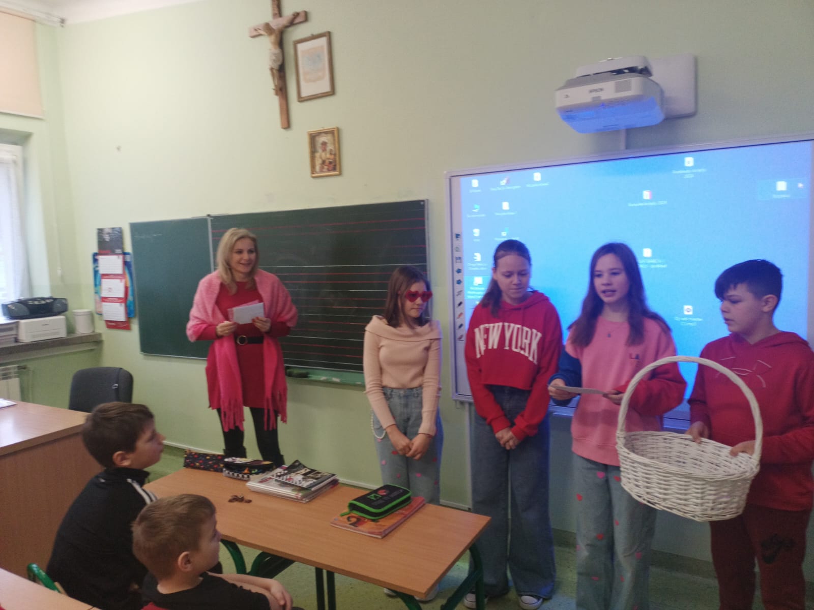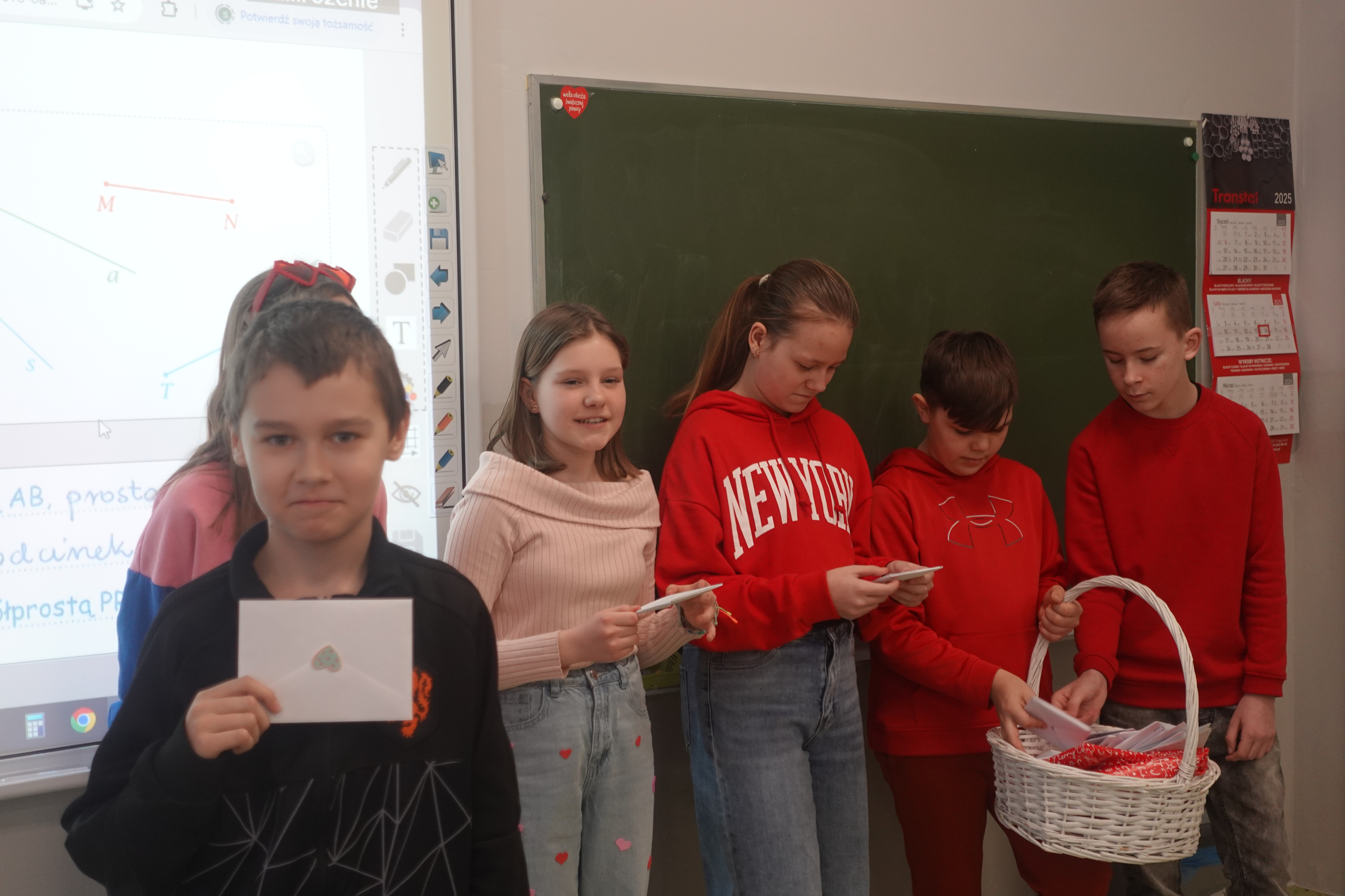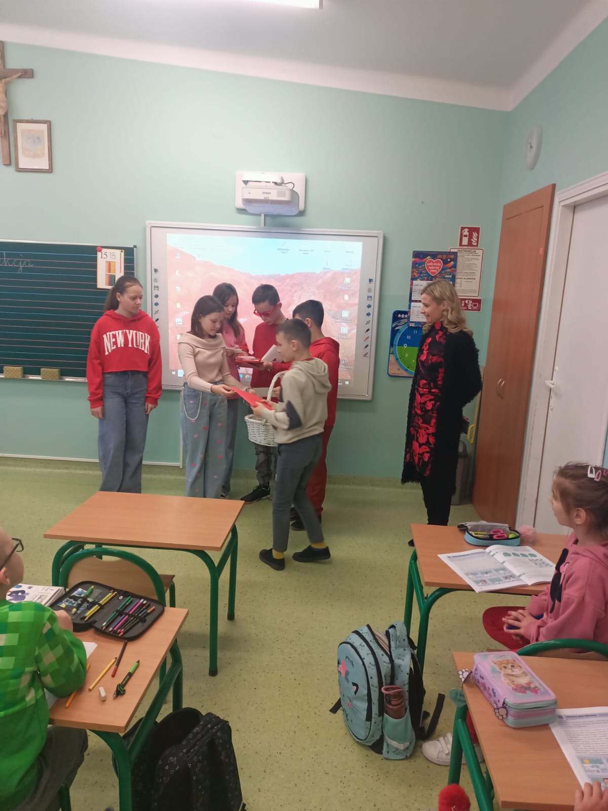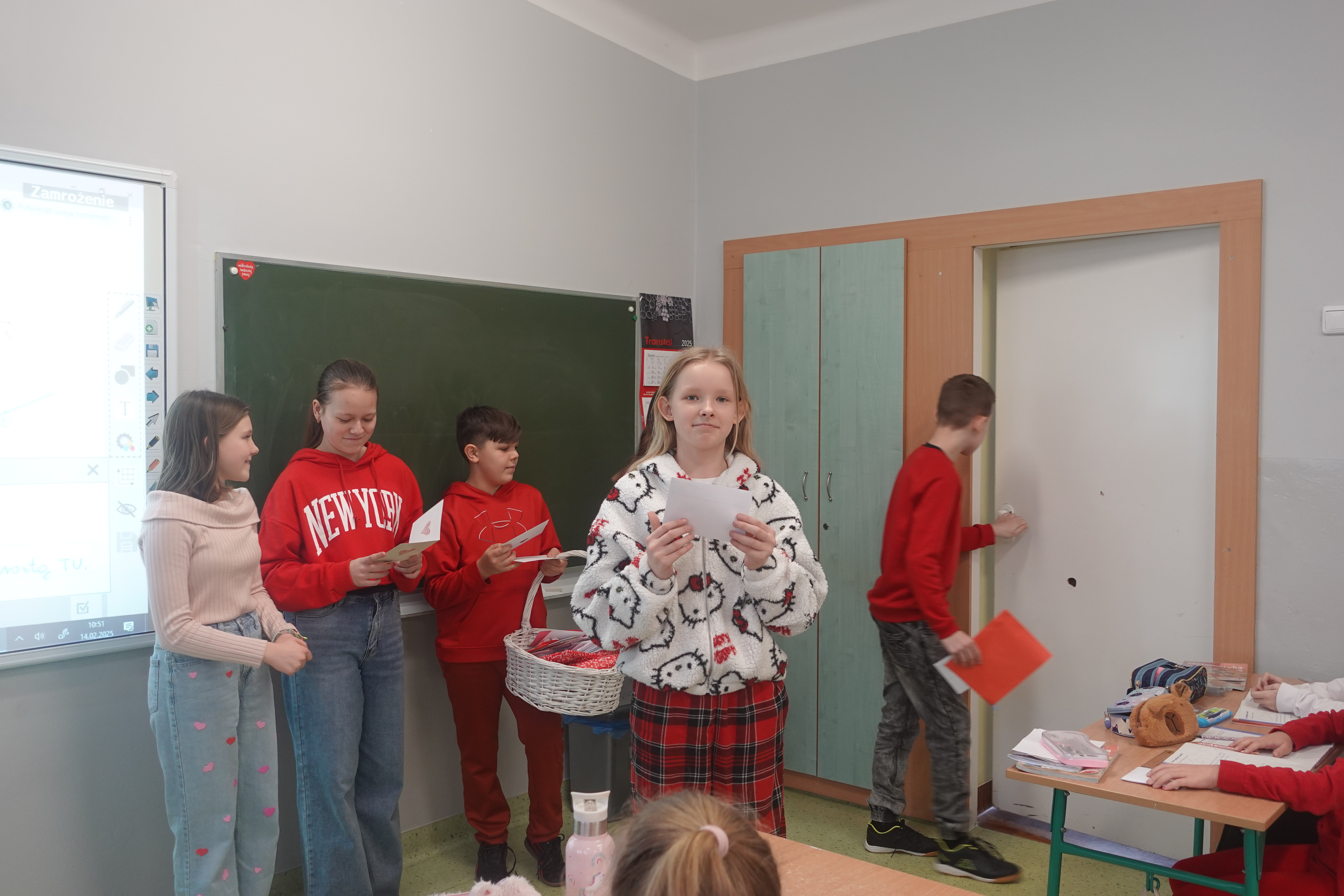 W dniu 14 lutego szkolna ekipa „amorków” w składzie: Emilia Noga, Marysia Chmura, Kacper Kotlarz, Oskar Chmura i Martyna Tabor z klasy 6 zajęła się rozprowadzaniem walentynek wśród uczniów i nauczycieli. Dzięki nim każdy mógł otrzymać miłą niespodziankę i poczuć magię tego wyjątkowego dnia.