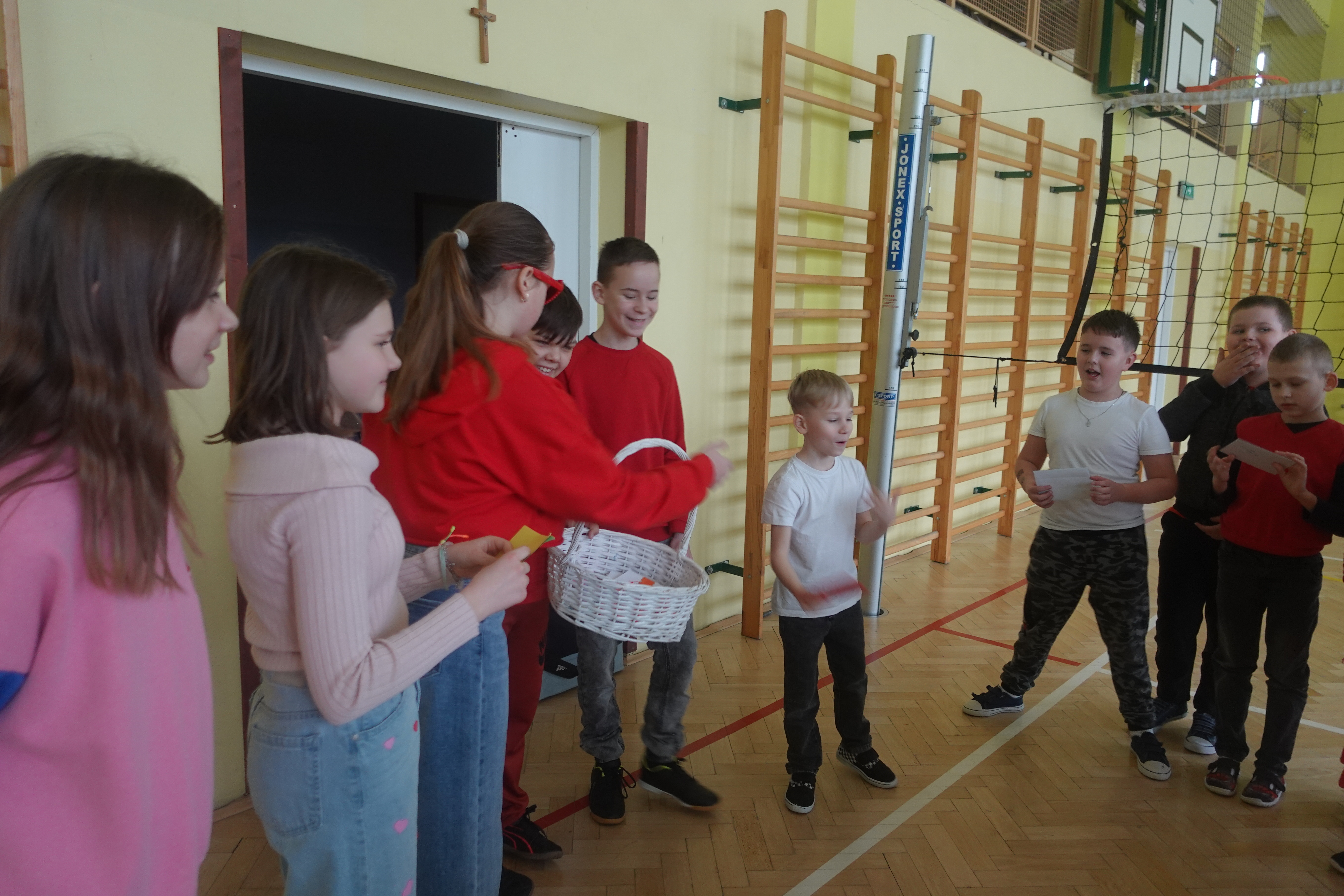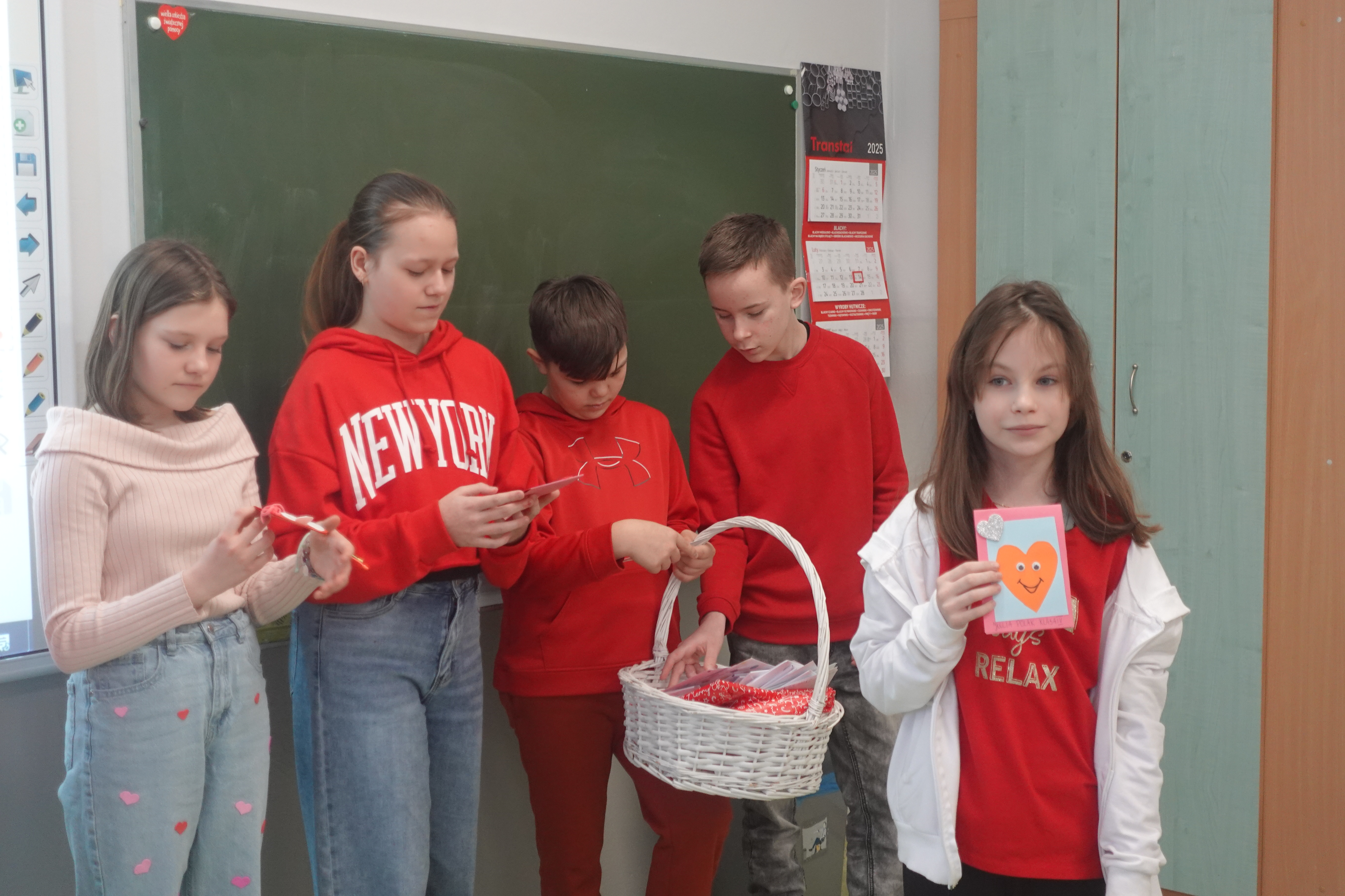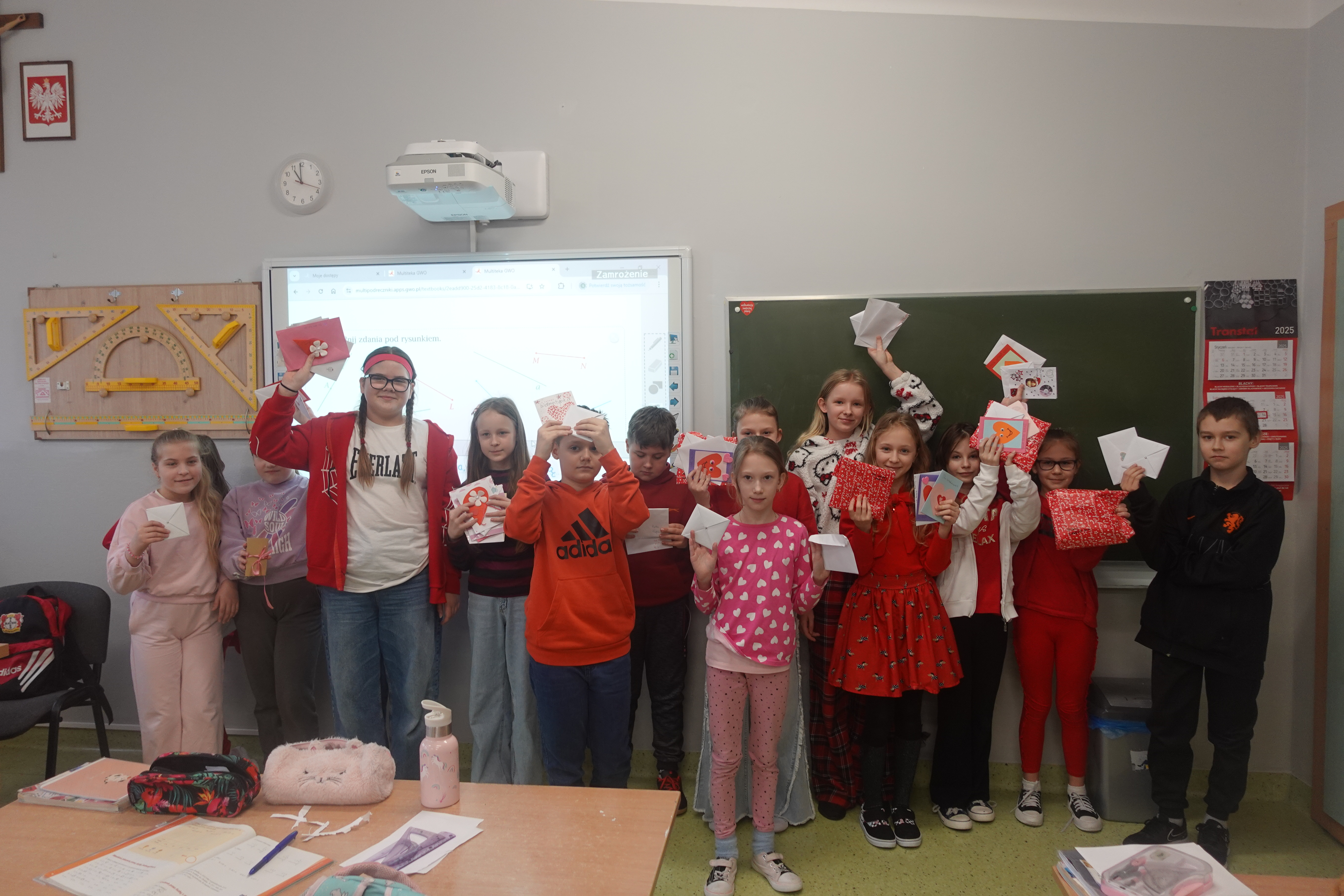 W dniu 14 lutego szkolna ekipa „amorków” w składzie: Emilia Noga, Marysia Chmura, Kacper Kotlarz, Oskar Chmura i Martyna Tabor z klasy 6 zajęła się rozprowadzaniem walentynek wśród uczniów i nauczycieli. Dzięki nim każdy mógł otrzymać miłą niespodziankę i poczuć magię tego wyjątkowego dnia.