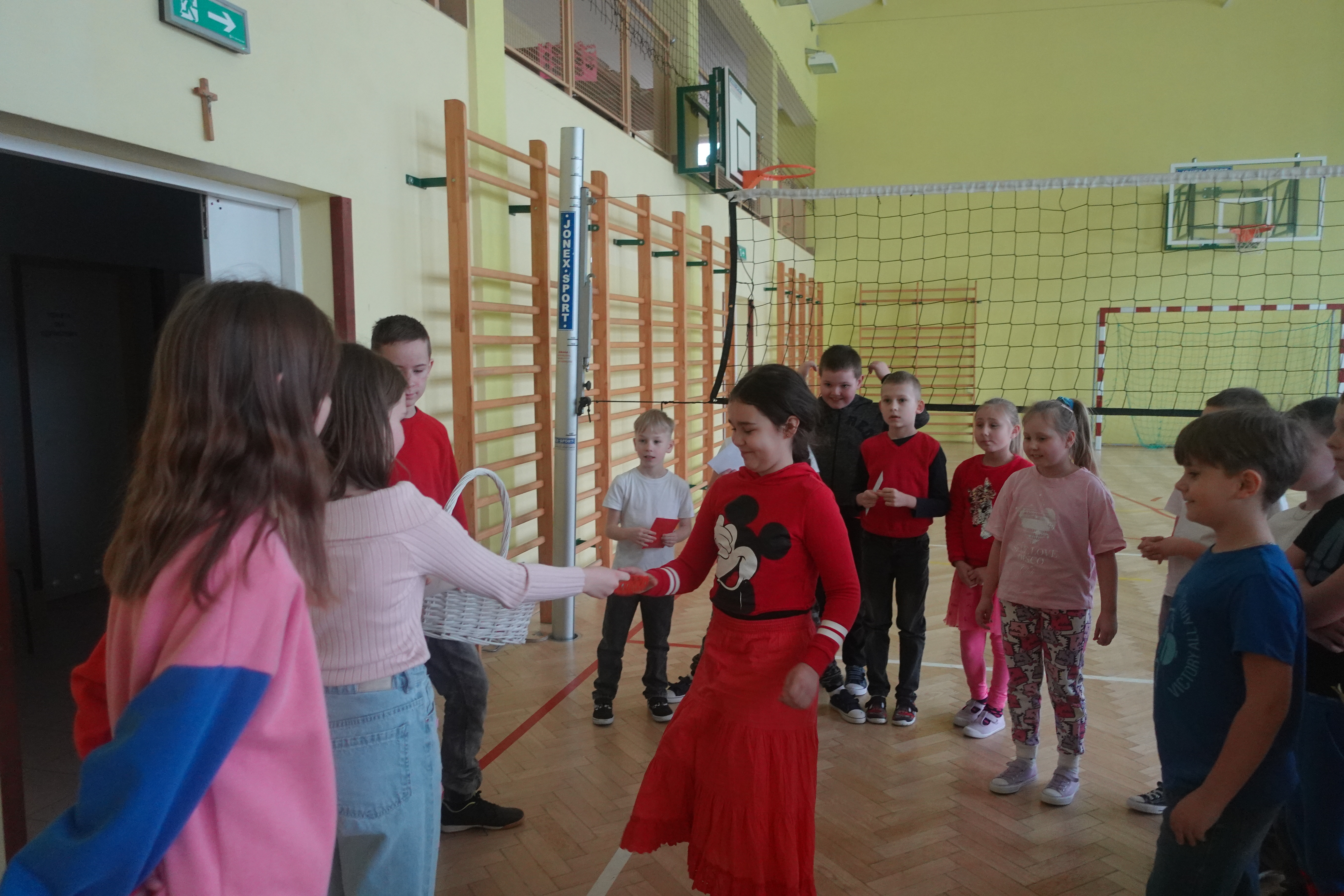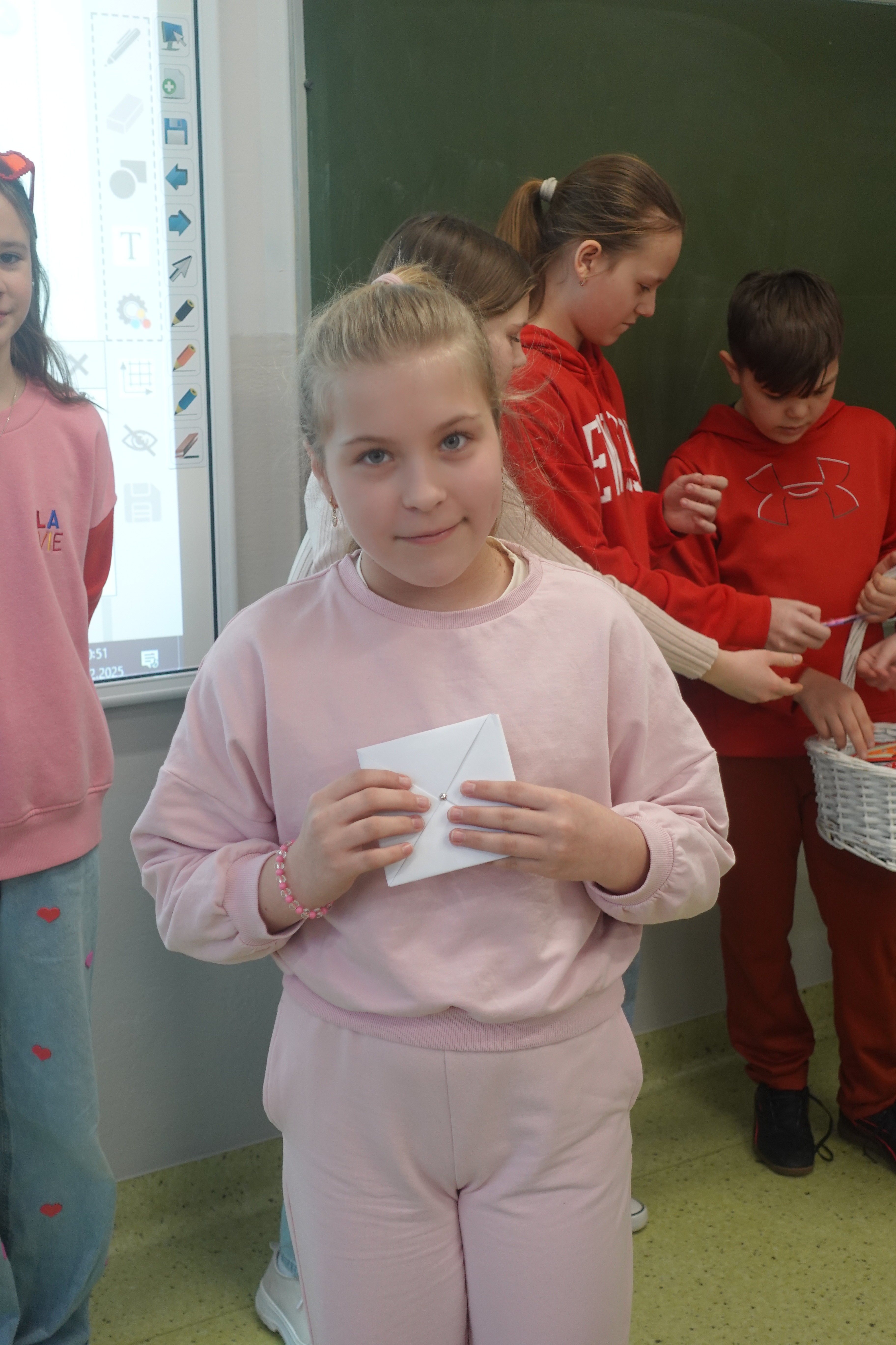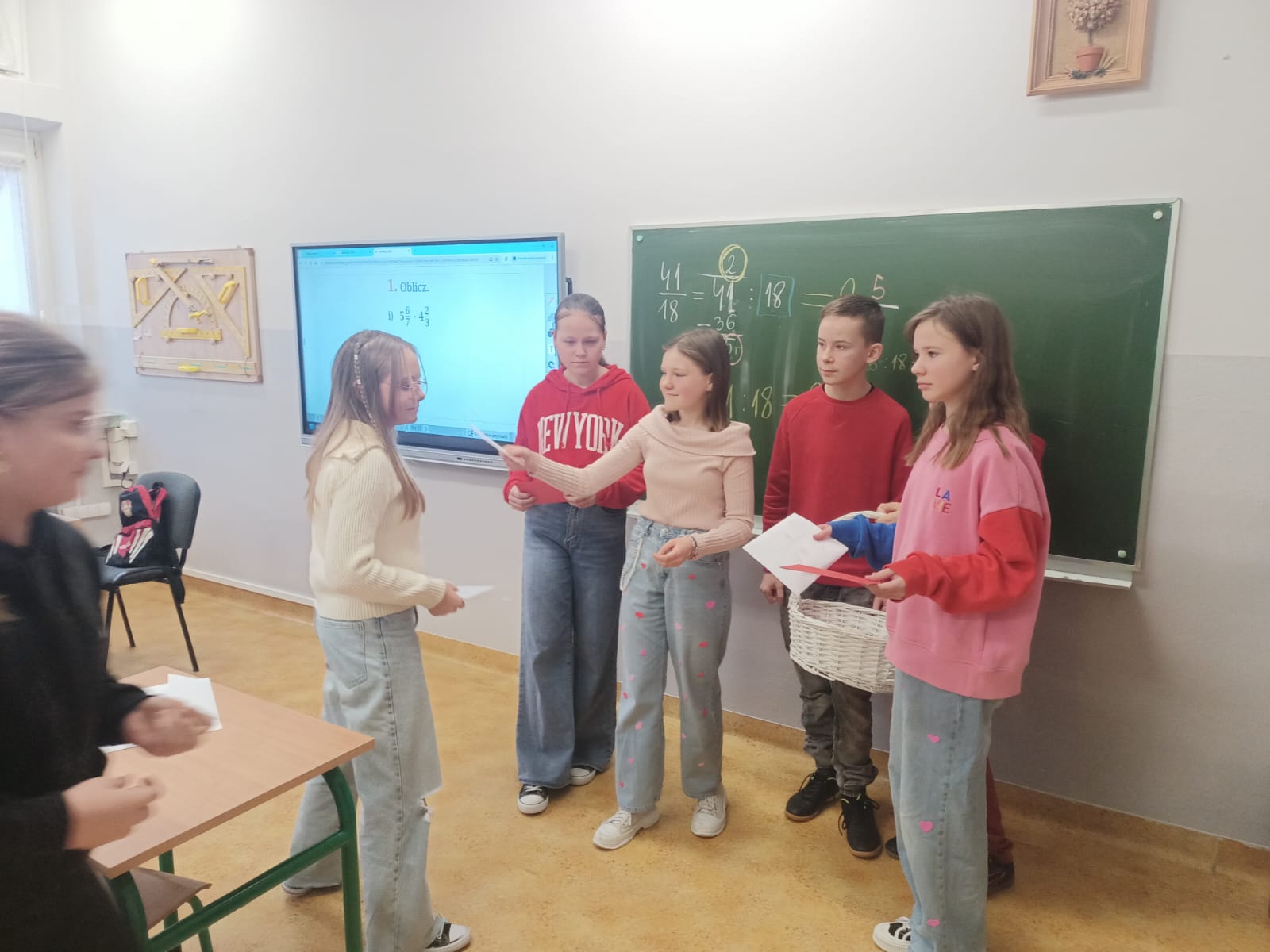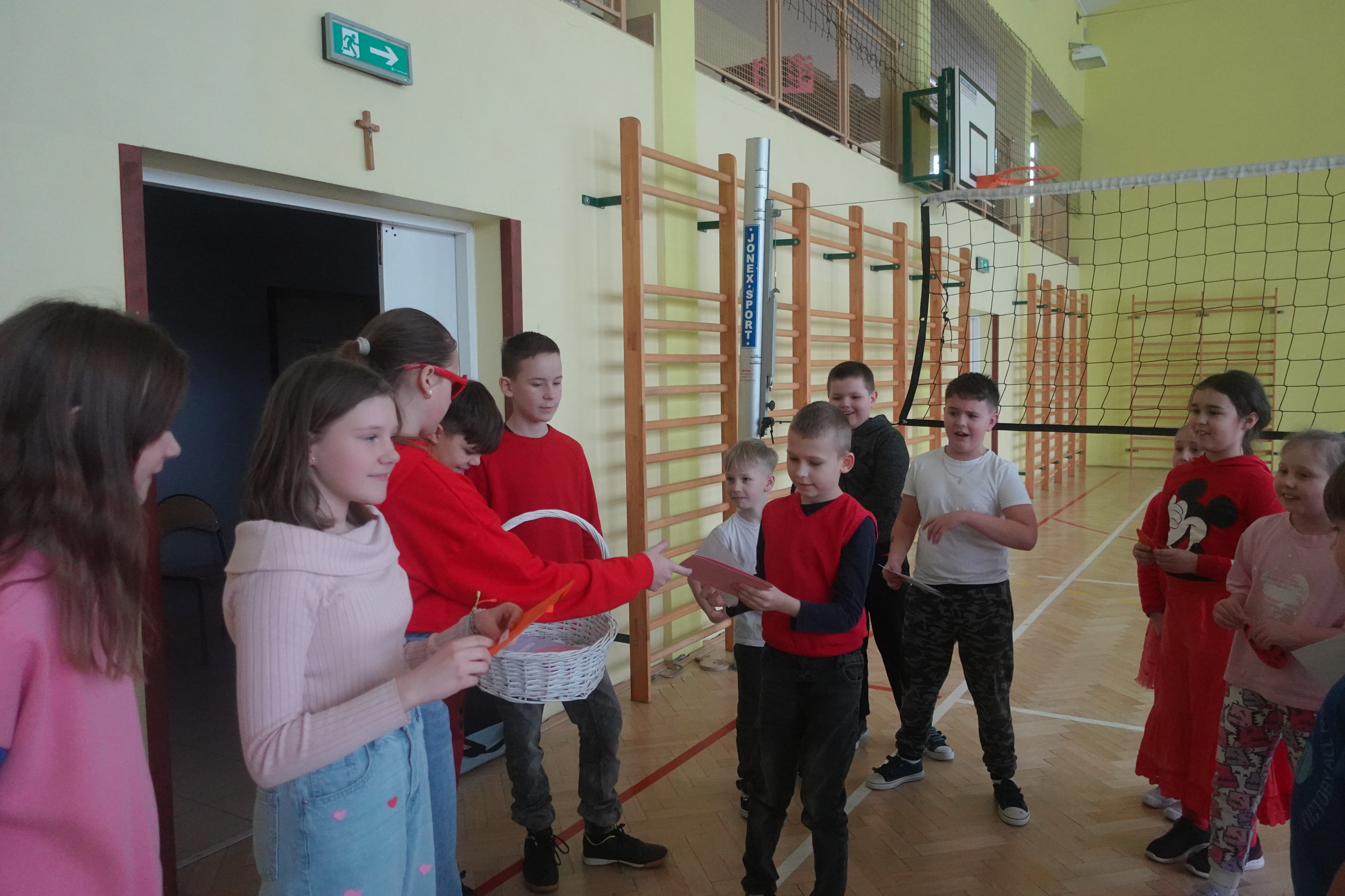 W dniu 14 lutego szkolna ekipa „amorków” w składzie: Emilia Noga, Marysia Chmura, Kacper Kotlarz, Oskar Chmura i Martyna Tabor z klasy 6 zajęła się rozprowadzaniem walentynek wśród uczniów i nauczycieli. Dzięki nim każdy mógł otrzymać miłą niespodziankę i poczuć magię tego wyjątkowego dnia.