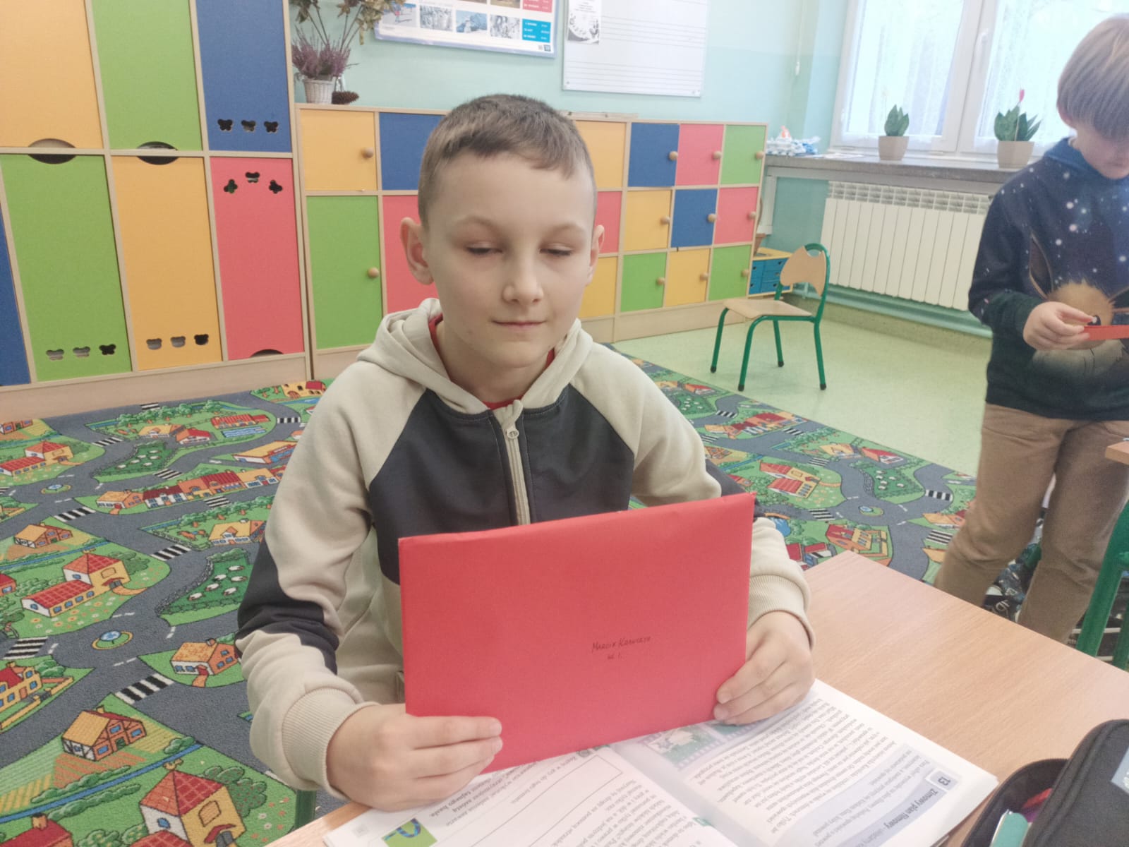 Walentynki powstawały podczas zajęć plastyki oraz w bibliotece szkolnej, gdzie uczniowie z wielkim zaangażowaniem tworzyli kreatywne kartki pełne serc, kolorowych ozdób i ciepłych słów. Każda z nich była wyjątkowa i jedyna w swoim rodzaju.