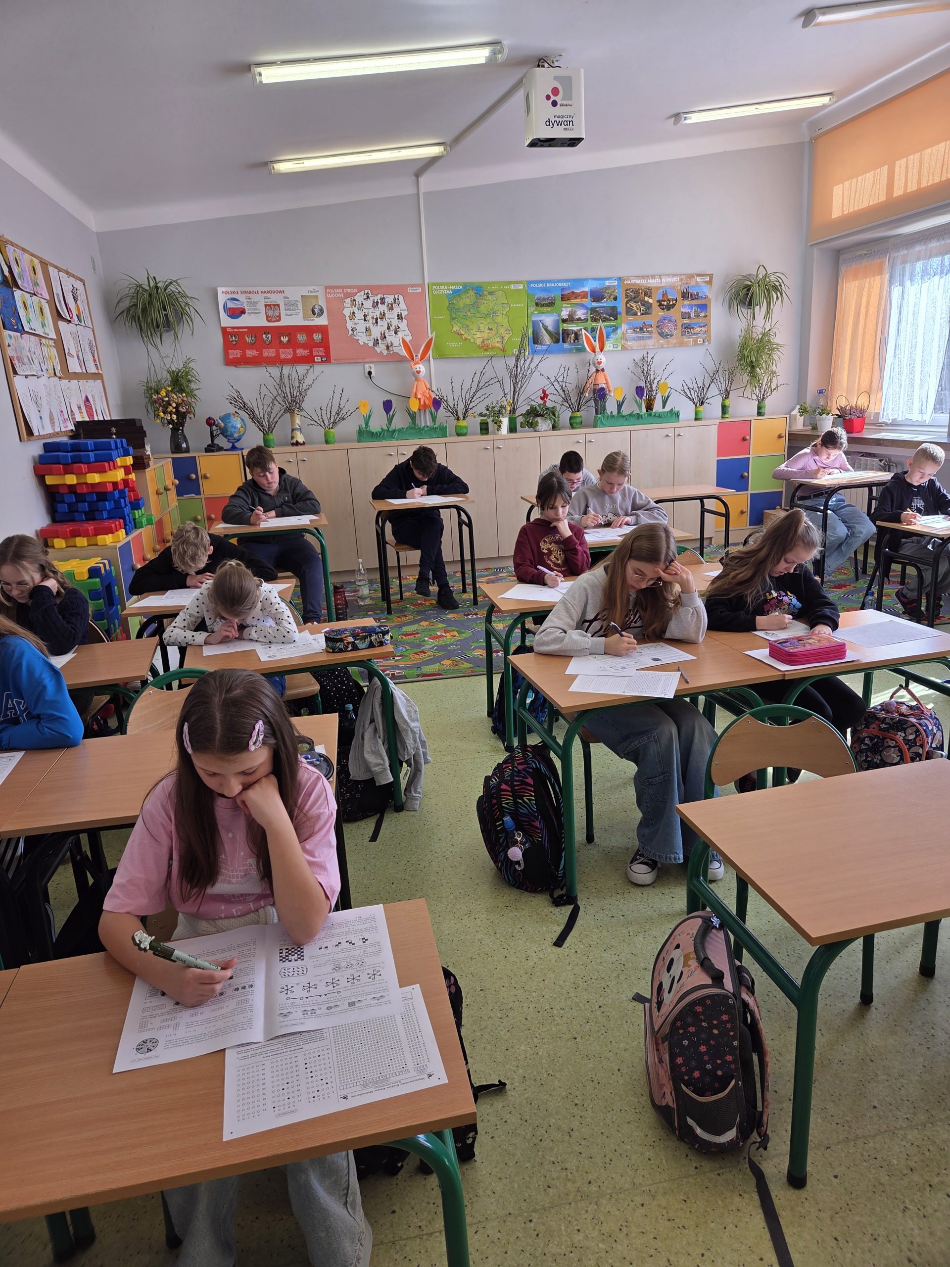Jest 20.03.2025 r., trzeci czwartek marca, piękny dzień i my prawie jak owa Zuzia. To 75 minut sam na sam z bajecznie ciekawymi zadaniami. Każdy uczeń pisał zadania odpowiednie do swojej kategorii: