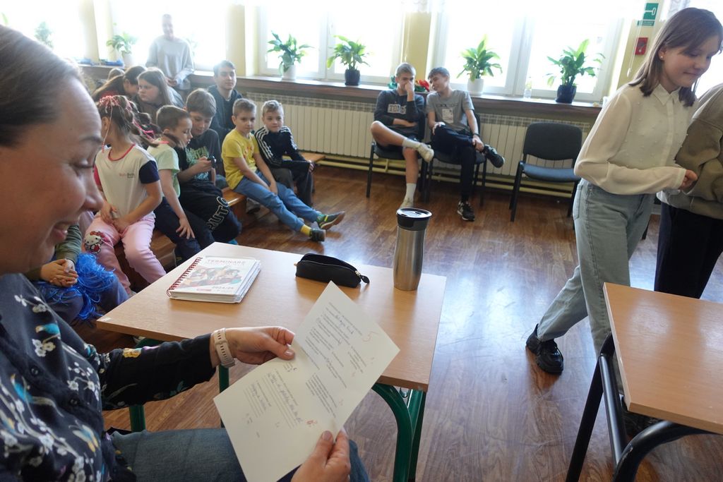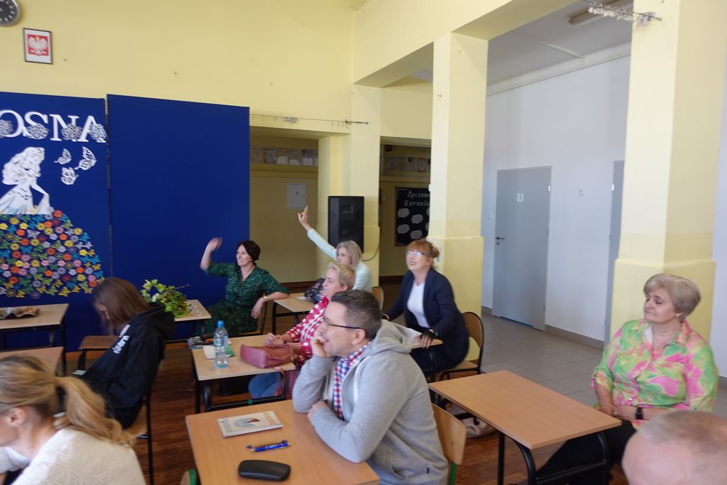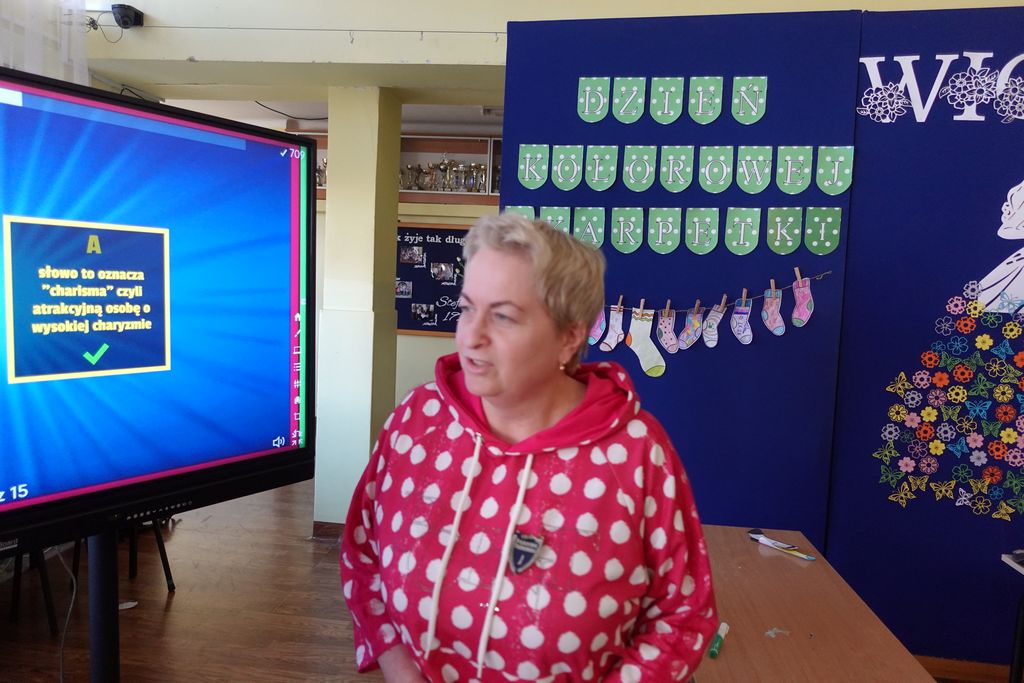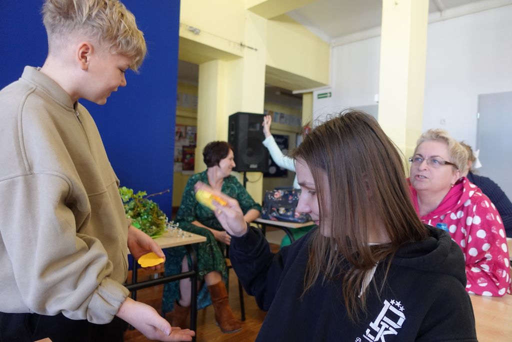 Nie obyło się również bez małych „wyzwań wychowawczych” – niektórzy nauczyciele tak wcielili się w rolę uczniów, że zaczęli psocić i robić drobne figle. Szóstoklasiści musieli wprowadzić porządek w klasie, przywołując ich do skupienia. Okazało się, że niektórzy nauczyciele naszej szkoły  mają w sobie duszę prawdziwych szkolnych urwisów, co dodało zajęciom jeszcze więcej humoru i dobrej zabawy.