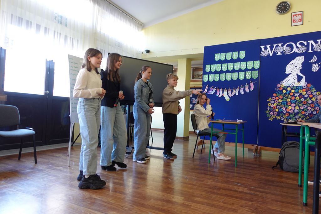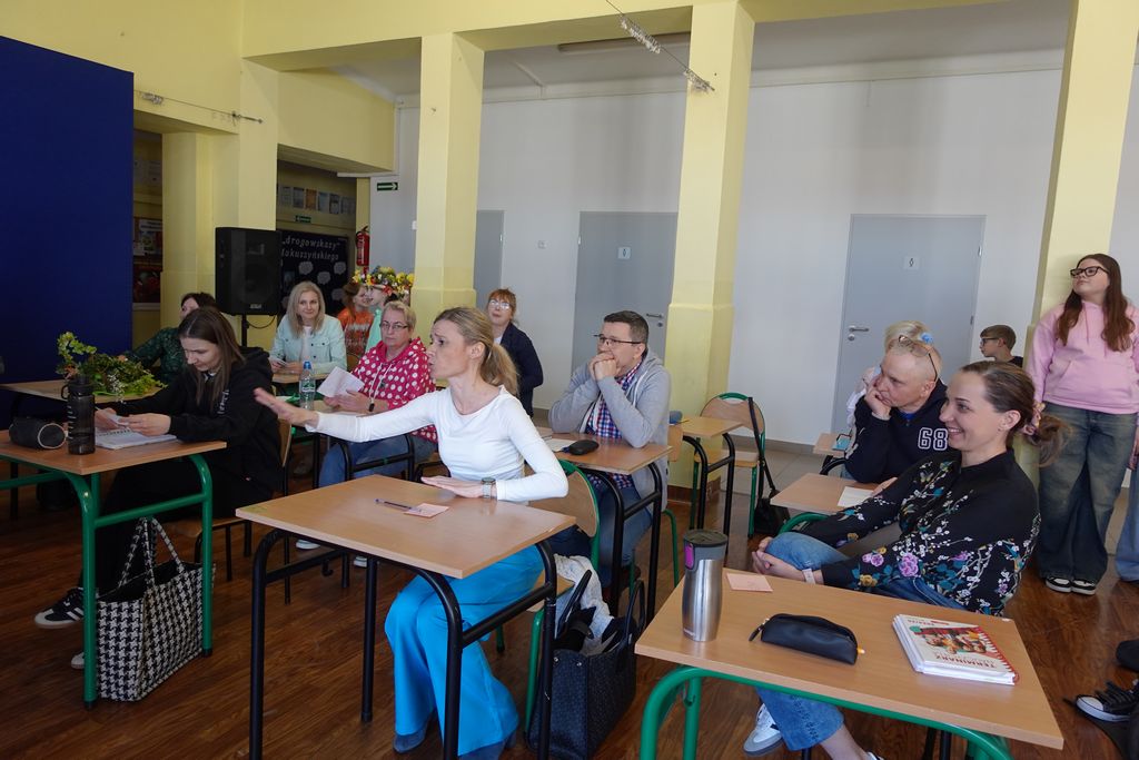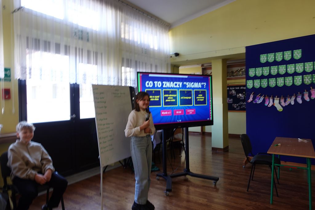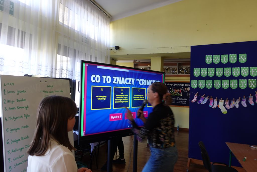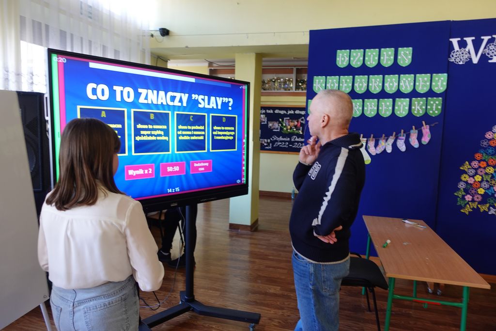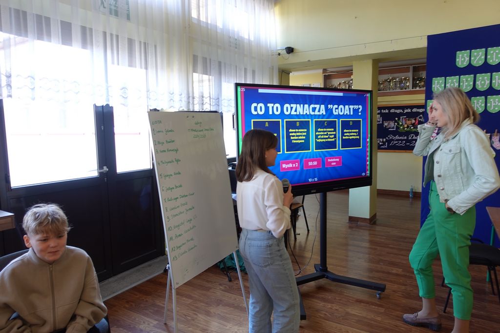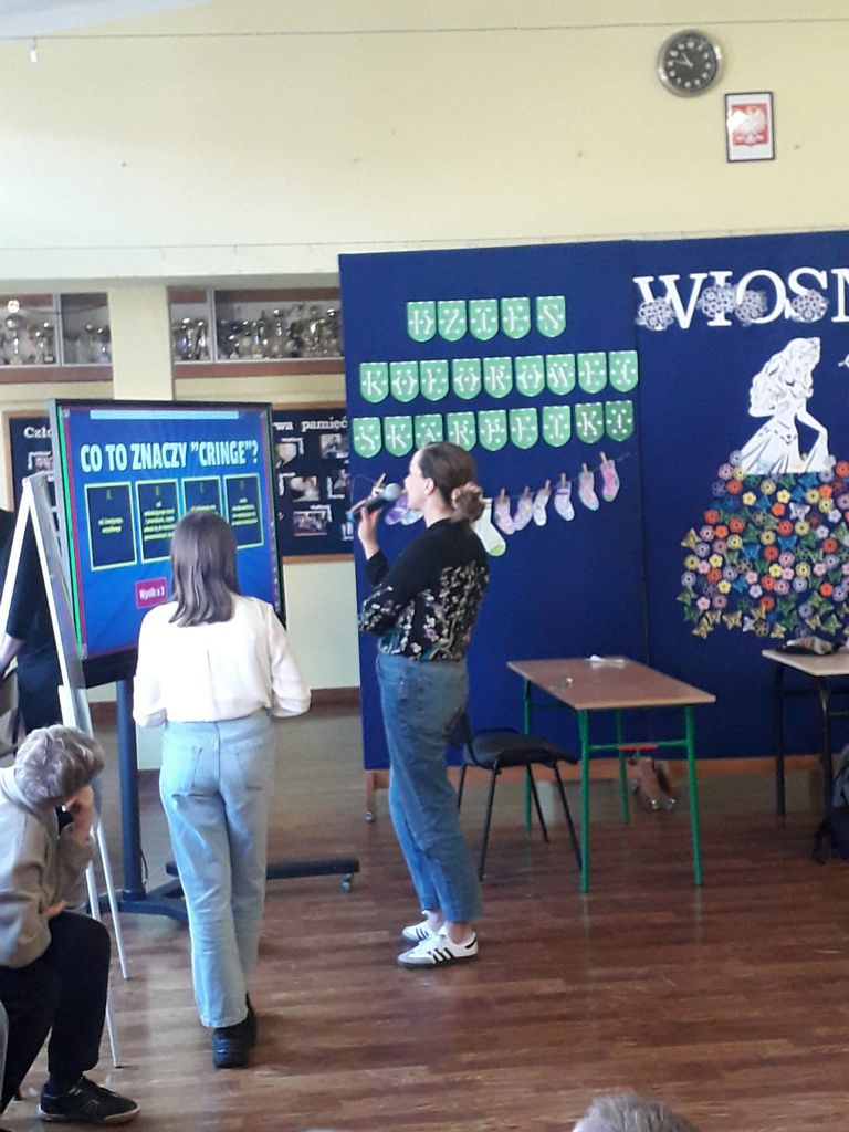 Podczas wiosennych zajęć uczniowie klasy 6 poprowadzili lekcje dla nauczycieli, a ich tematem były młodzieżowe słowa. Pedagodzy musieli zmierzyć się z językiem młodzieży, rozwiązując quizy i biorąc udział w interaktywnej prezentacji. Śmiechu było co niemiara, zwłaszcza gdy nauczyciele próbowali rozszyfrować, co oznaczają takie słowa jak „goat”, „cringe”, „sigma” czy „glamour”. Kulminacją zabawy była kartkówka, na której pedagodzy mogli sprawdzić, ile zapamiętali. Co więcej, nauczyciele otrzymali oceny za swoje odpowiedzi.