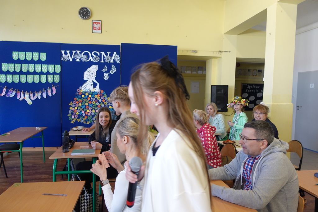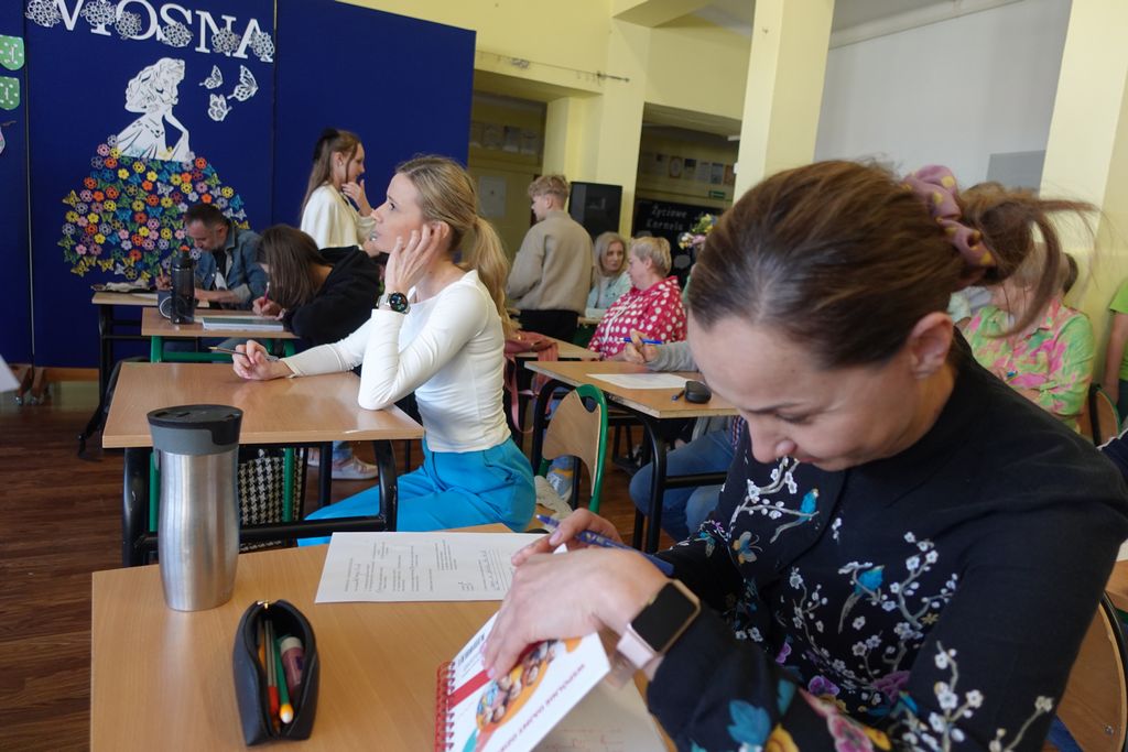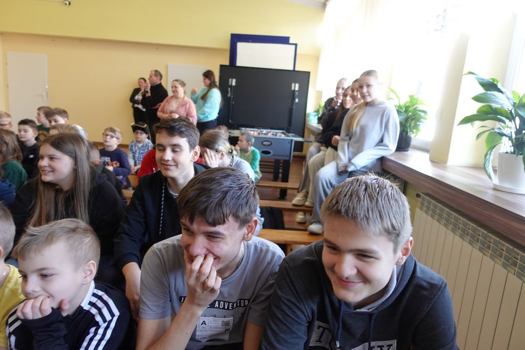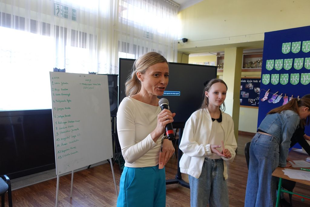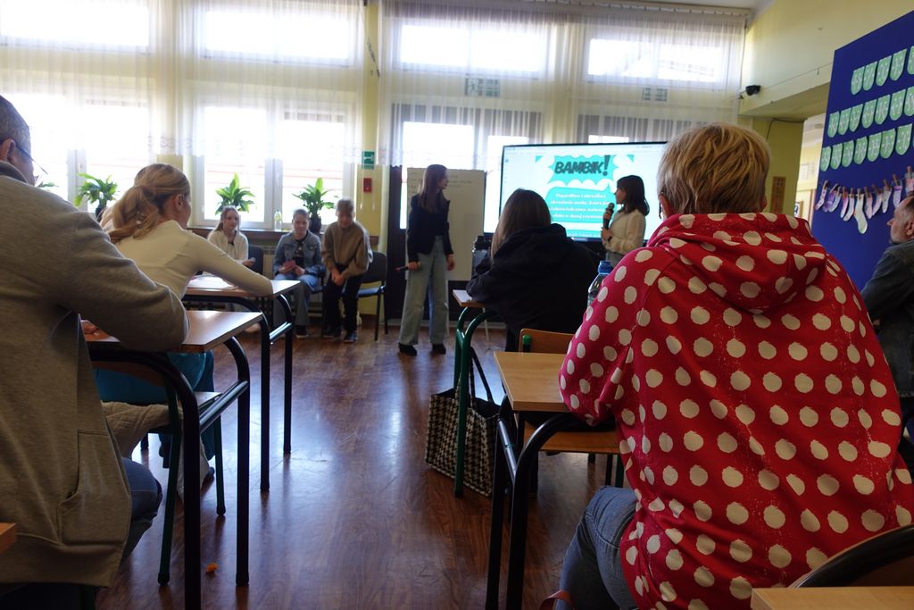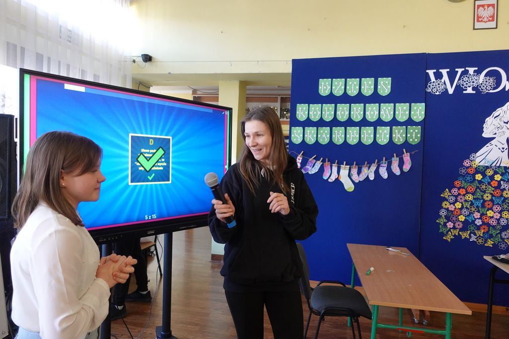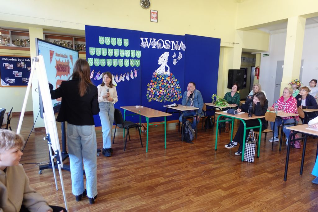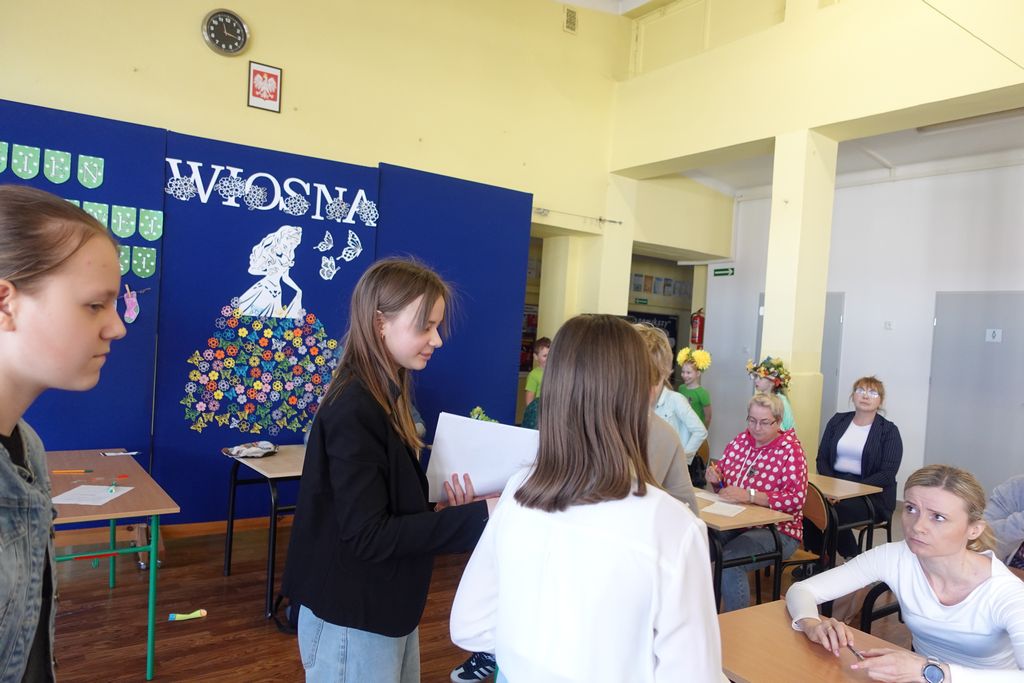 Podczas wiosennych zajęć uczniowie klasy 6 poprowadzili lekcje dla nauczycieli, a ich tematem były młodzieżowe słowa. Pedagodzy musieli zmierzyć się z językiem młodzieży, rozwiązując quizy i biorąc udział w interaktywnej prezentacji. Śmiechu było co niemiara, zwłaszcza gdy nauczyciele próbowali rozszyfrować, co oznaczają takie słowa jak „goat”, „cringe”, „sigma” czy „glamour”. Kulminacją zabawy była kartkówka, na której pedagodzy mogli sprawdzić, ile zapamiętali. Co więcej, nauczyciele otrzymali oceny za swoje odpowiedzi.