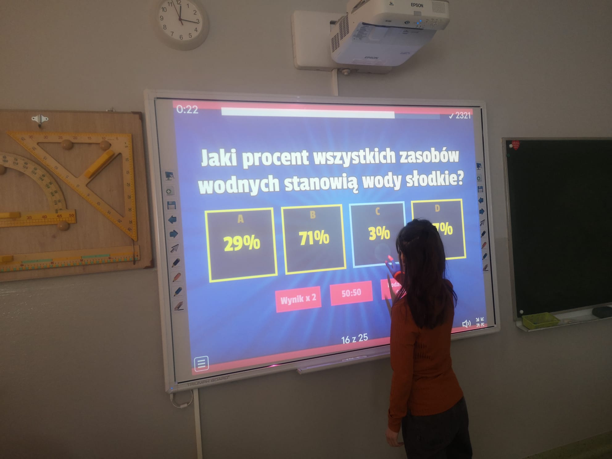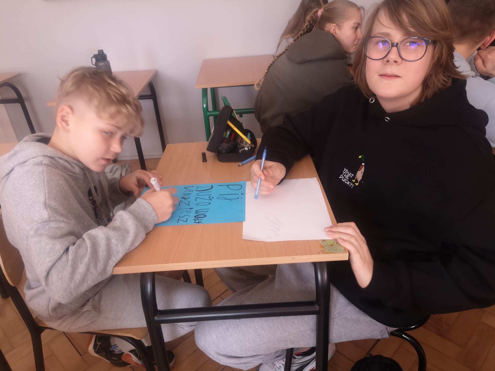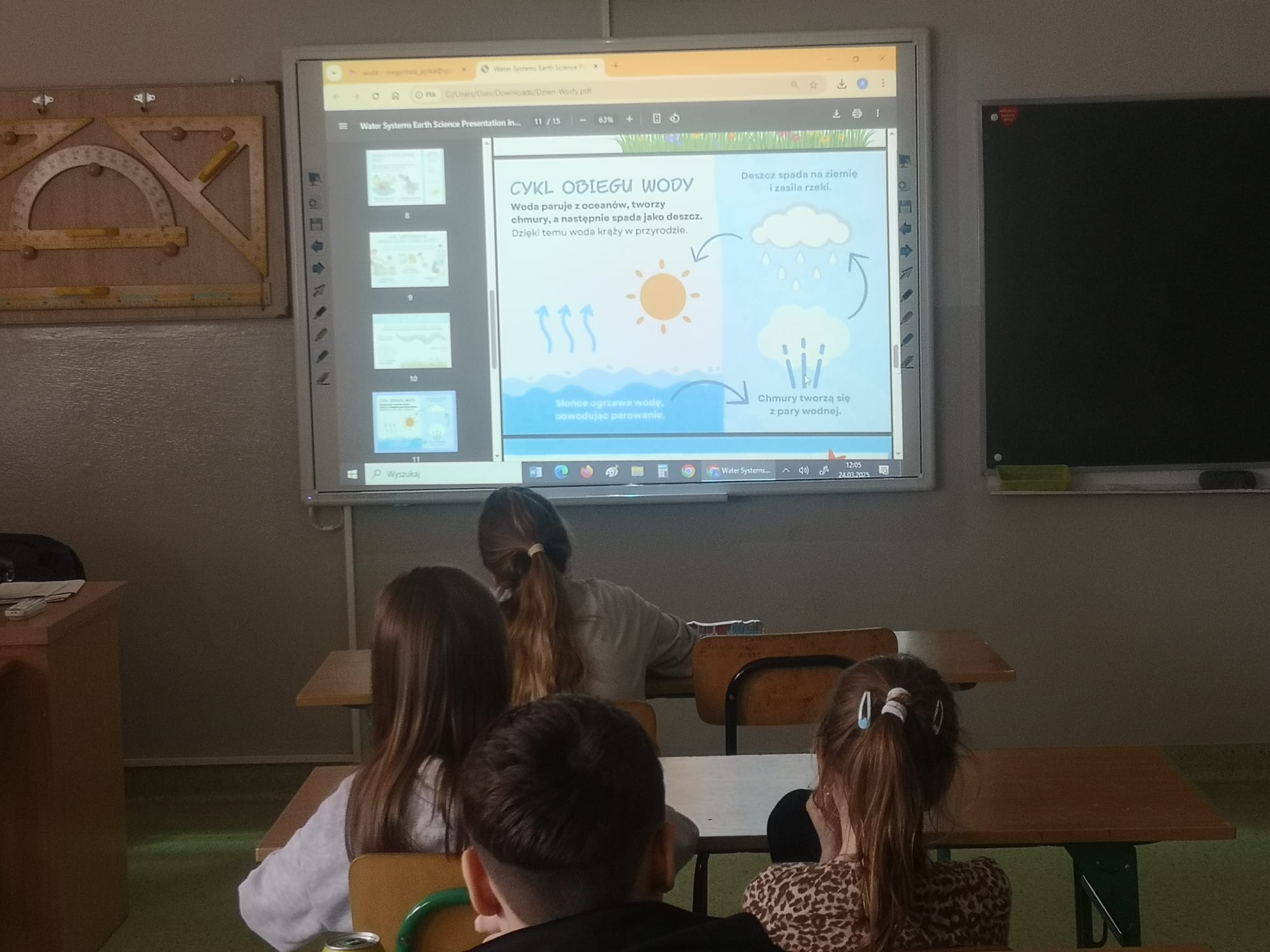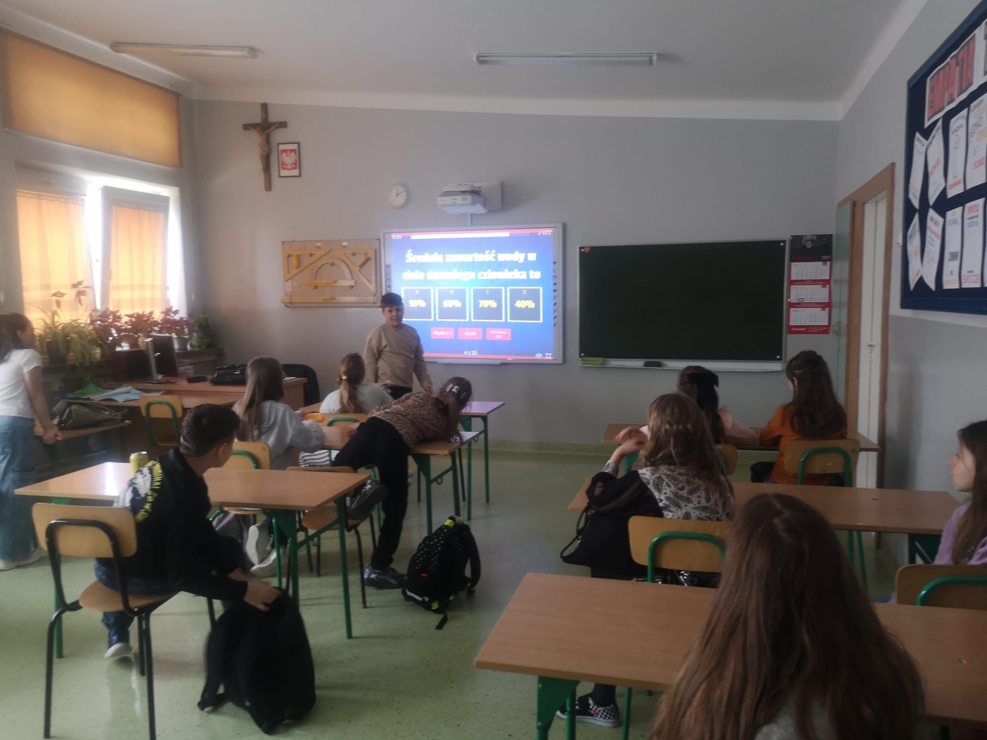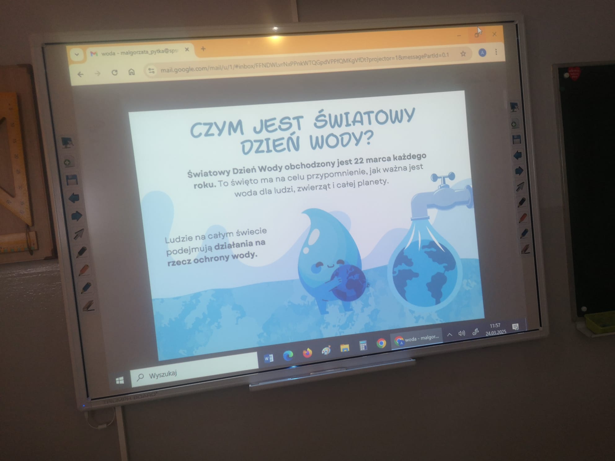 Z tej okazji przygotowaliśmy wiele ciekawych działań, które zaangażowały uczniów i pozwoliły im poszerzyć wiedzę na temat tego cennego zasobu. Już od rana uczniowie mogli podziwiać gazetkę szkolną poświęconą wodzie, na której znalazły się informacje o jej roli w przyrodzie, sposobach oszczędzania oraz ciekawostki dotyczące globalnych problemów związanych z wodą. Następnie w starszych klasach odbyła się prezentacja multimedialna, podczas której uczniowie dowiedzieli się, jak duży wpływ na wodę ma nasze codzienne życie i jak możemy dbać o jej zasoby. Prezentacja wzbudziła duże zainteresowanie i stała się doskonałym wstępem do dalszych działań. Kolejną atrakcją były quizy i zagadki, które sprawdziły wiedzę uczniów na temat wody. Rywalizacja była zacięta, a uczestnicy wykazali się dużą znajomością tematu. Nie zabrakło również twórczych wyzwań – uczniowie mieli okazję układać rymowanki i hasła o wodzie. Powstało wiele kreatywnych i zabawnych utworów, które później zostały zaprezentowane na forum klasy.