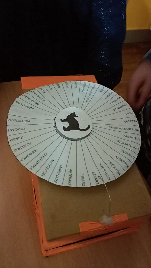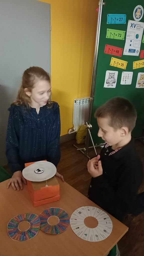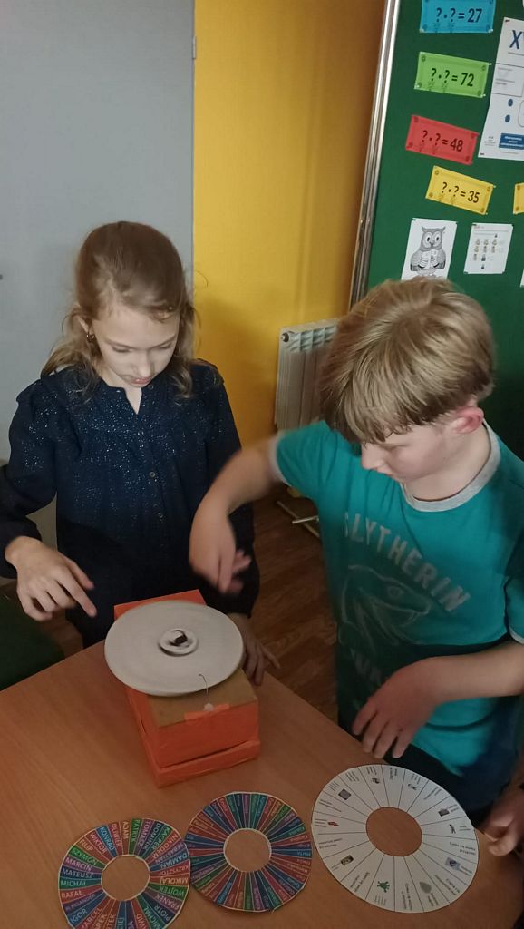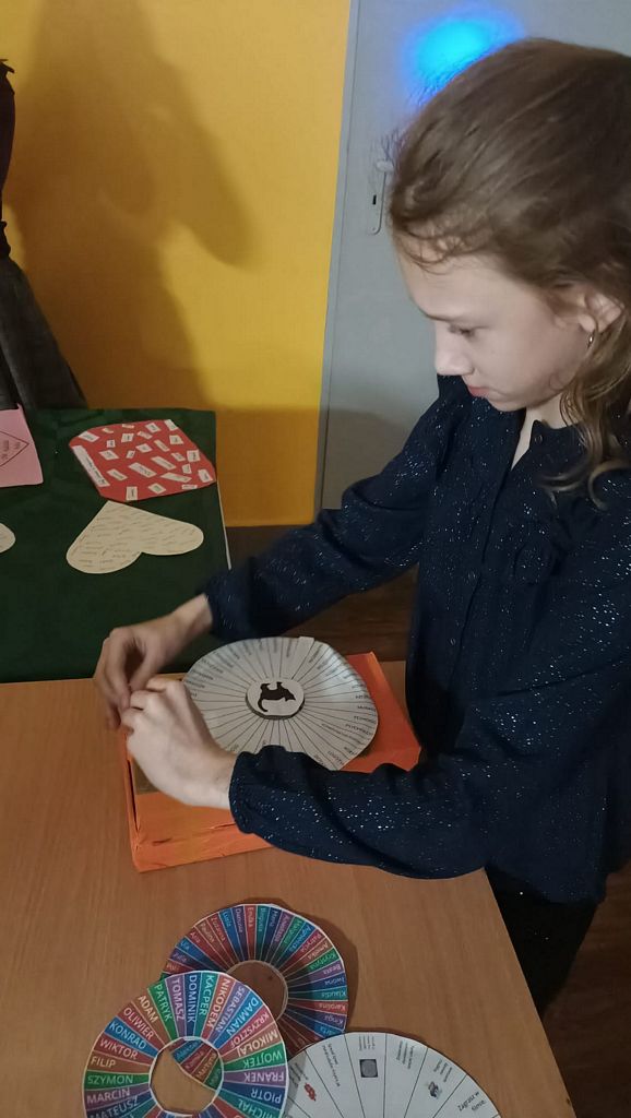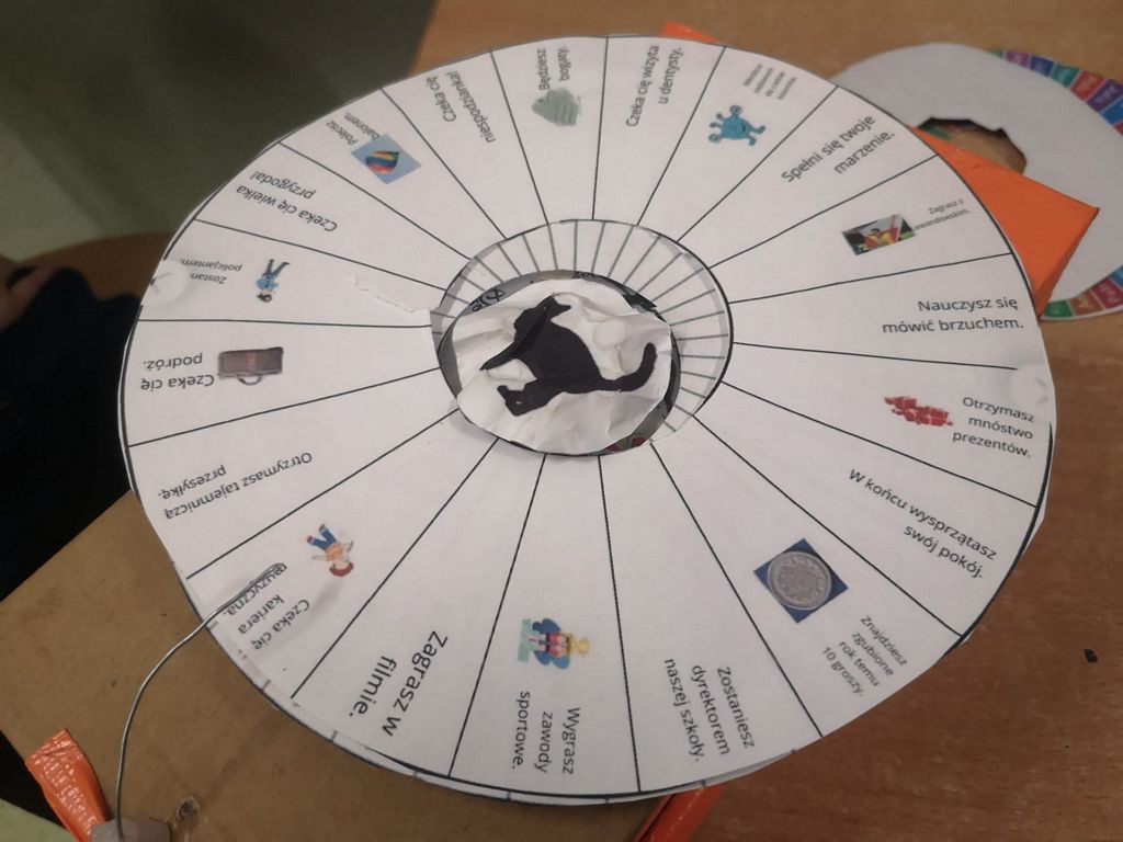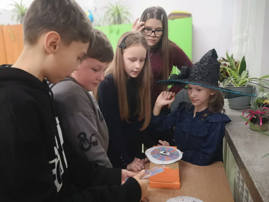 Prawdziwym hitem tegorocznych wróżb było przygotowane przez Karolinkę z klasy piątej „Koło Fortuny” – niezwykle pomysłowe i całkowicie samodzielnie wykonane narzędzie wróżbiarskie. Gratulujemy kreatywności oraz zaangażowania!